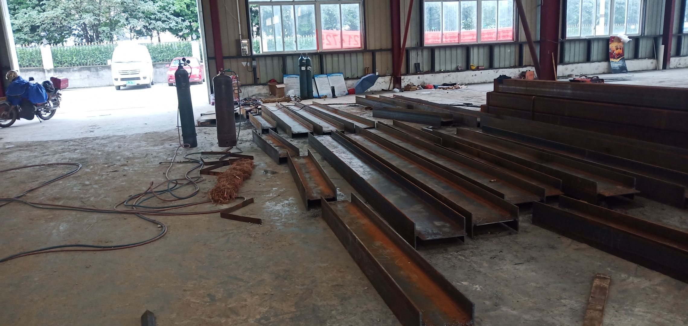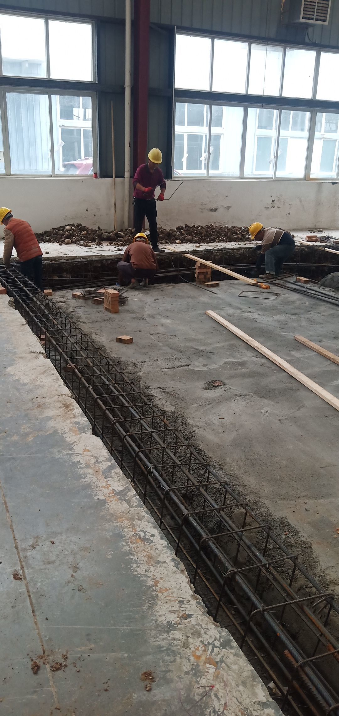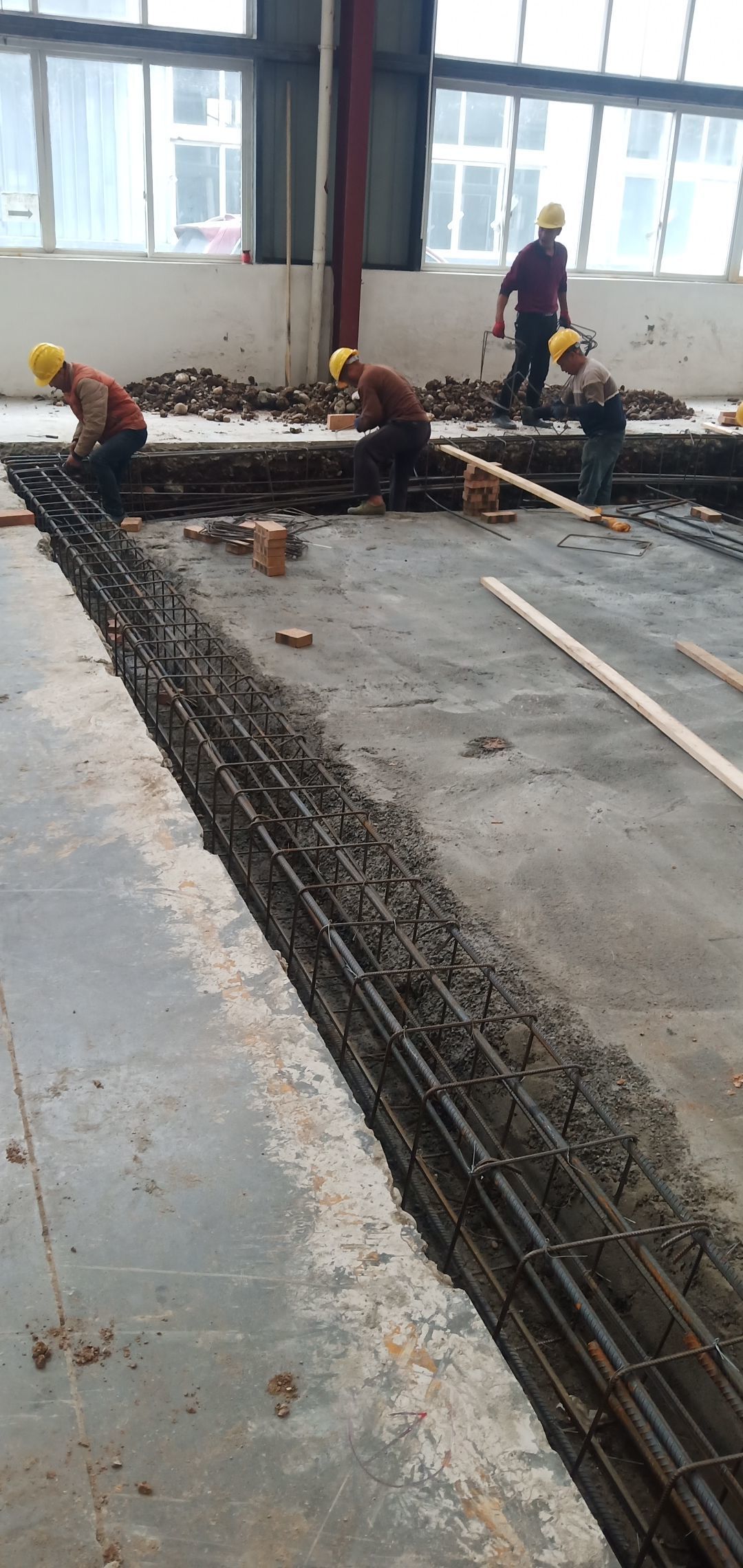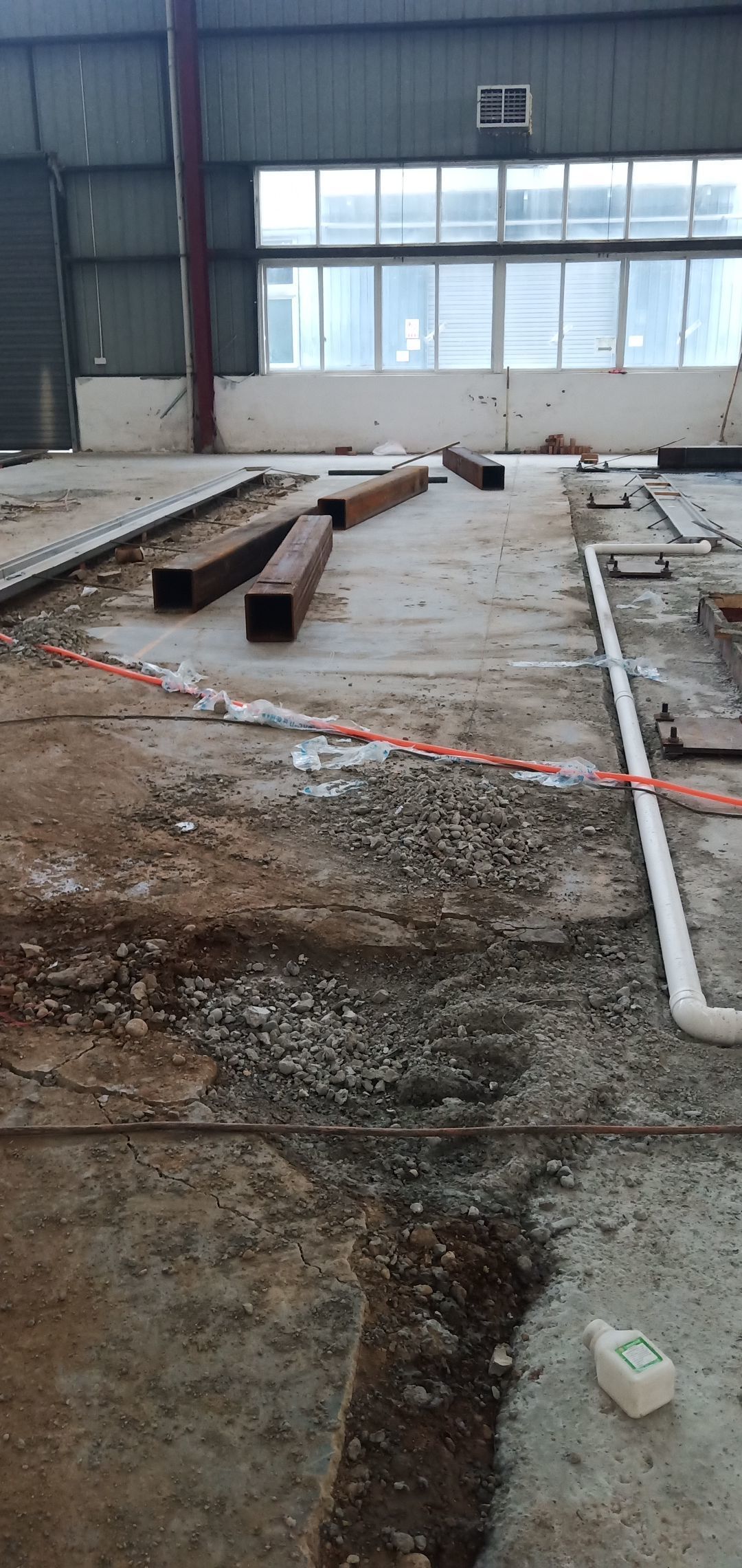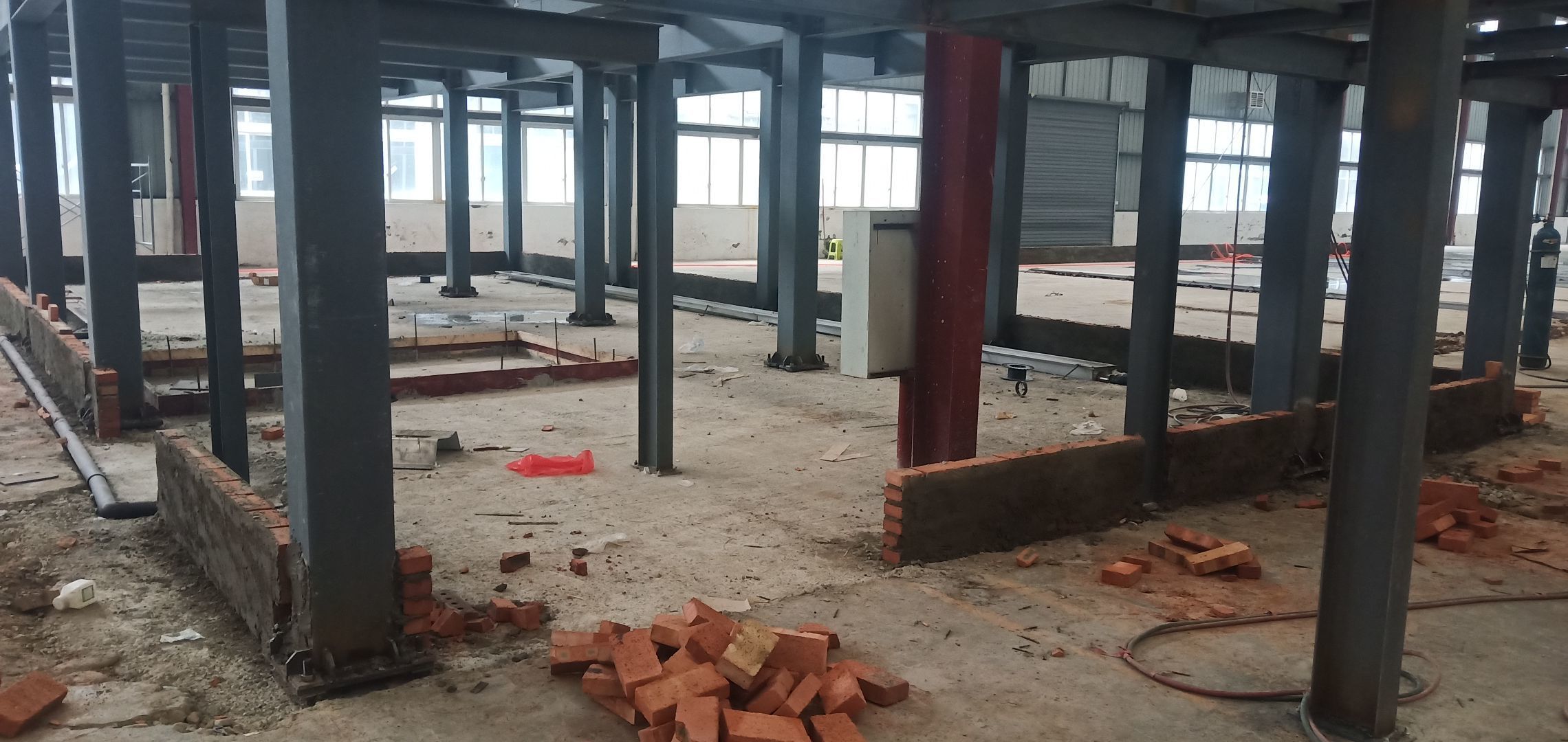 地面找平打點(diǎn),辦公區(qū)槽鋼焊接,角鋼除銹刷防銹漆