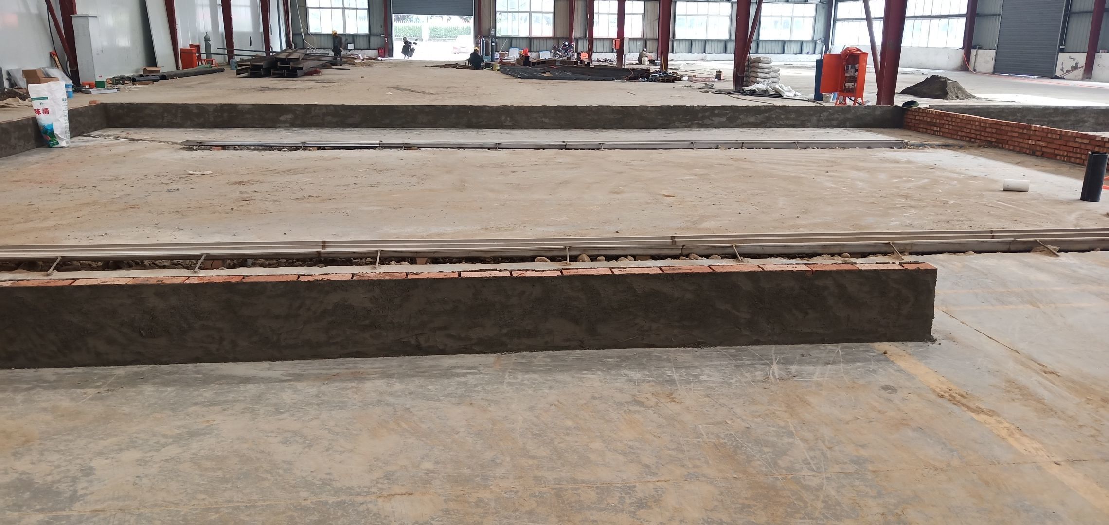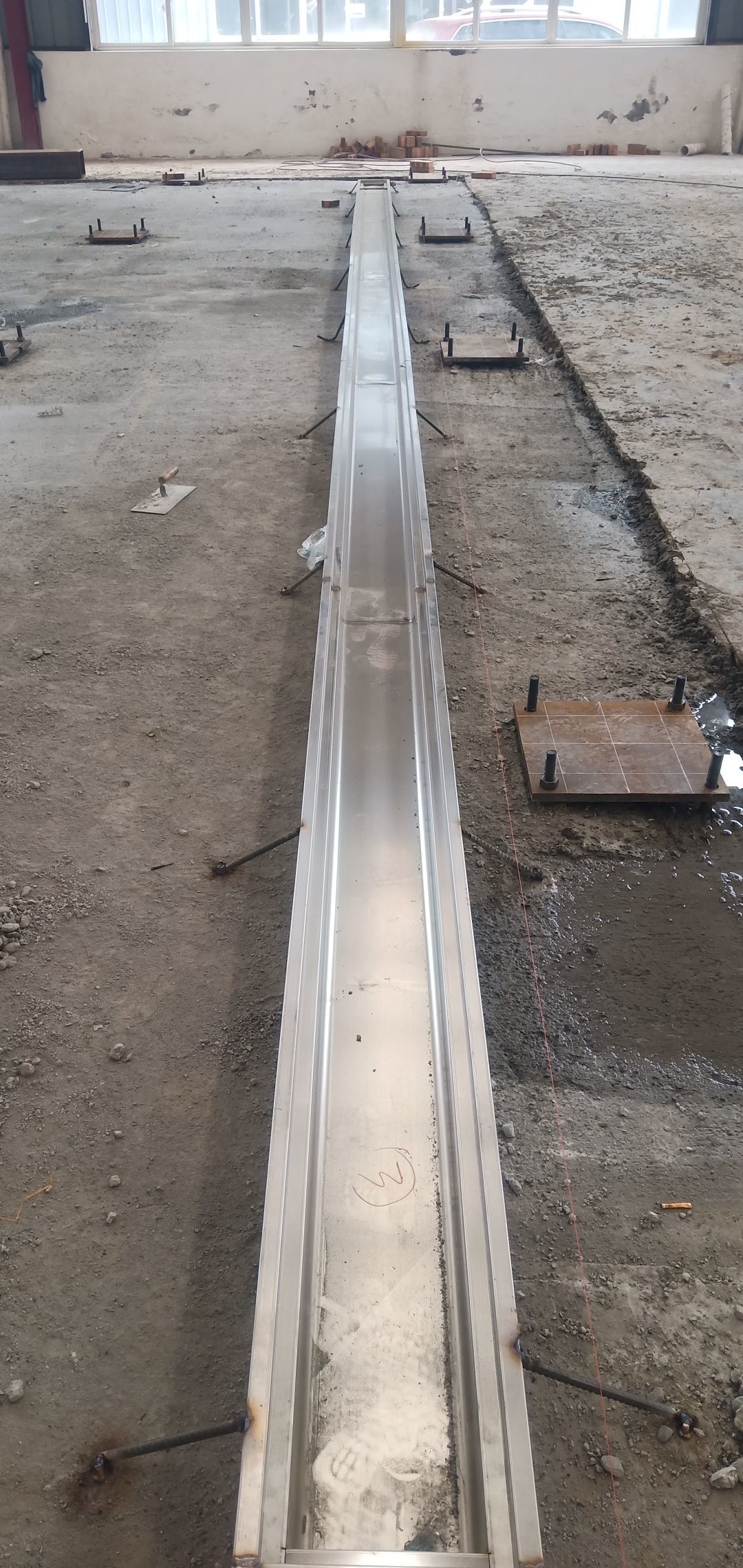 平臺(tái)基礎(chǔ)上安裝不銹鋼排水溝,鋼結(jié)構(gòu)柱腳板安裝,鋼梁、鋼柱加工,鋼梁、鋼柱制作完成60%