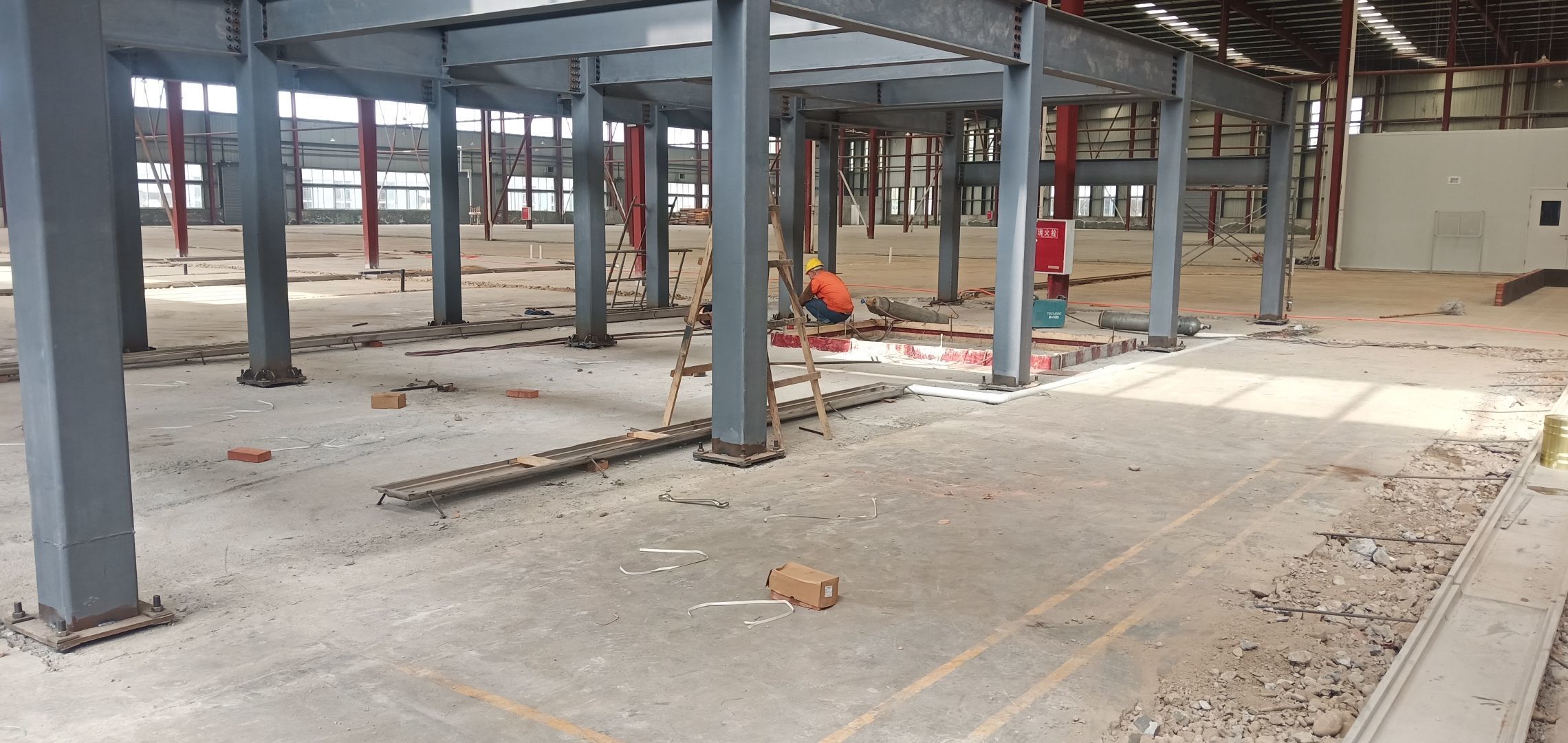彩鋼墻板完成40%,鋼絲繩完成100%,固化地坪完成60%,鋼結(jié)構(gòu)刷第二次面漆