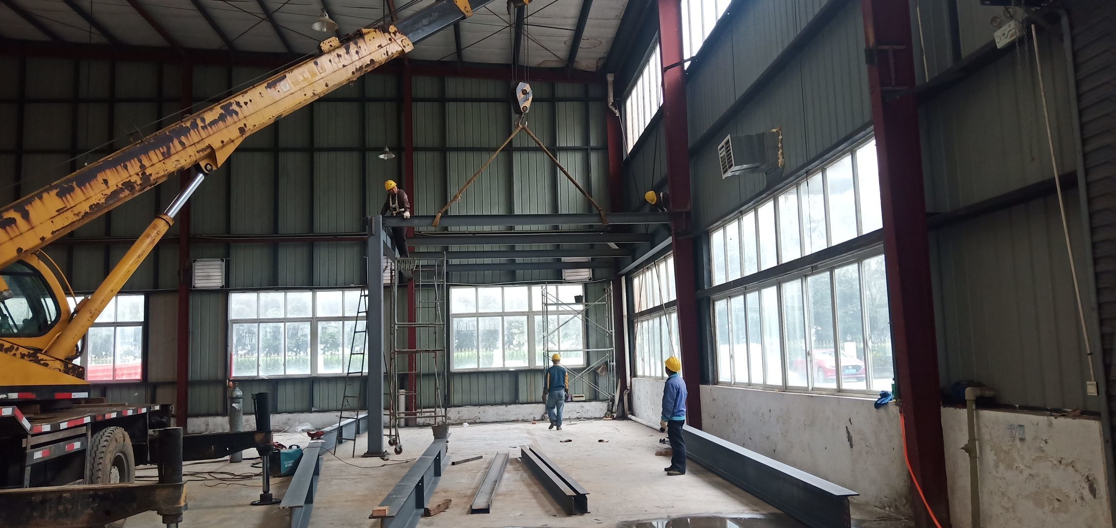 車間辦公區(qū)鋼梁、鋼柱吊裝