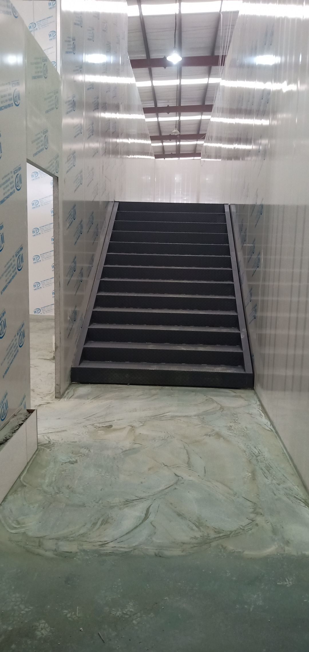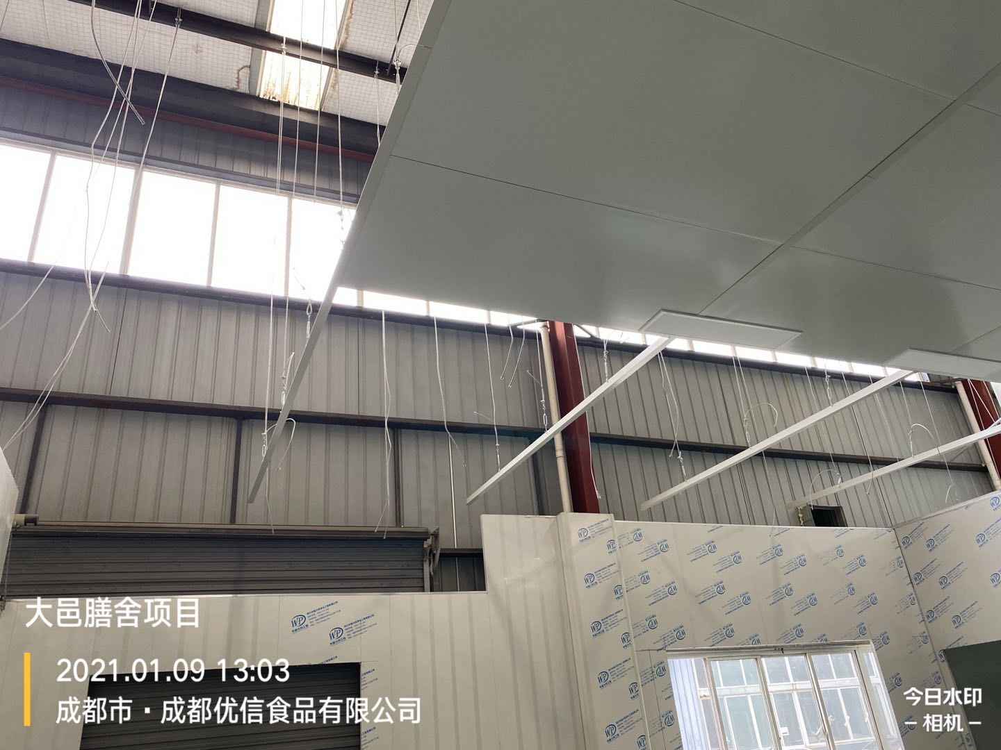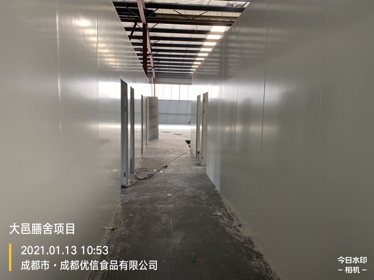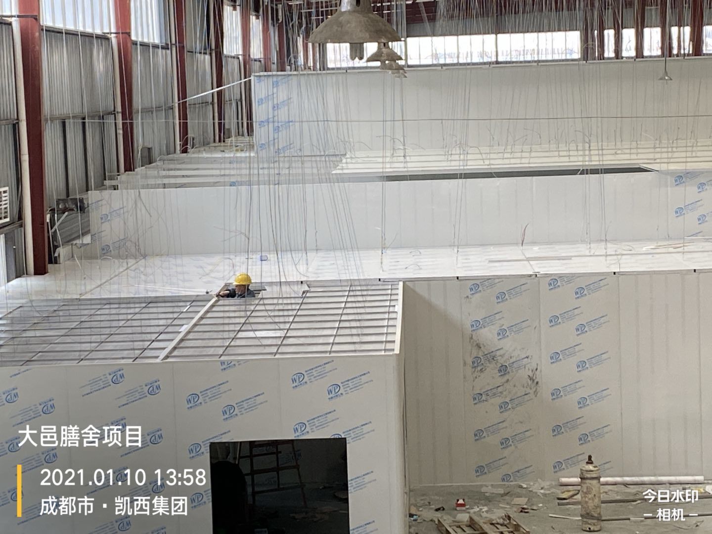 大邑膳舍食品項(xiàng)目:擋水墻貼磚完成90%,花紋鋼板、樓梯板到場(chǎng),樓梯踏步開始焊接,彩鋼墻板立板完成5%。