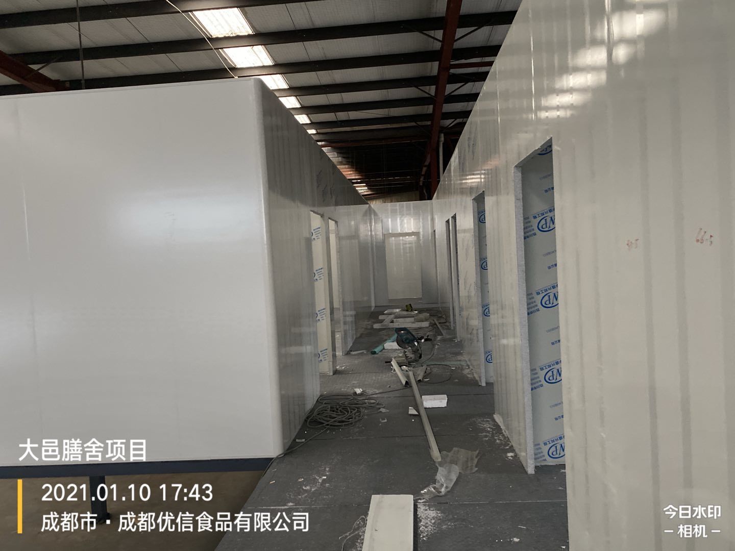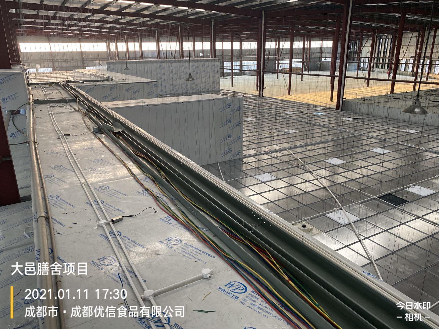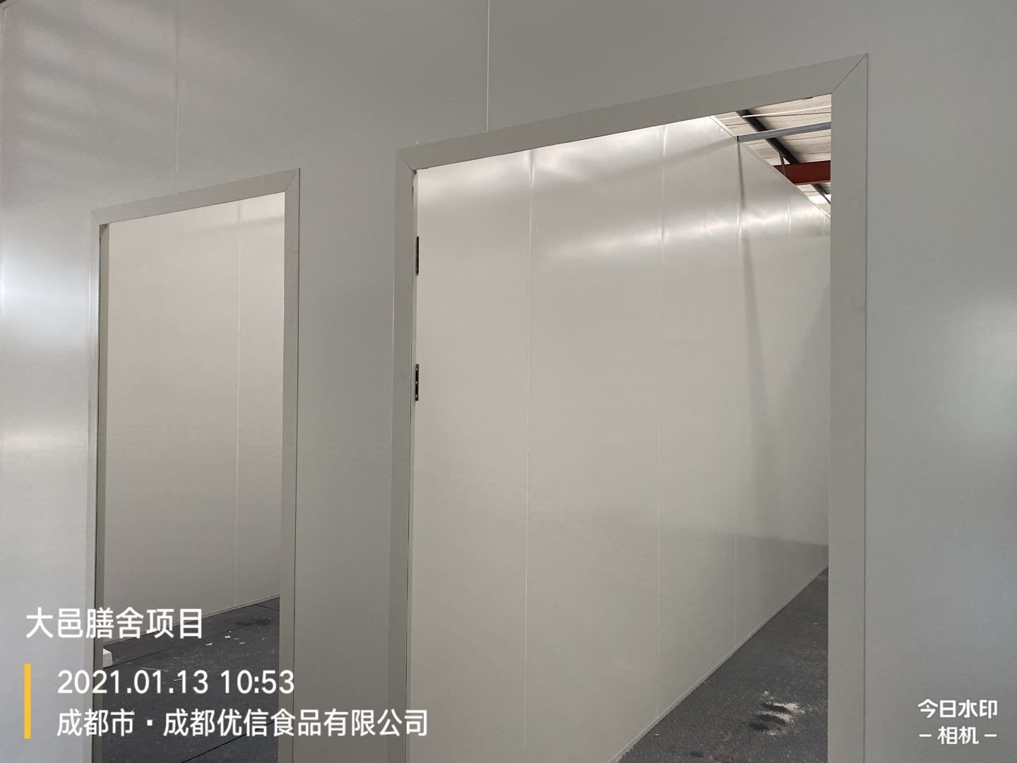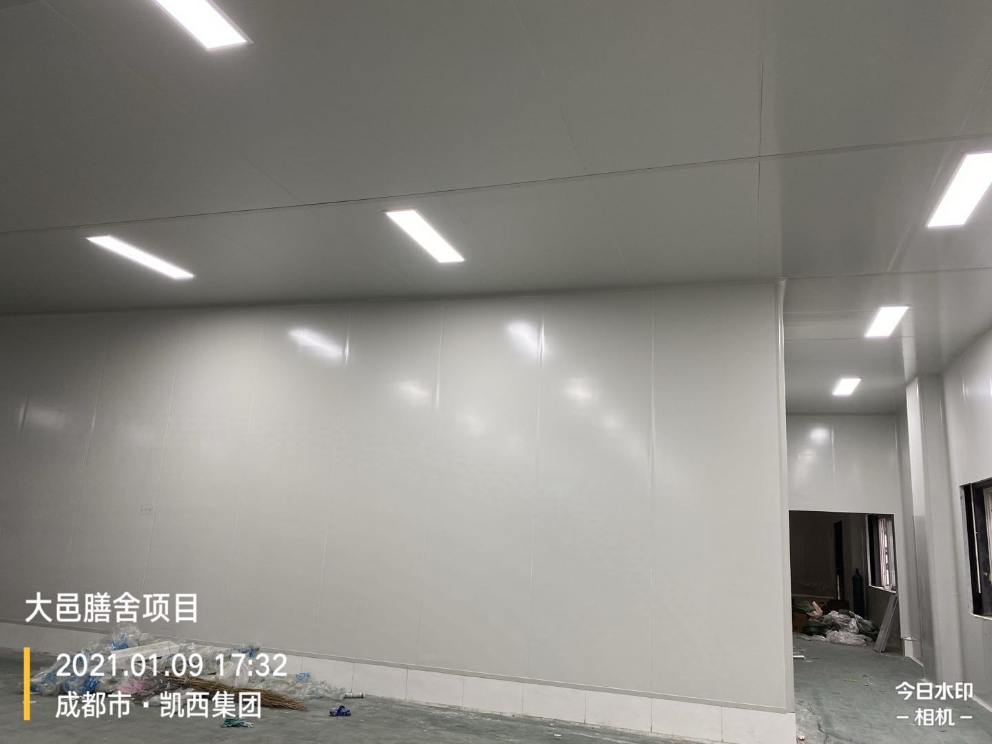 大邑膳舍食品項(xiàng)目:擋水墻貼磚完成90%,花紋鋼板、樓梯板到場(chǎng),樓梯踏步開始焊接,彩鋼墻板立板完成5%。