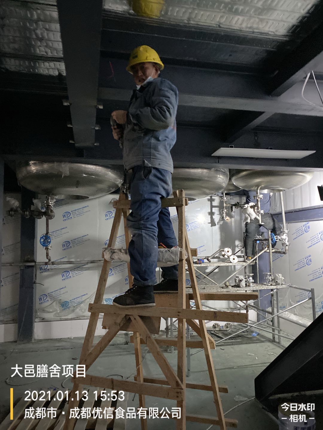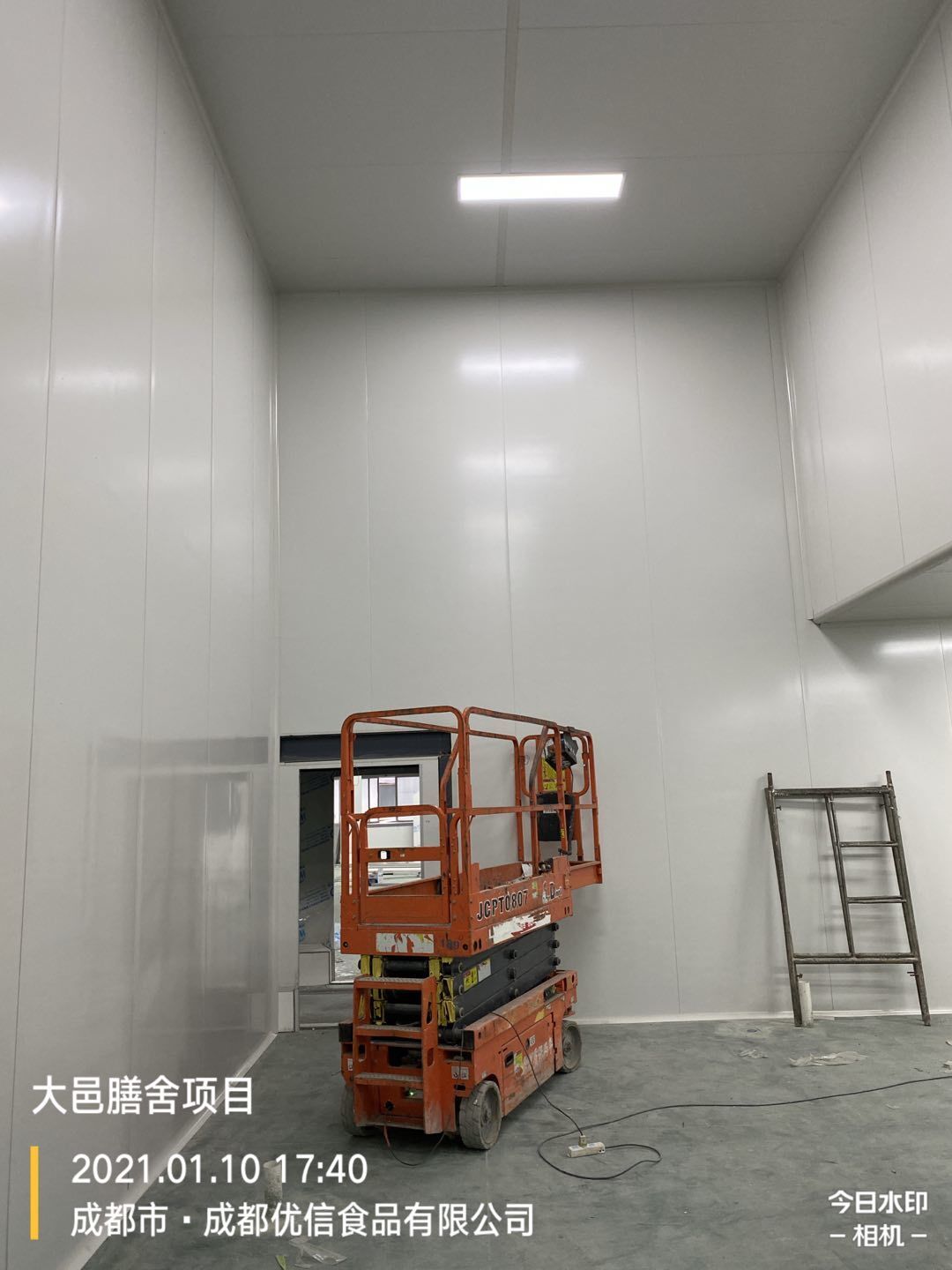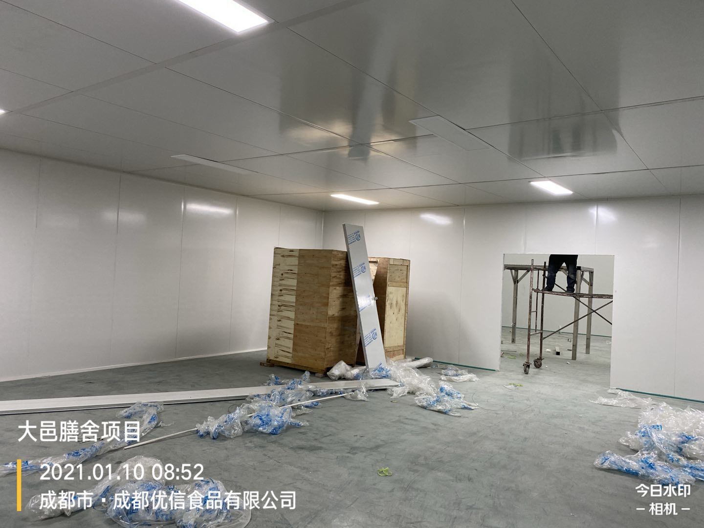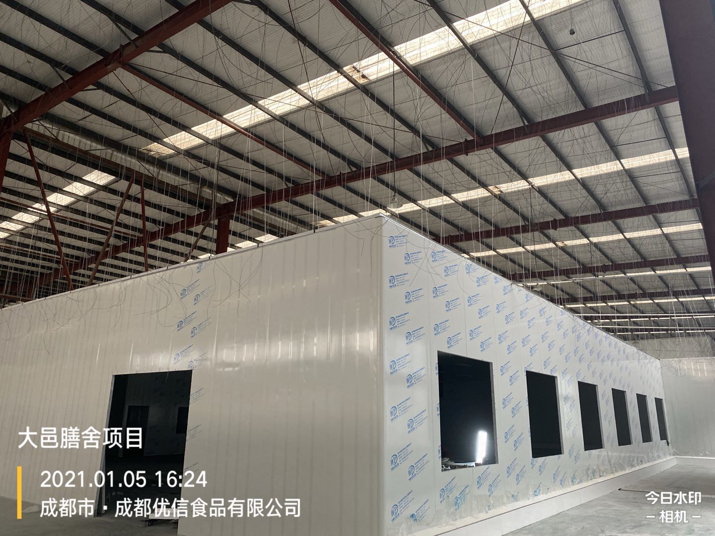 大邑膳舍食品項(xiàng)目:擋水墻貼磚完成90%,花紋鋼板、樓梯板到場(chǎng),樓梯踏步開始焊接,彩鋼墻板立板完成5%。