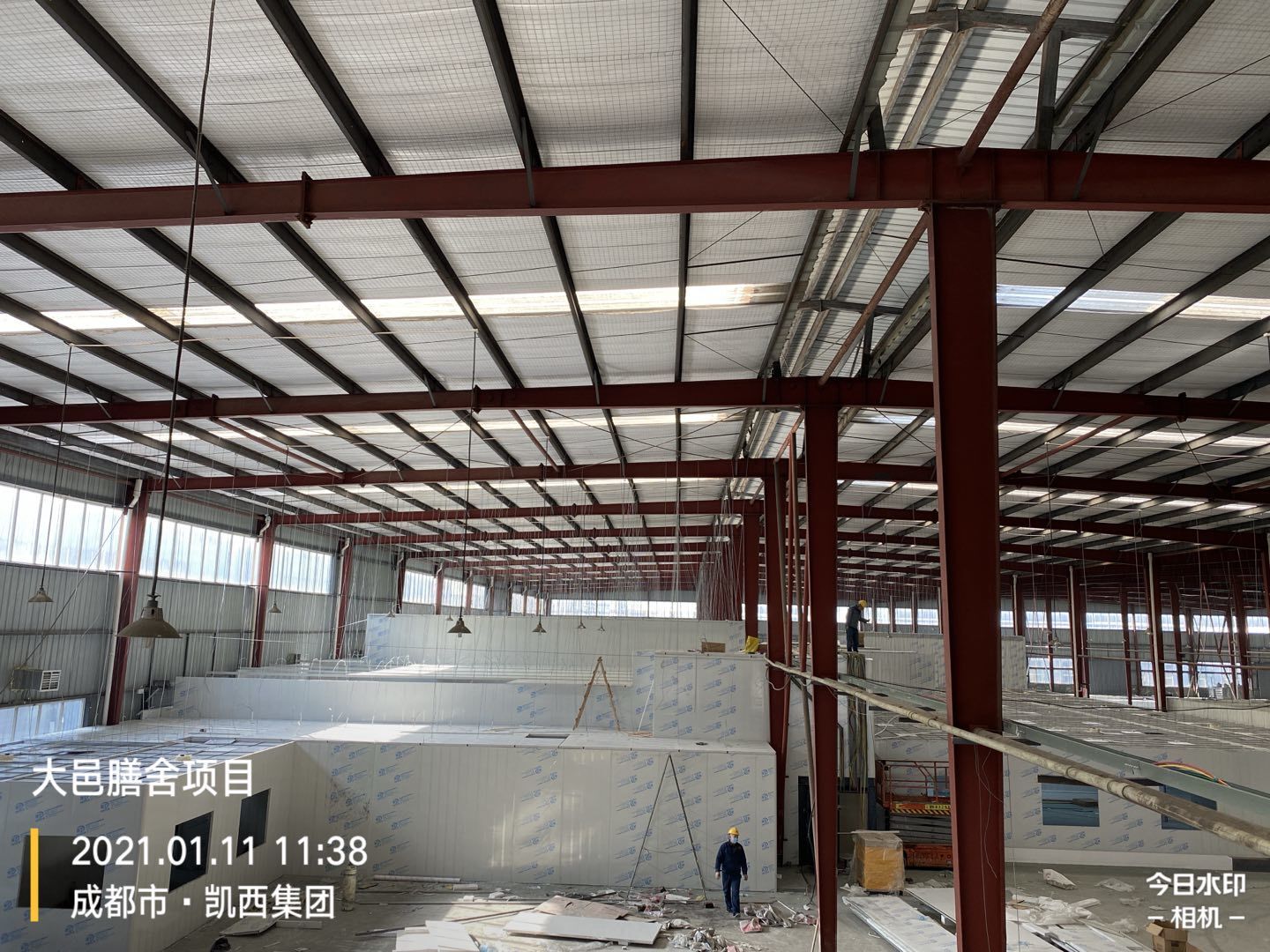 彩鋼墻板完成80%,頂板完成15%,鋼結(jié)構(gòu)完成100%,