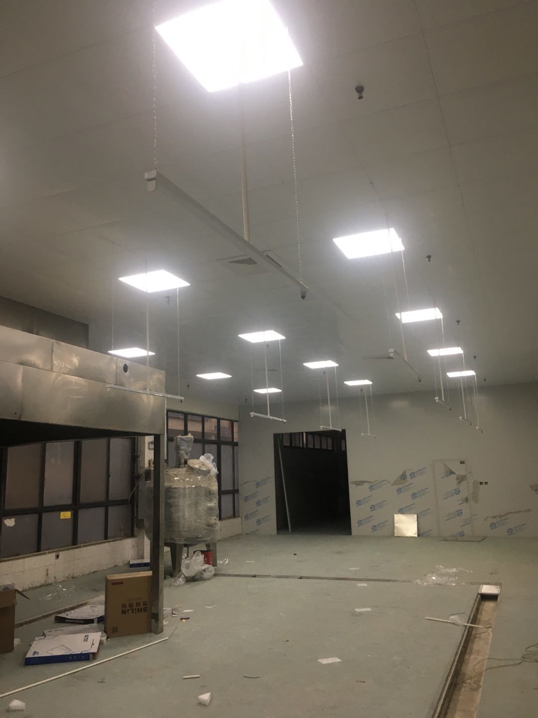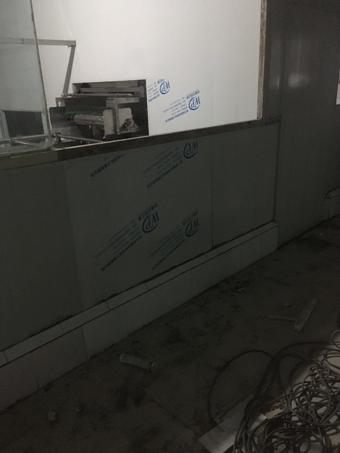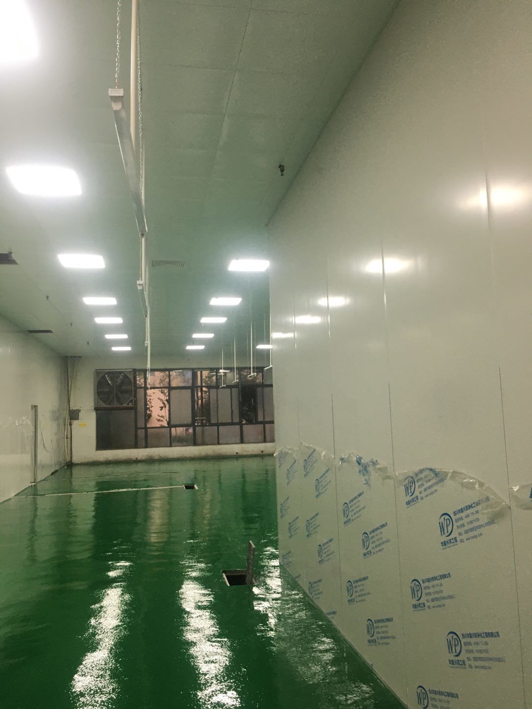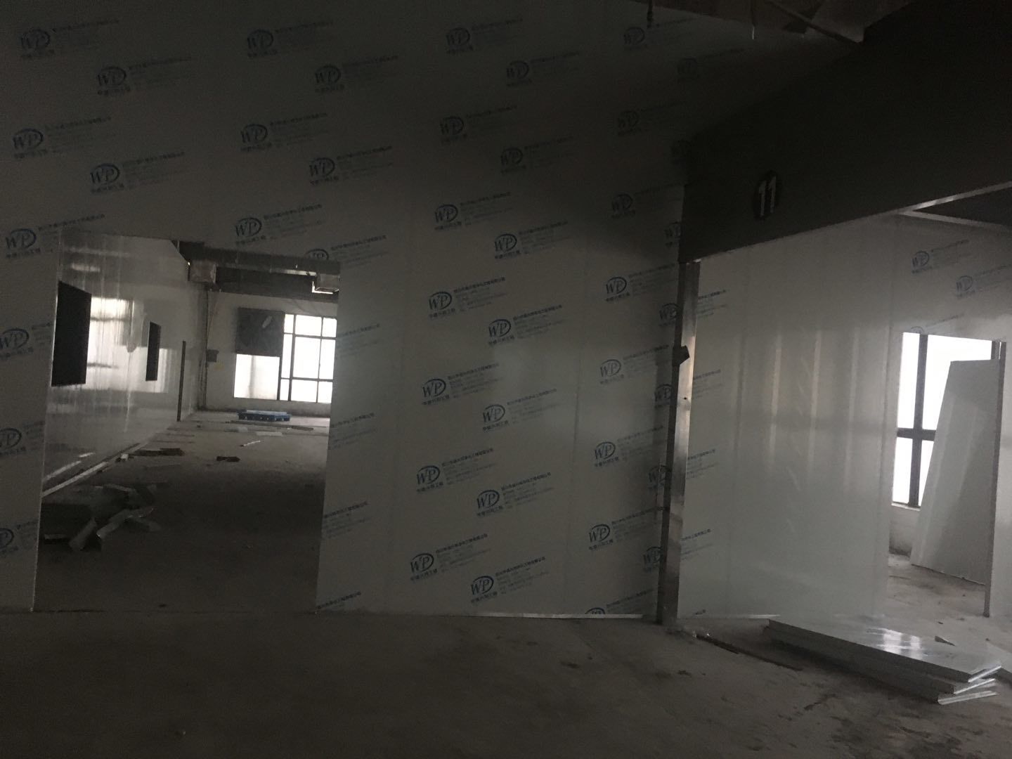 排水溝邊恢復(fù)完成100%;土建原有柱子瓷磚破碎恢復(fù)95%;彩鋼墻板完成100%;原有土建墻開門洞及恢復(fù)完成100%;門、窗完成100%;水、電完成40%;收尾完成量,撕膜、打密封膠、完成55%。