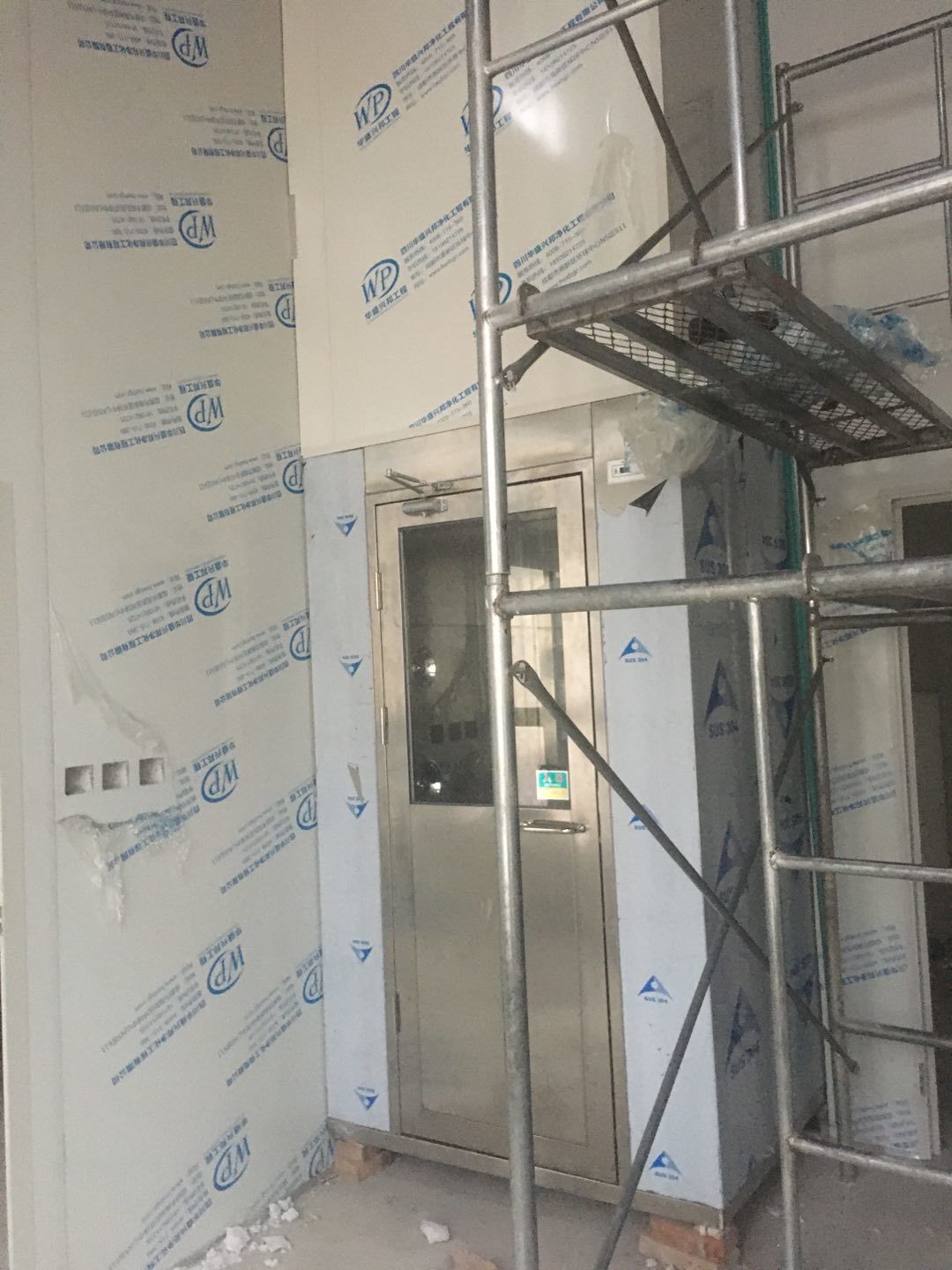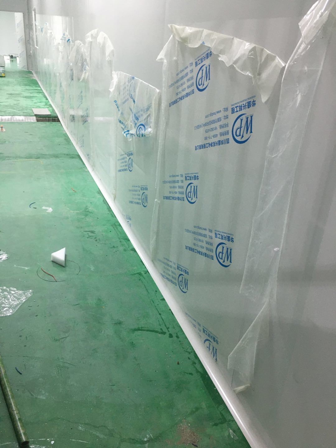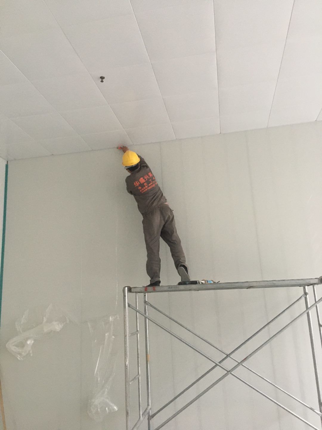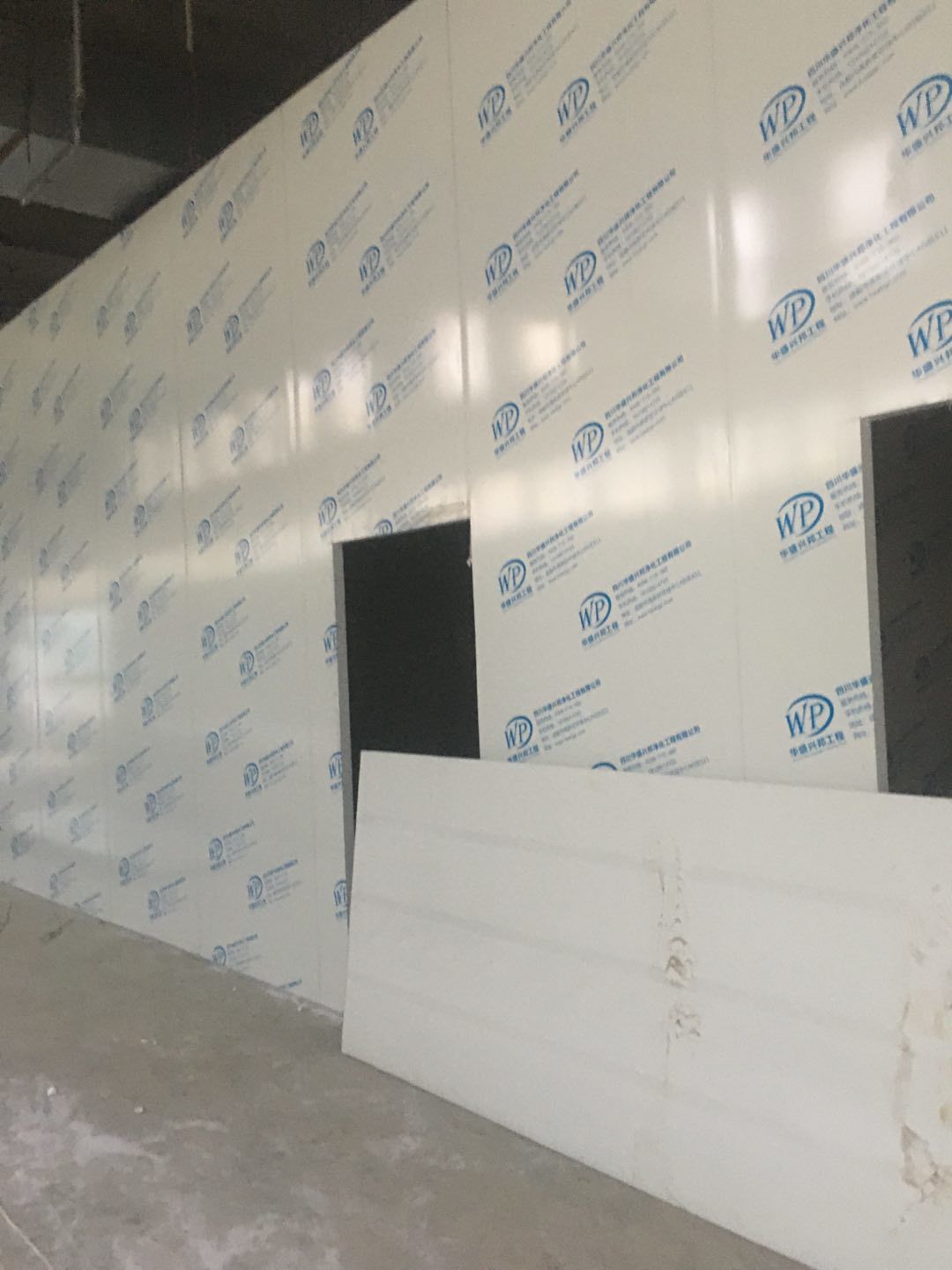 排水溝邊恢復(fù)完成100%;土建原有柱子瓷磚破碎恢復(fù)95%;彩鋼墻板完成100%;原有土建墻開門洞及恢復(fù)完成100%;門、窗完成100%;水、電完成40%;收尾完成量,撕膜、打密封膠、完成55%。