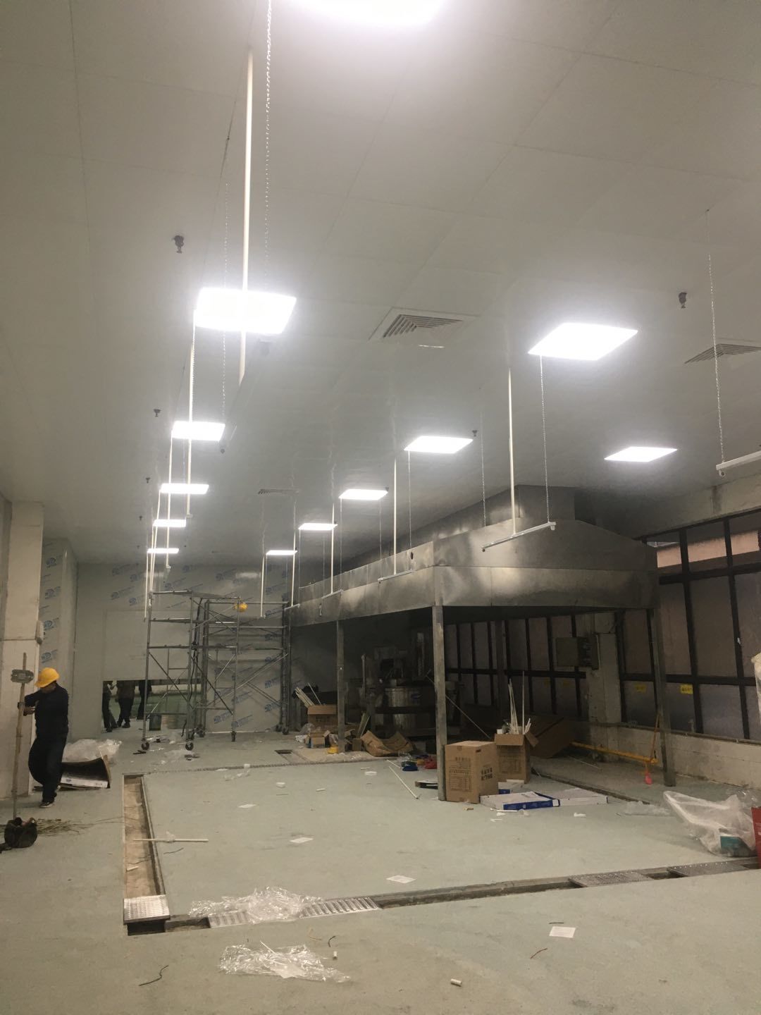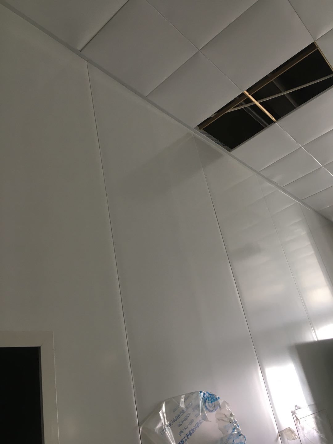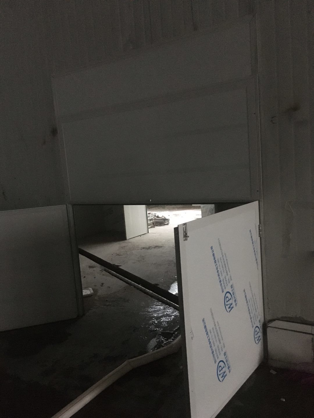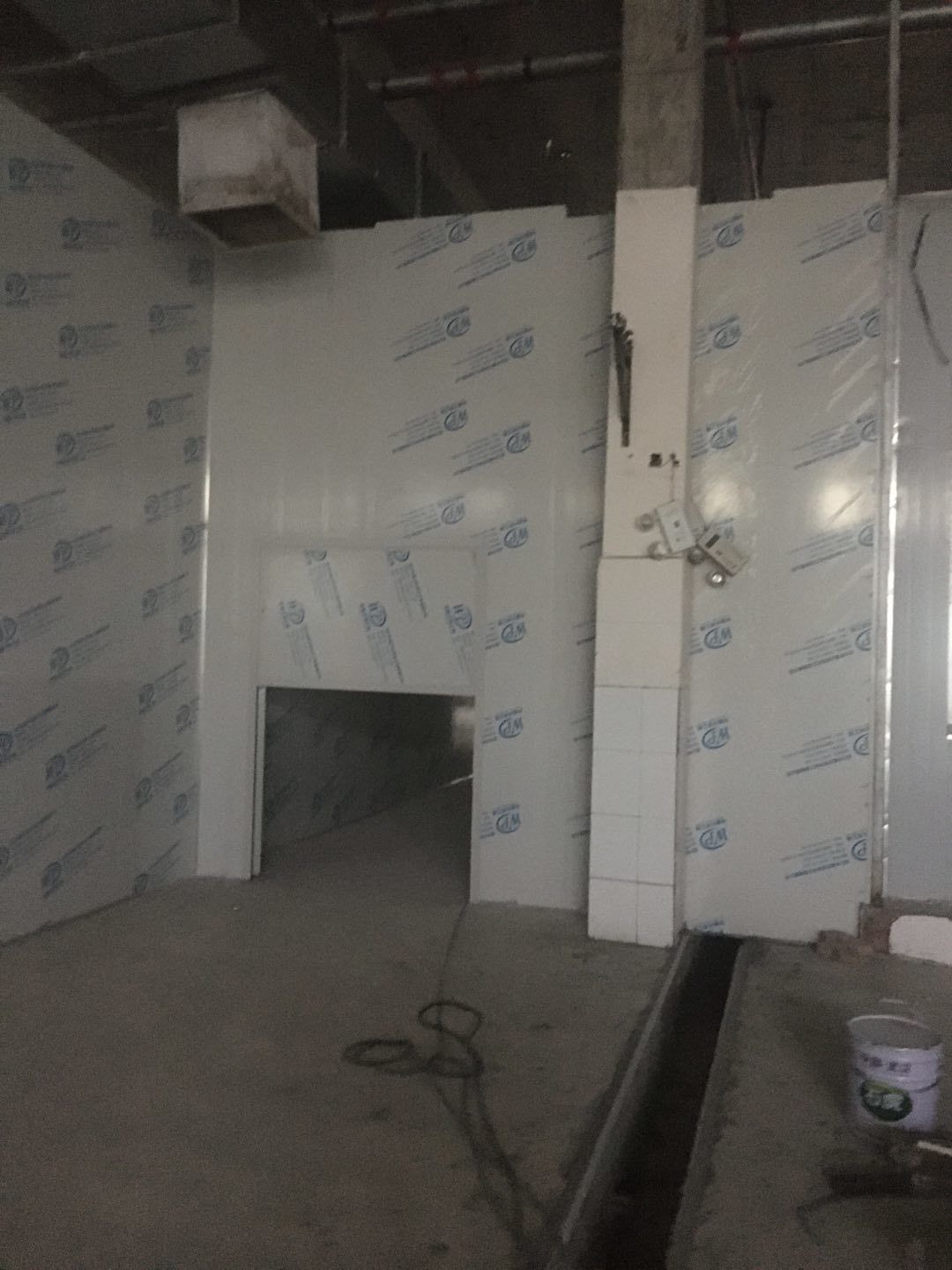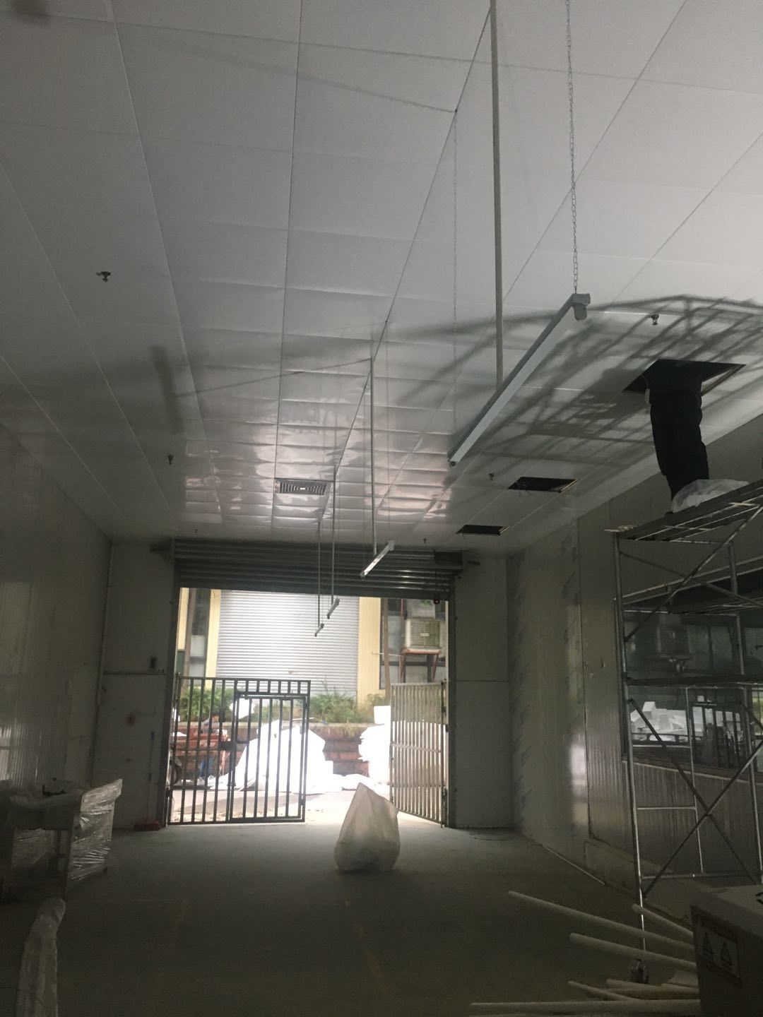 排水溝邊恢復(fù)完成70%,土建原有柱子瓷磚破碎恢復(fù)95%,彩鋼墻板完成70%,原有土建墻開門洞完成90%門,完成60%