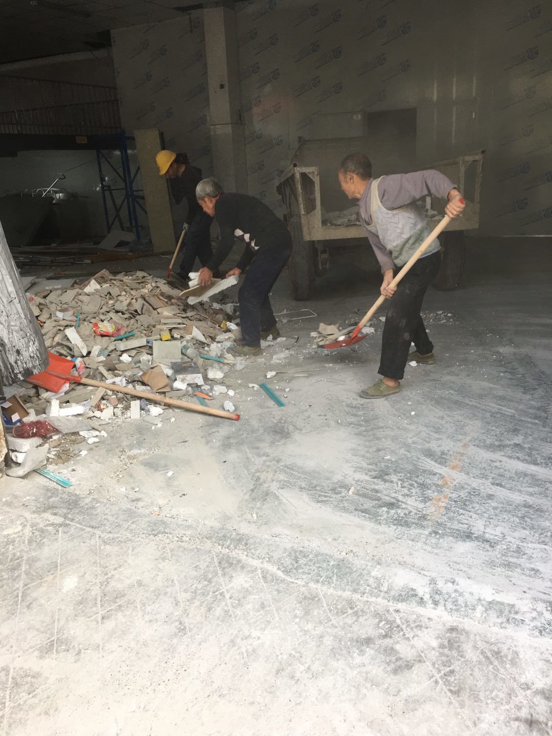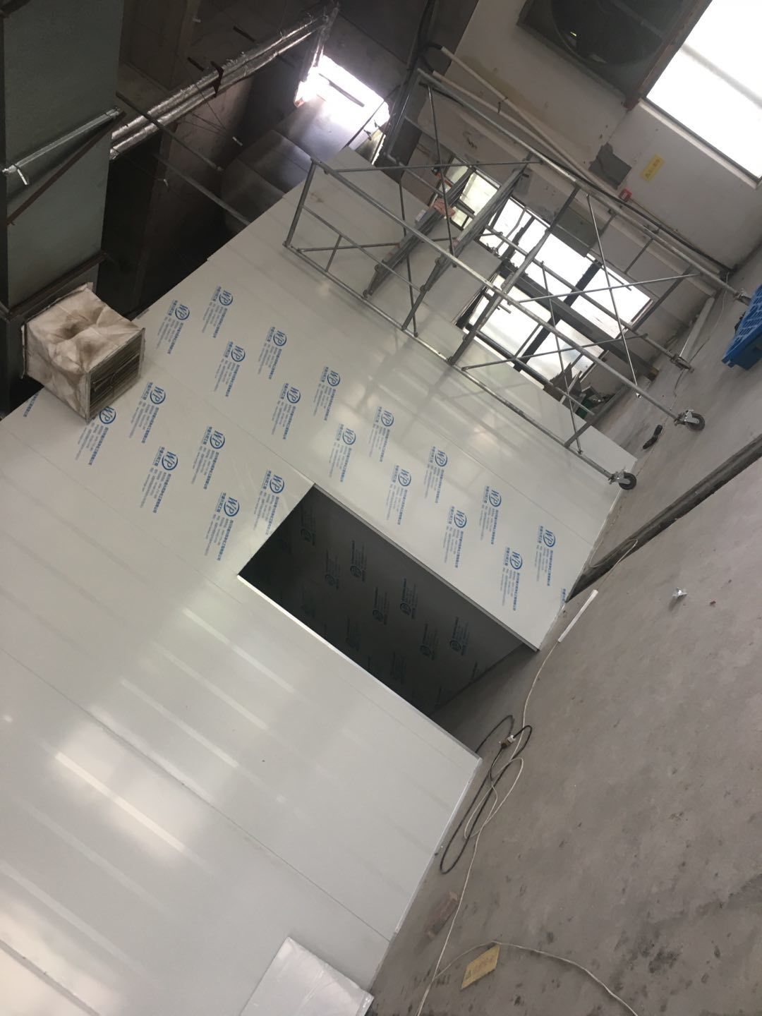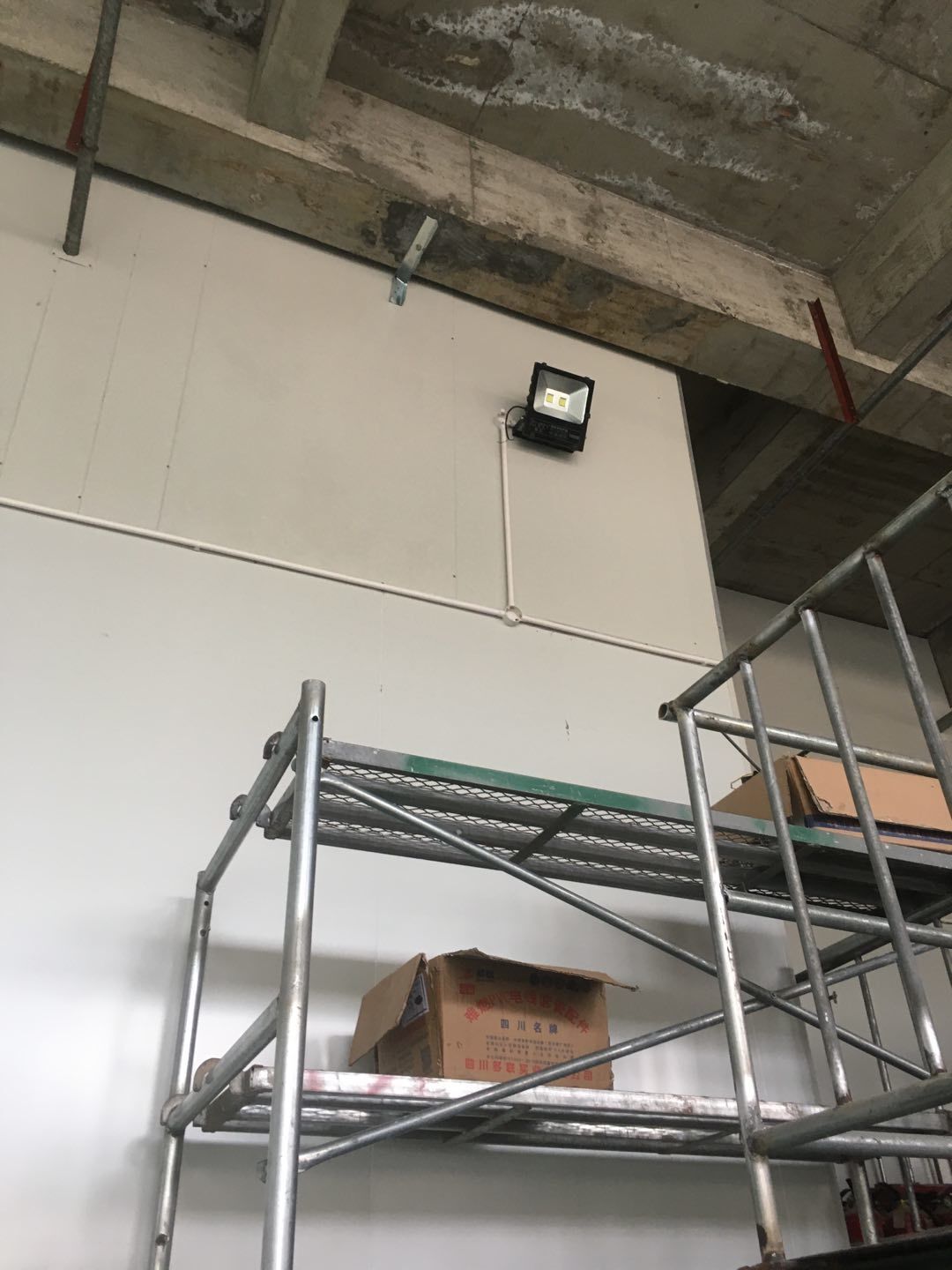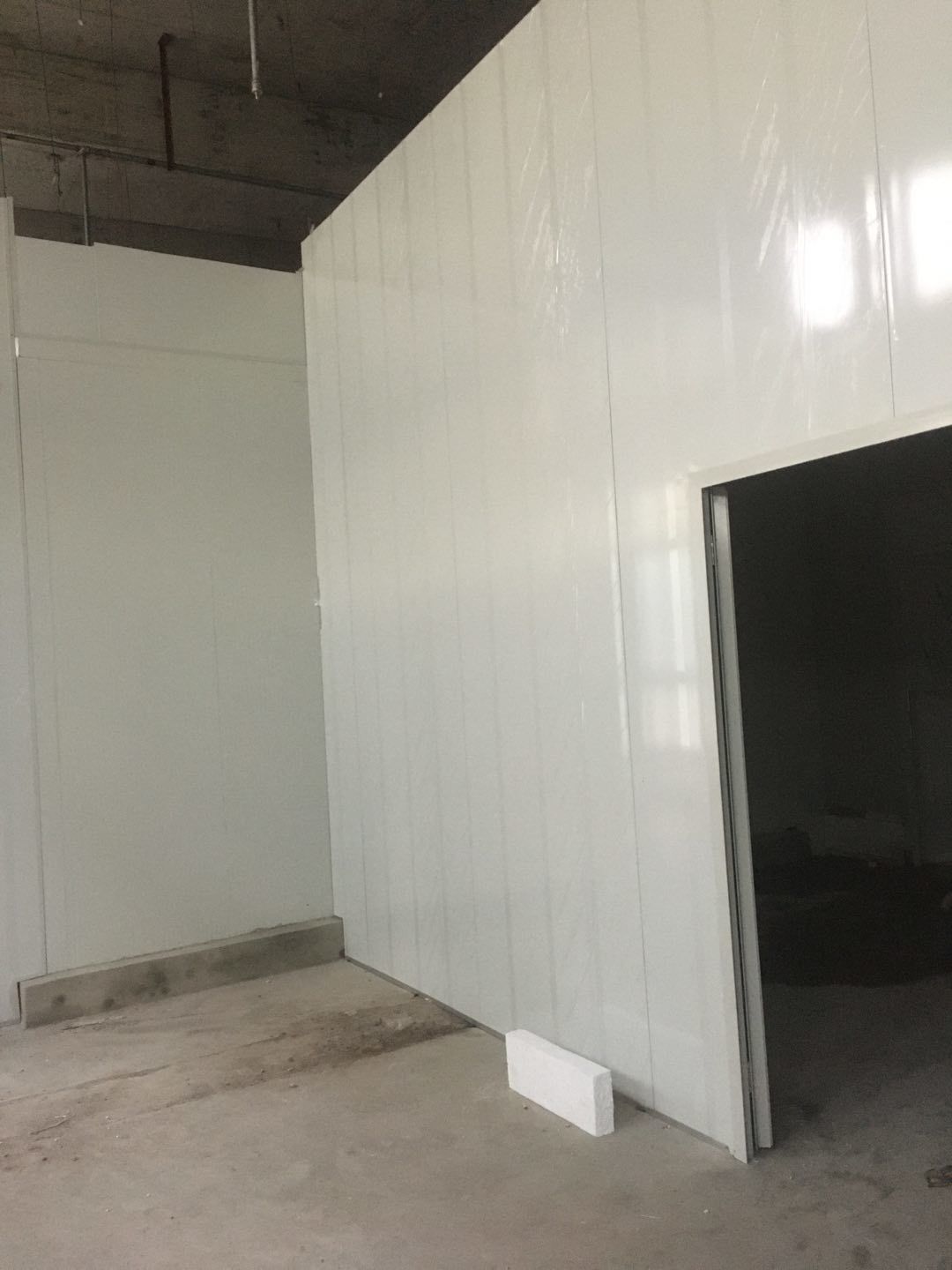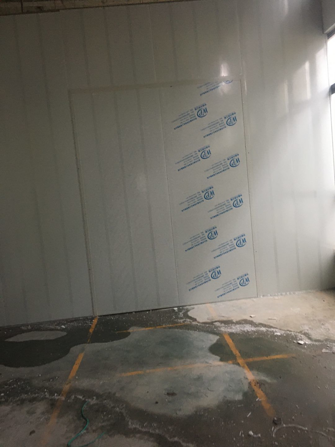 排水溝邊恢復(fù)完成70%,土建原有柱子瓷磚破碎恢復(fù)95%,彩鋼墻板完成70%,原有土建墻開門洞完成90%門,完成60%