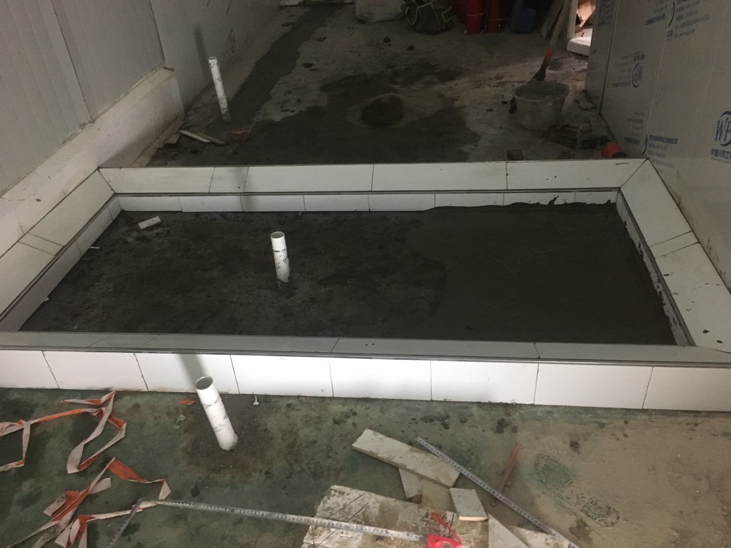 排水溝邊恢復(fù)完成20%,土建原有柱子瓷磚破碎恢復(fù)90%,彩鋼墻板完成50%,原有土建墻開門洞完成60%,門,完成20%