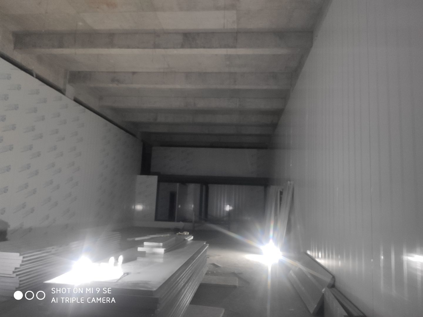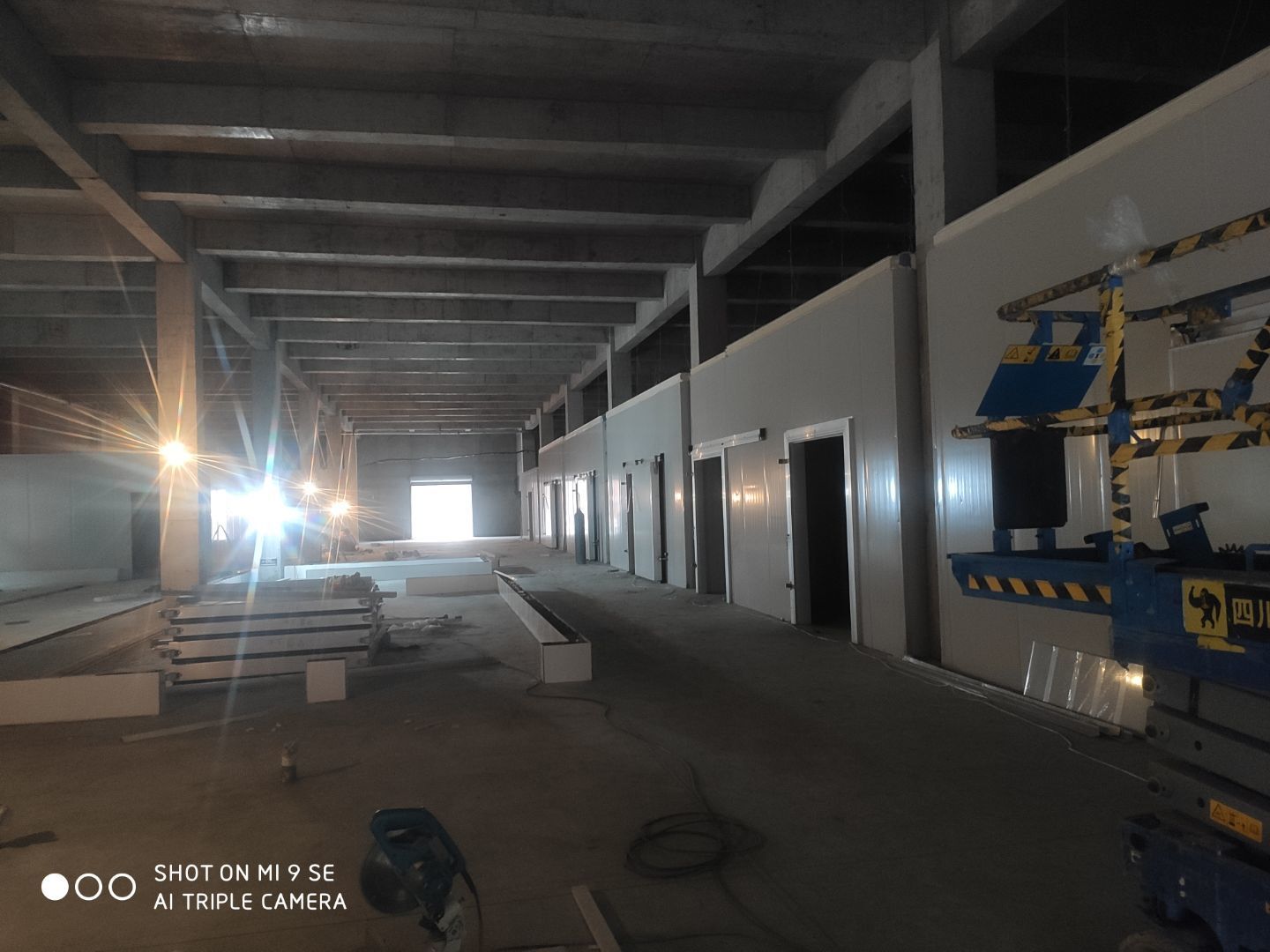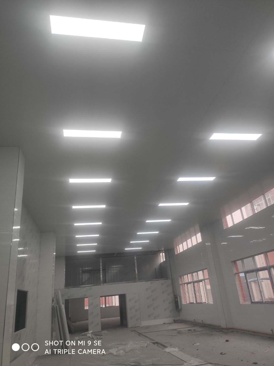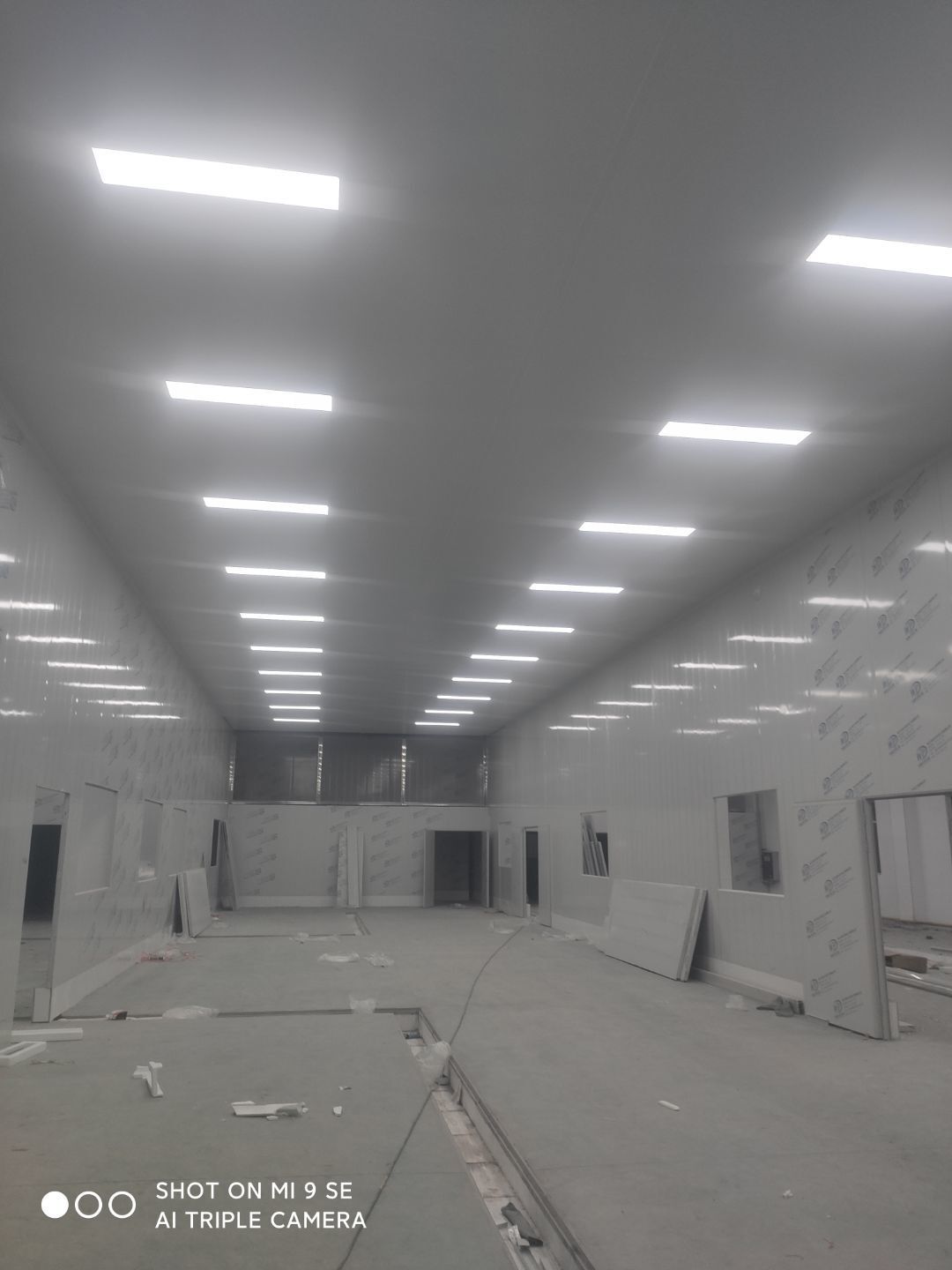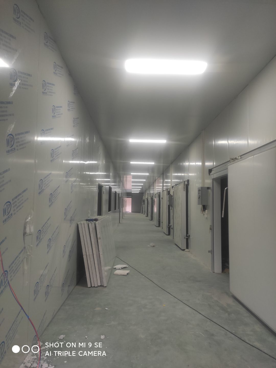 中央廚房車間燈安裝完成 米面車間立板完成 凍庫線路安裝完成