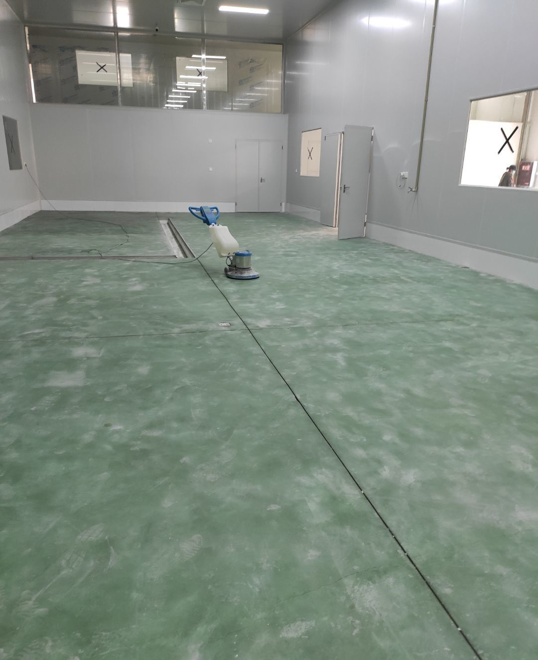 1.凍庫總體施工完成百分之八十 2.瓷磚完成百分之五十 3.垃圾清理,地面衛生打掃