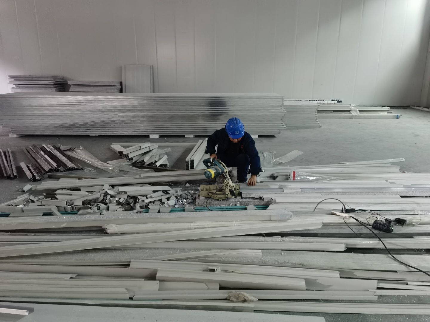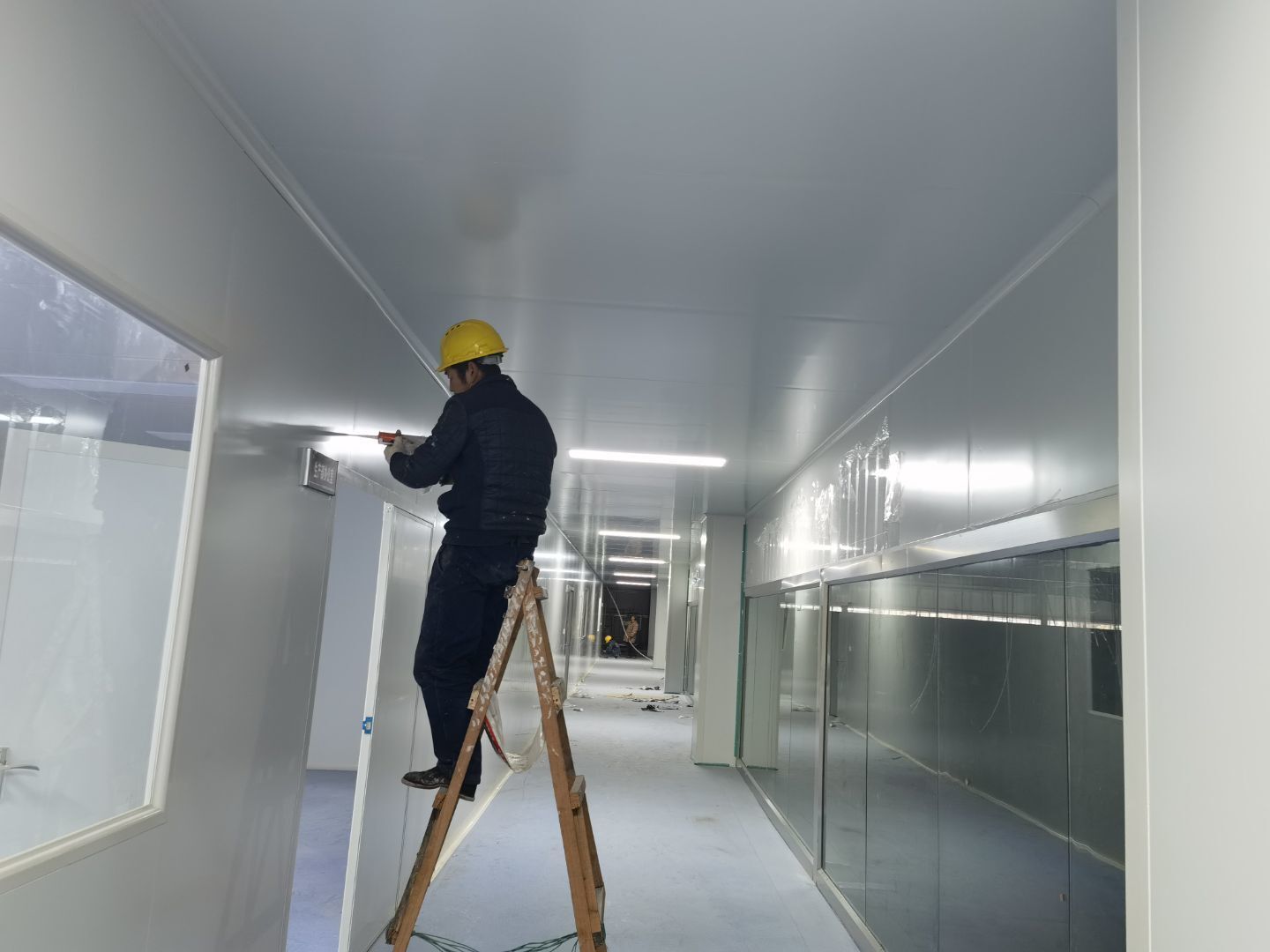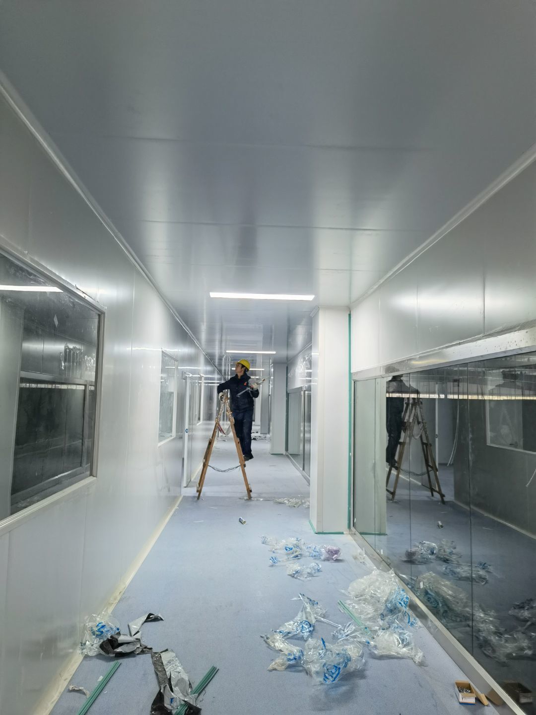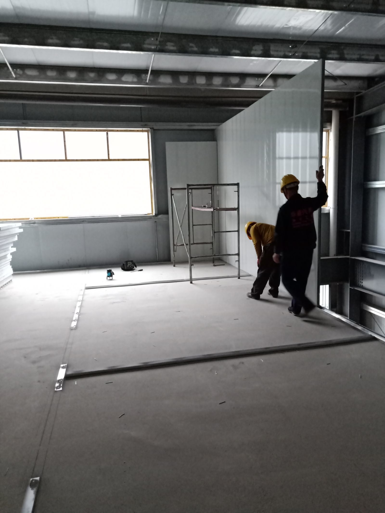 1. 3號廠房實(shí)驗(yàn)室辦公室區(qū)域pvc地板鋪貼完成。 2. 3廠房參觀通道玻璃框架焊接完成。 3. 3號廠房地面固化完成百分之98。 4. 3號廠房實(shí)驗(yàn)室辦公室區(qū)域地面圓弧完成百分之八十。 5. 4號車間彩鋼隔墻板安裝完成。 6. 4號車間殺菌間,中央廚房,吊頂完成。 7. 4號車間殺菌間配電線路完成,中央廚房燈具配電線路安裝完成, 8. 4號車間開關(guān),插座,線盒開洞完成,插座面板安裝完成百分之80。 9. 4號車間T鋁安裝完成百分之80。 10. 4號車間門框安裝完成百分之80。