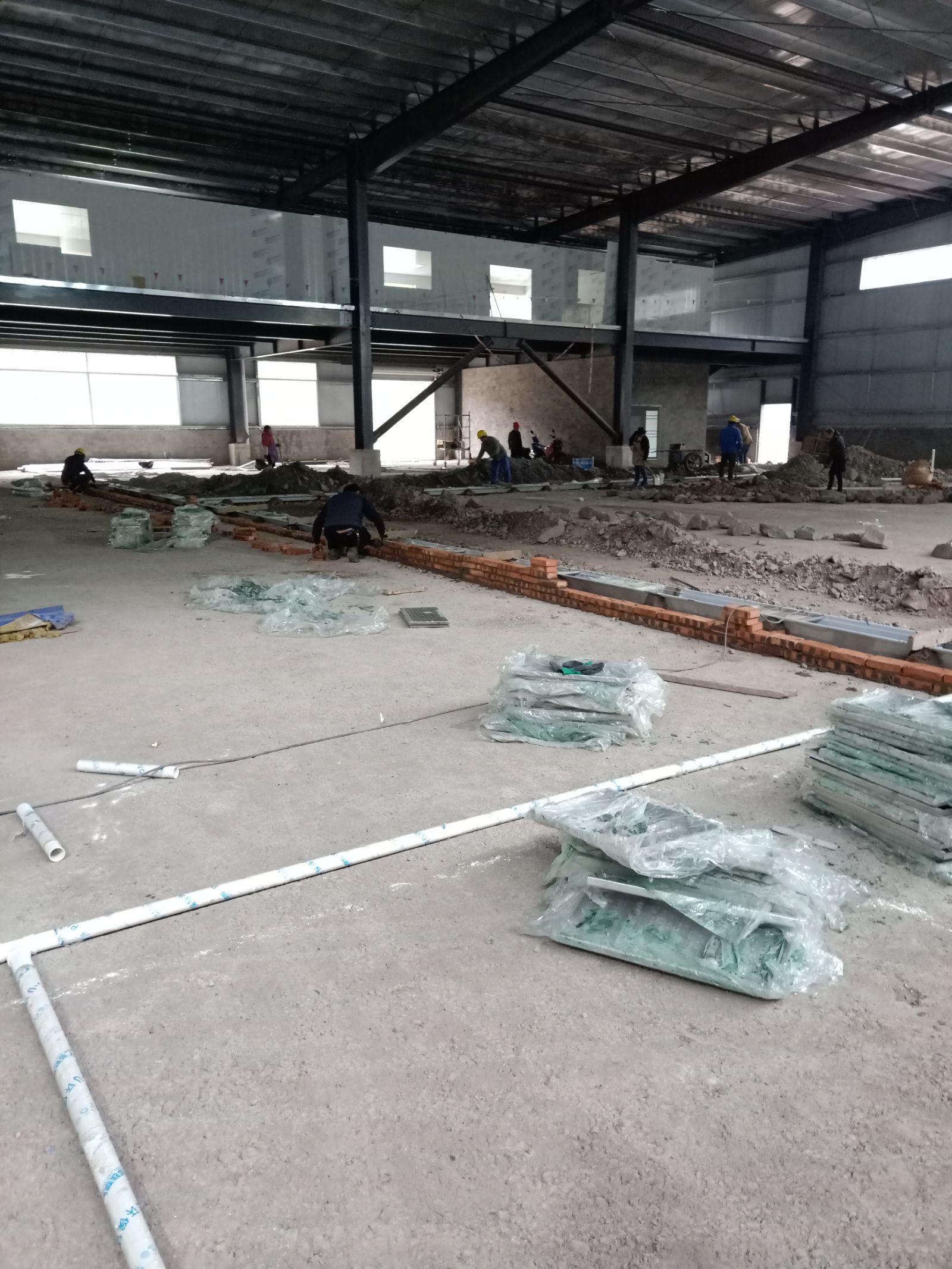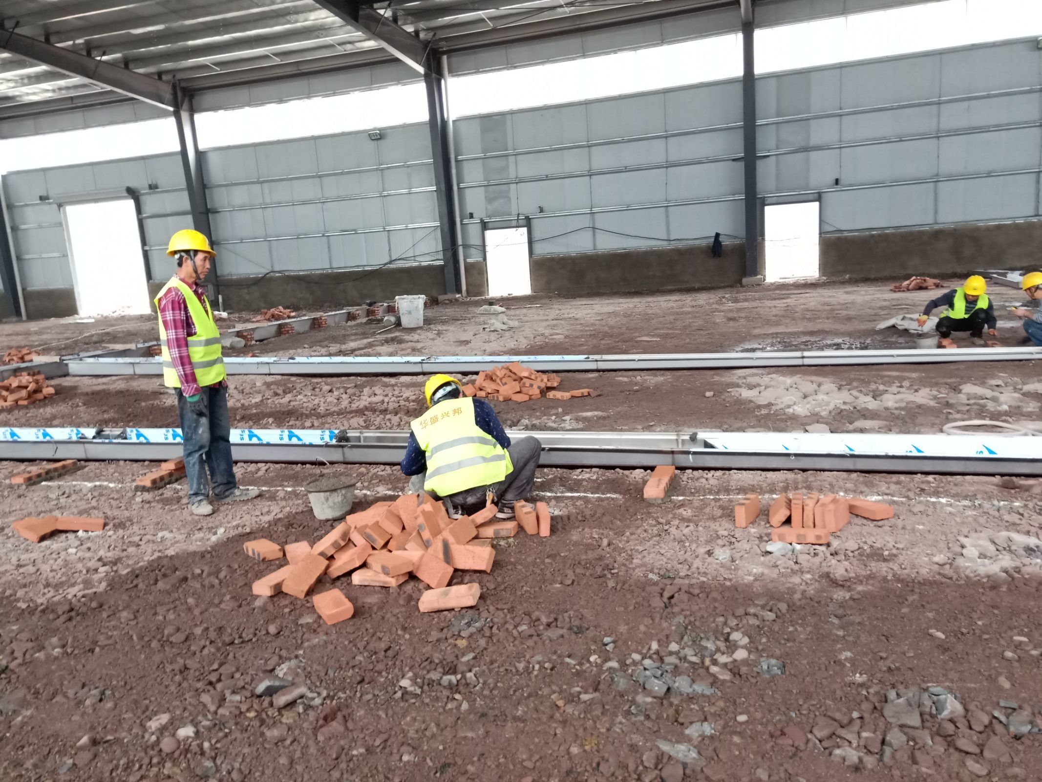 1. 4號廠房地坪養(yǎng)護(hù)。 2. 4號廠房不銹鋼水溝邊清理。 3. 4號廠房地坪切縫完成。 4. 4號廠房隔墻地位放線。 5. 3號廠房水溝安裝回填完成。 6. 3號廠房擋水墻砌筑完成百分之五十。 7. 3號廠房場地清理完成,準(zhǔn)備地坪混凝土澆筑。 8. 3號廠房混凝土澆筑區(qū)域標(biāo)高定位完成。