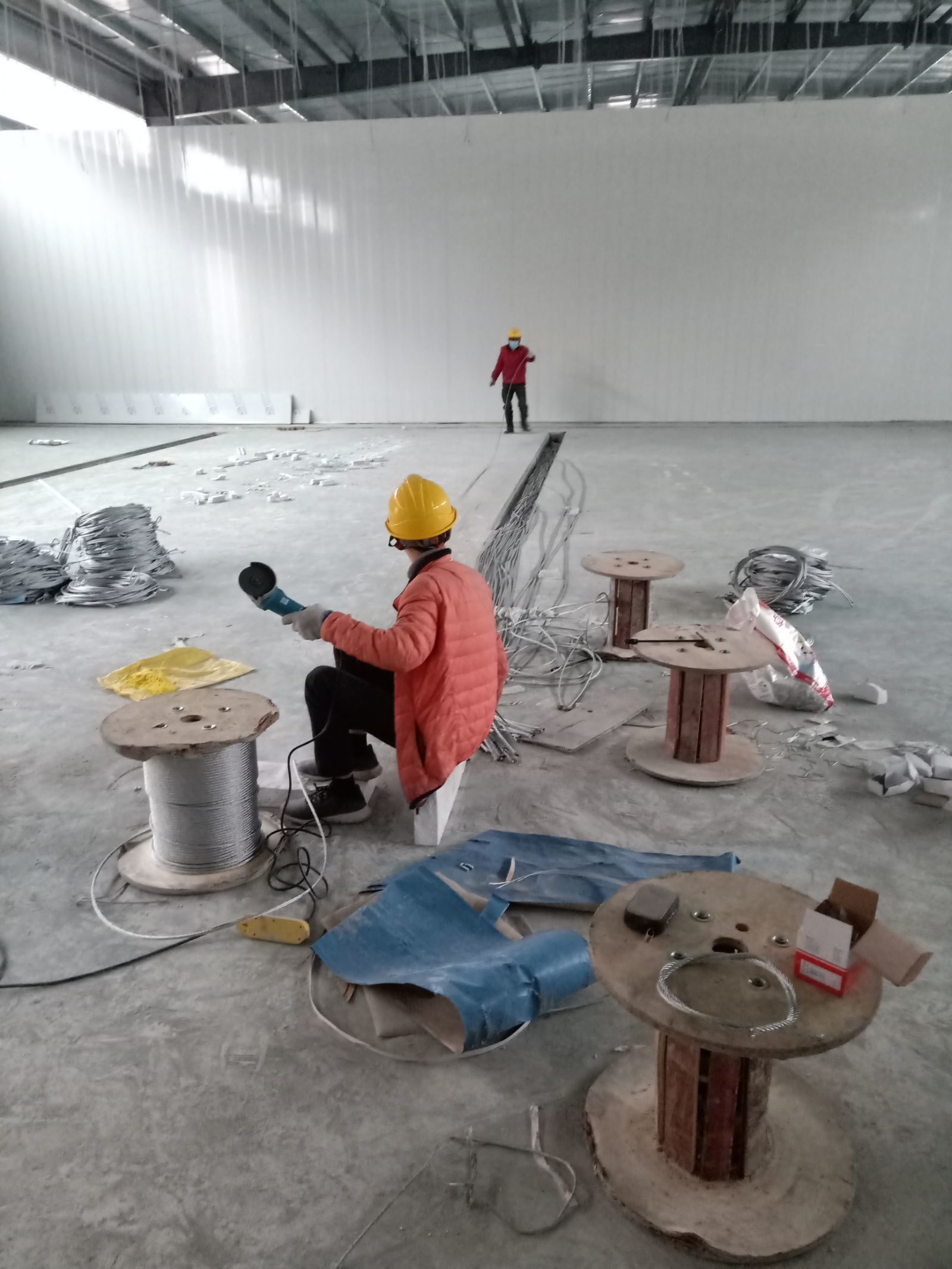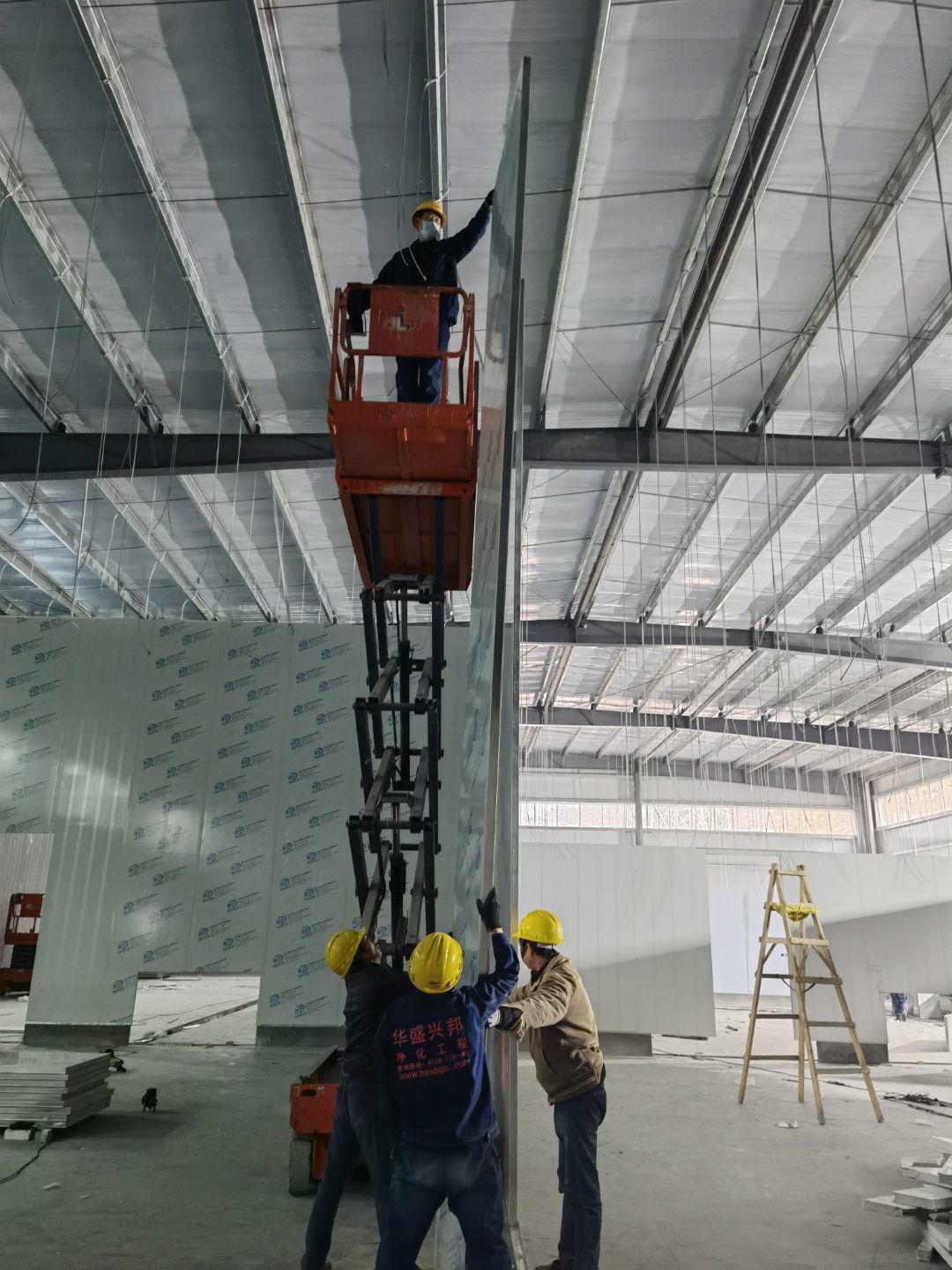 1.4號廠房地面固化完成百分之九十九。 2.4號廠房彩鋼隔墻板完成百分之八十。 3.4號廠房吊頂鋼繩完成百分之九十。 4.3號廠房擋水墻完成,地面固化開始。 5.實(shí)驗(yàn)室pvc地板到場。