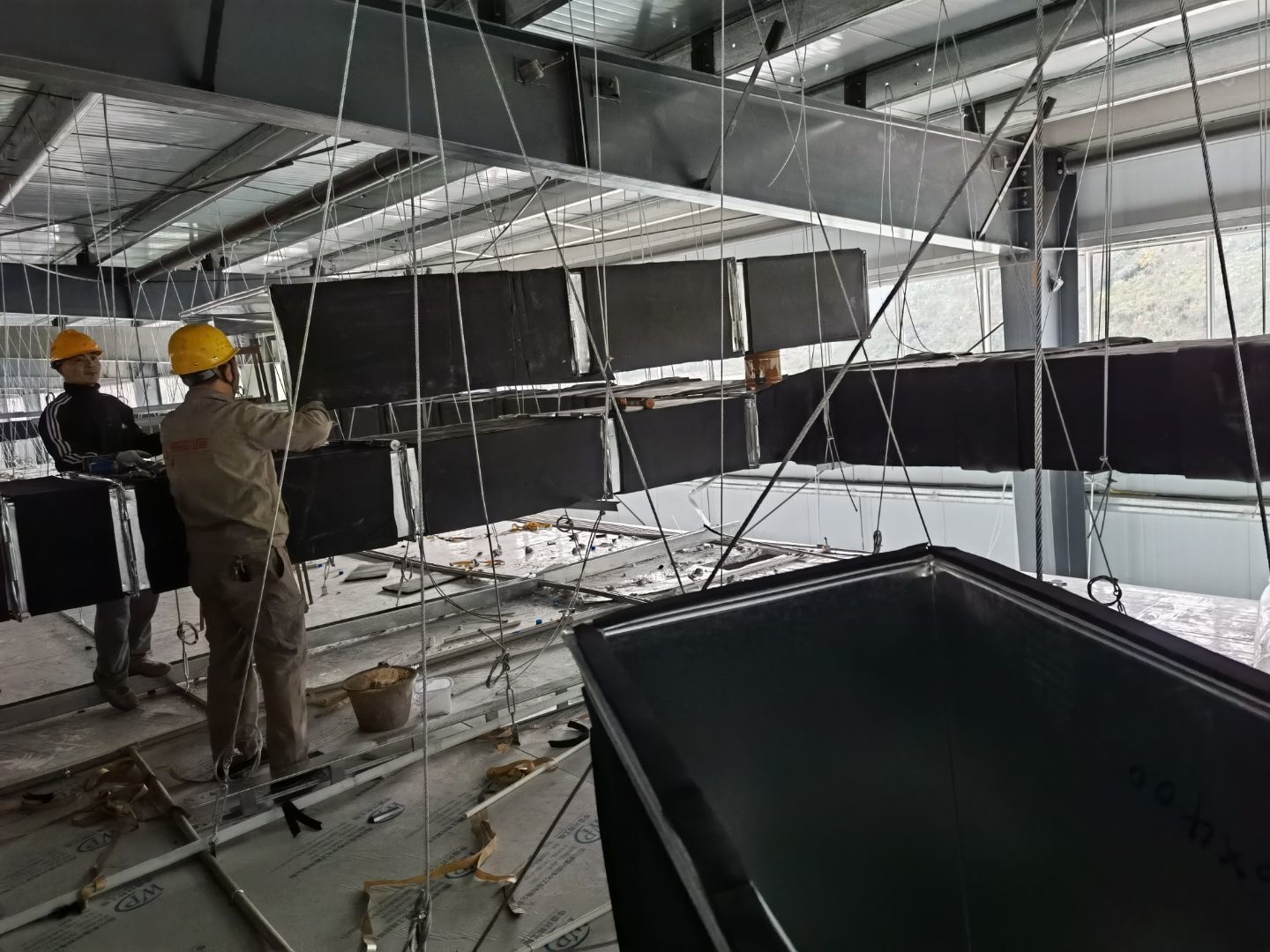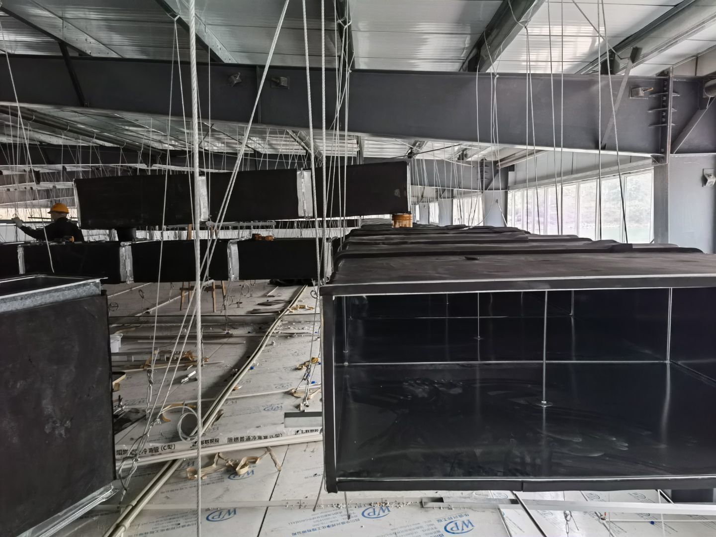 4號廠房通風(fēng)管道安裝完成百分之50,4號廠房臭氧管道安裝完成百分之90