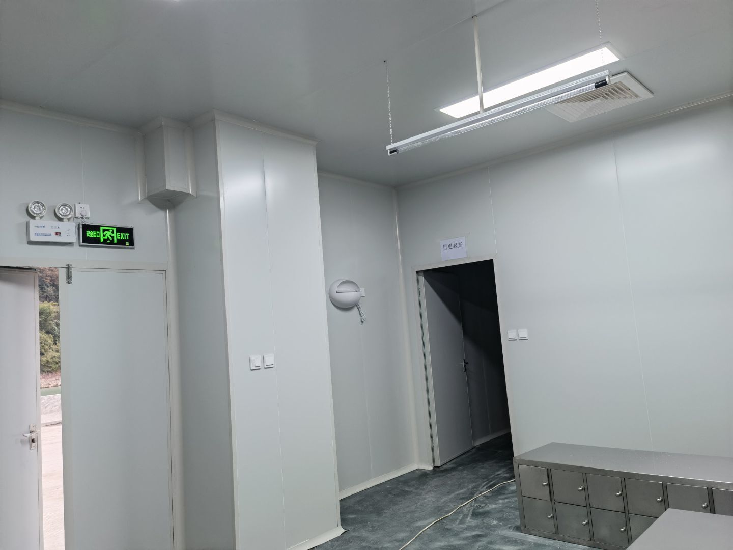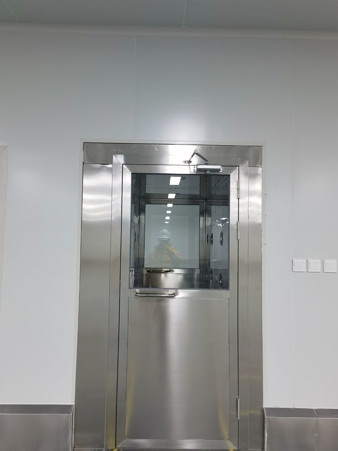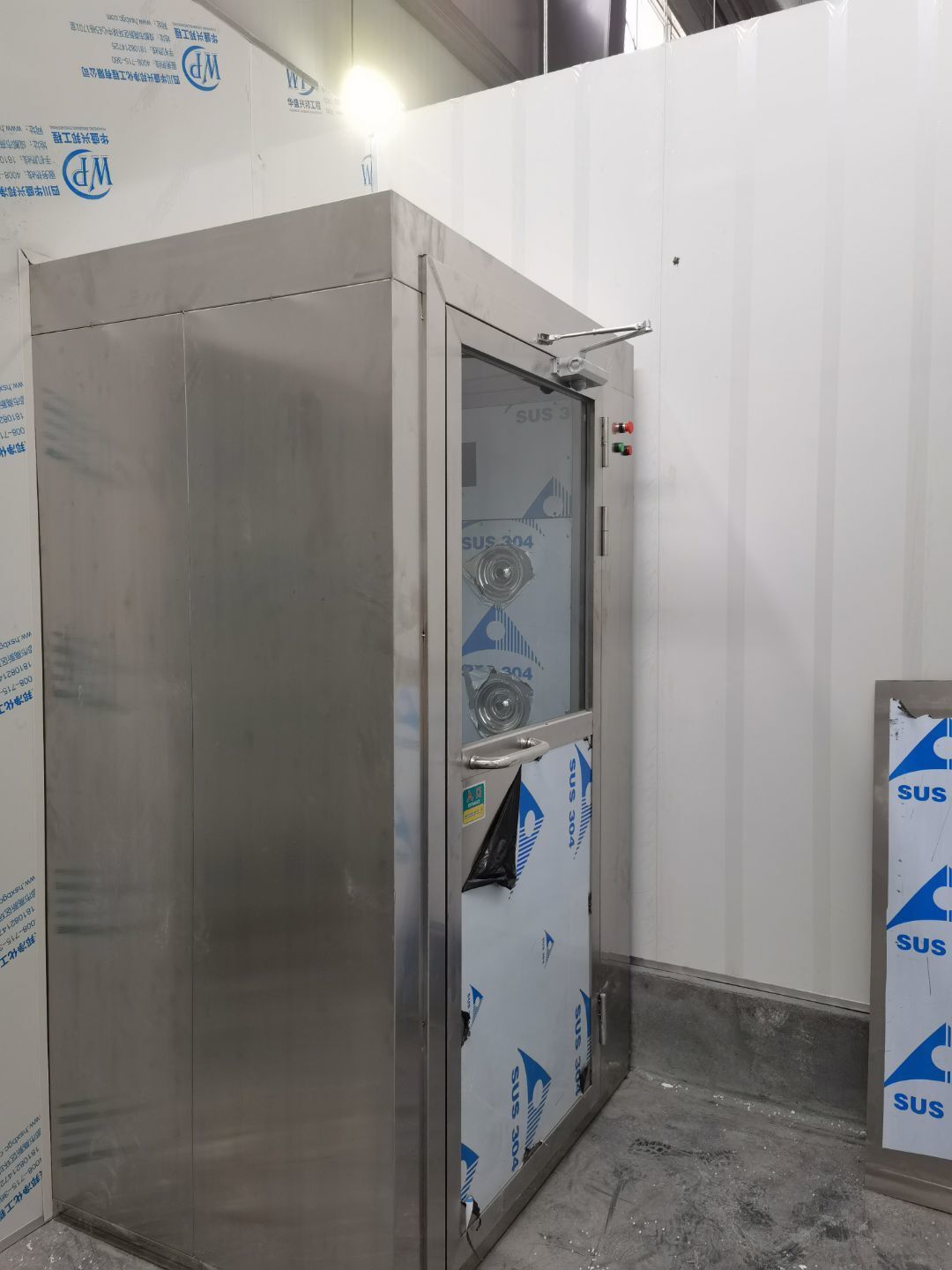 4號廠房不銹鋼制品風(fēng)淋室消毒洗手池等安裝完成,風(fēng)淋室擺放完成