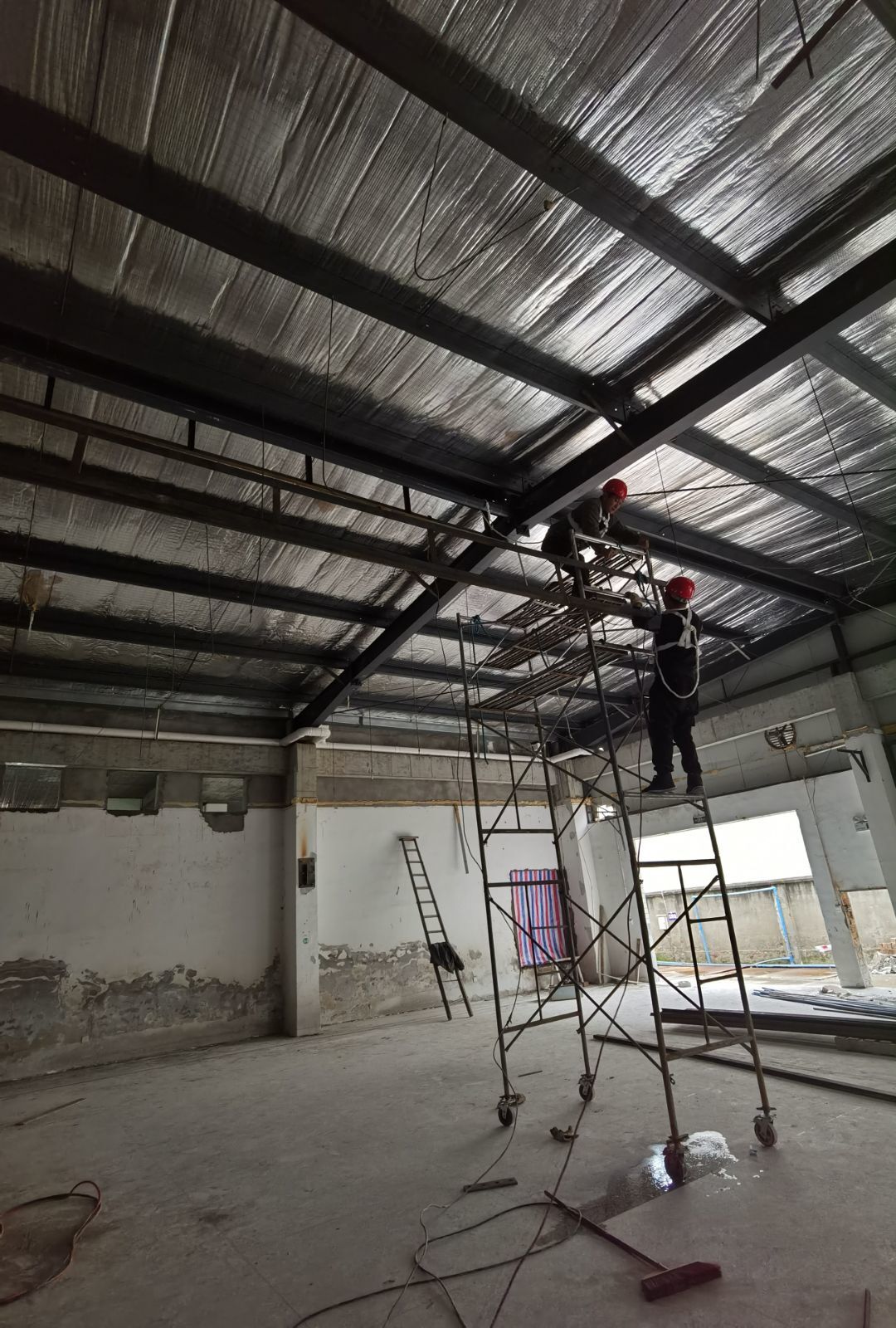 ①鋼接構完成100%②凍庫完成100%③彩鋼墻板完成100%,④水丶電完成10%、建渣清理