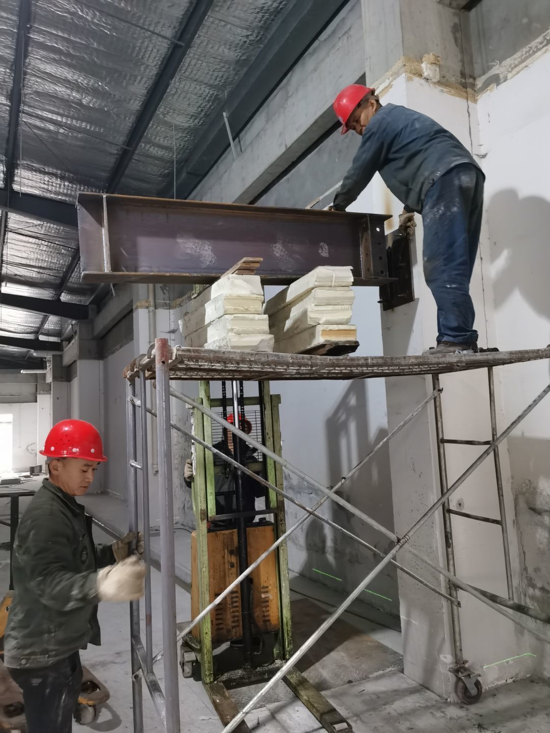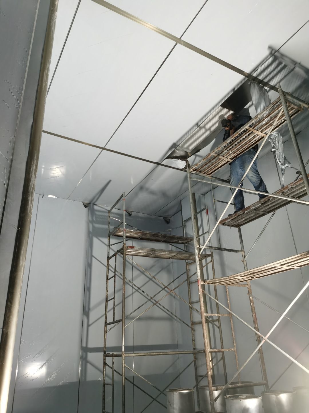 1、化學螺栓鋼板預埋,2、凍庫材料進場