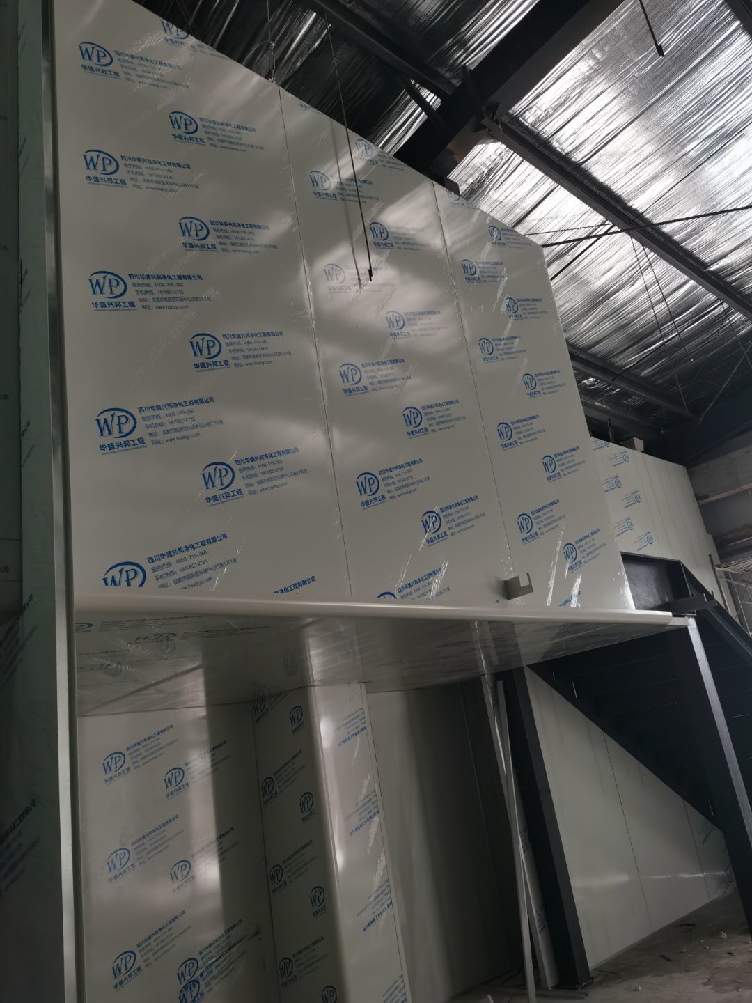 1、鋼接構完成70%;2、凍庫完成100%;3、彩鋼板開始立墻板
