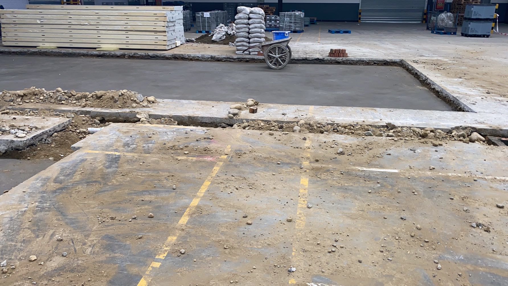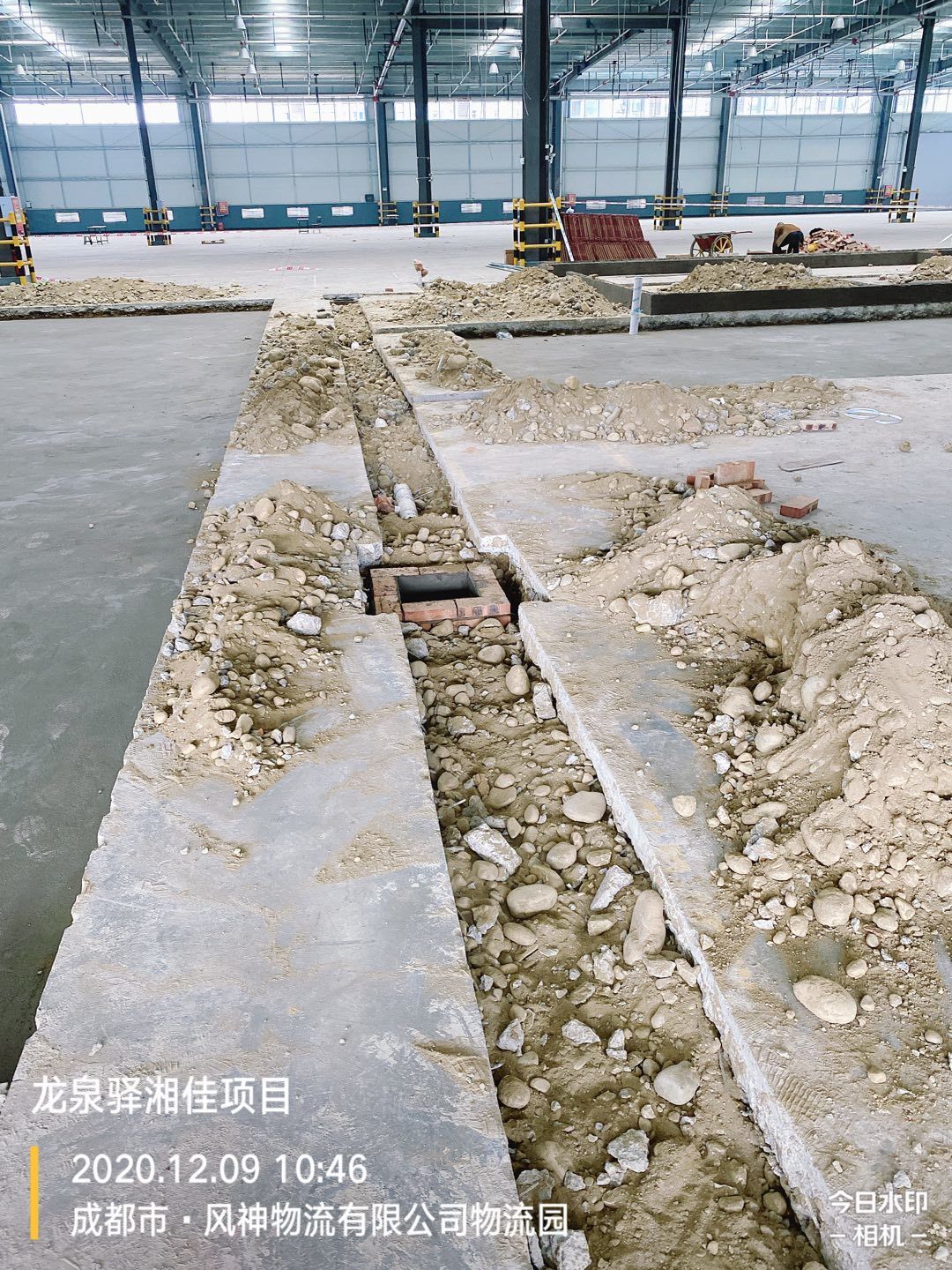 1.排水管道開挖破碎80米。 2.吊頂鋼繩安裝完成百分之40.