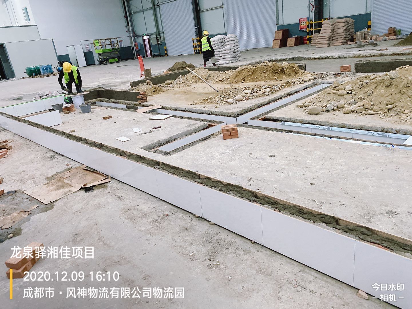車間擋水墻瓷磚鋪貼完成70%,排水管埋設、土方回填完成,剩余土方清運離場完成60%。