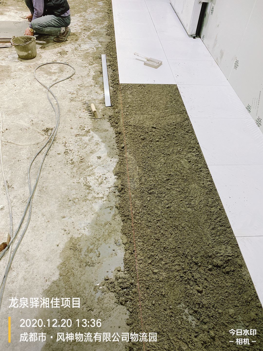 墻體打膠,地面瓷磚鋪設