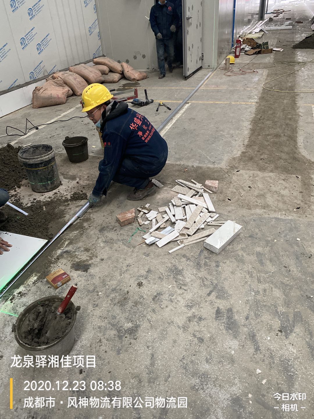 前處理間地板磚施工完成,回填土二次澆水夯實。