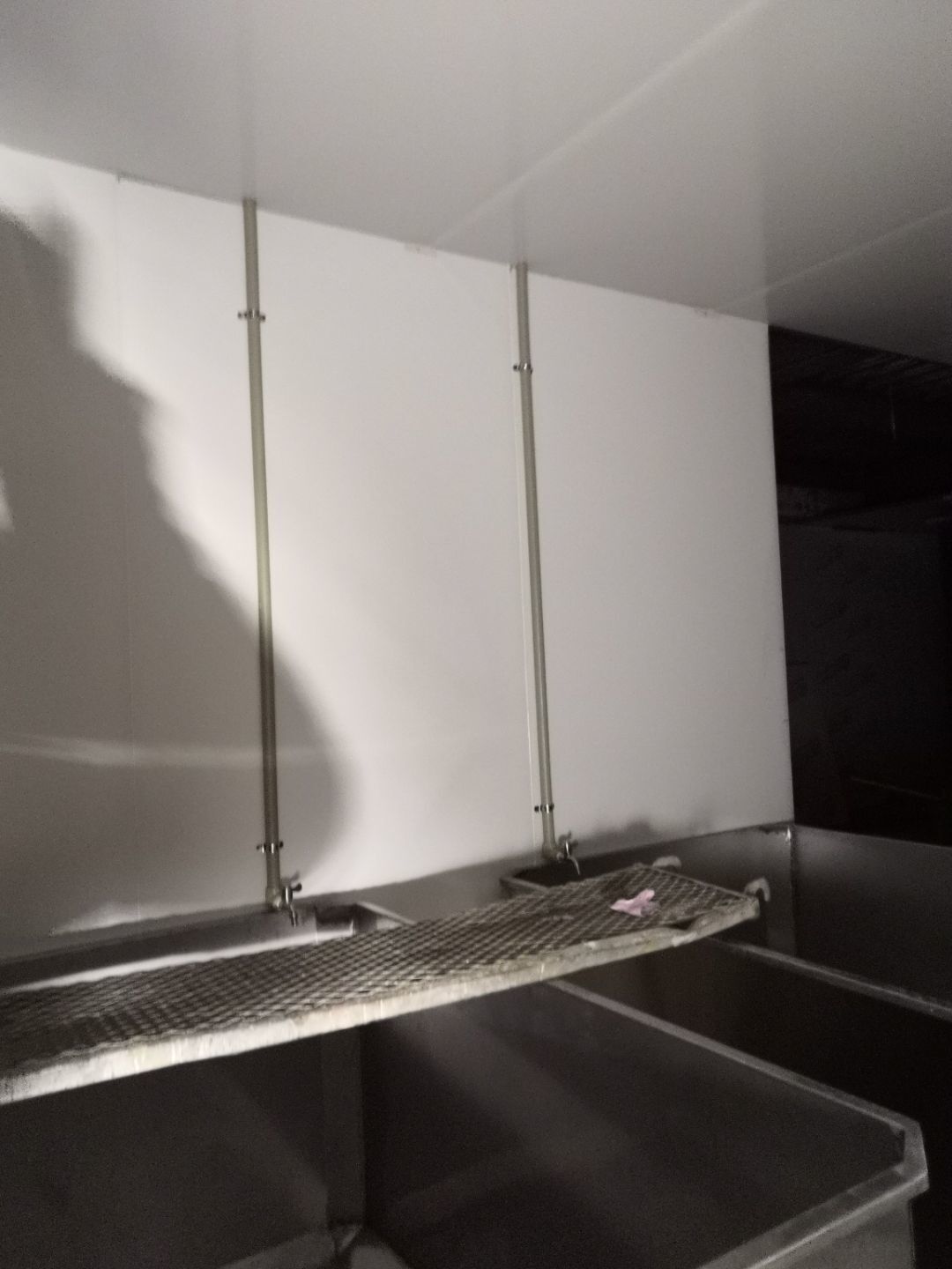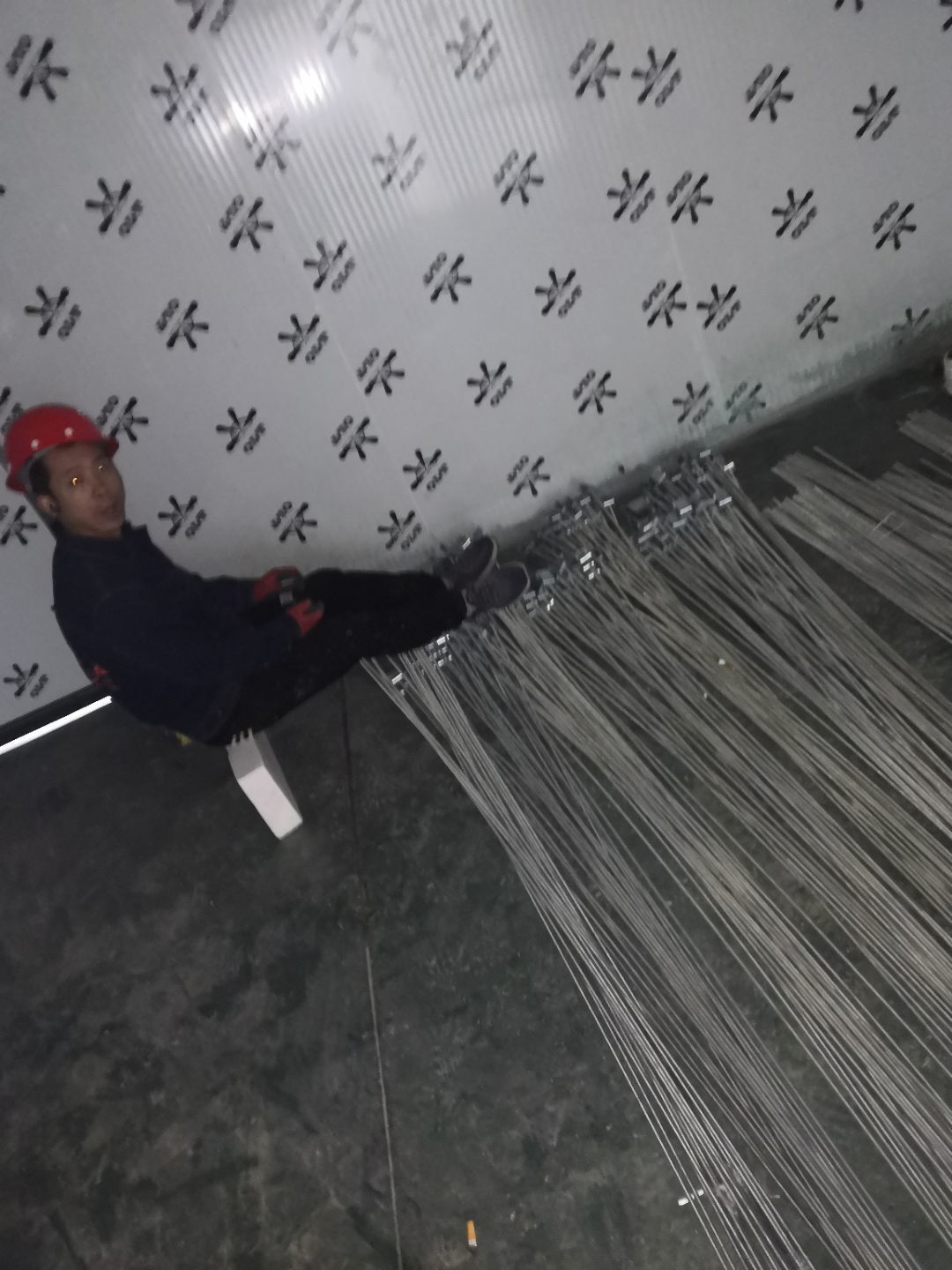 1、彩鋼打膠,拍圓?。?2、電工,裝臭氧,裝滅蠅燈,接電箱;3、接水管