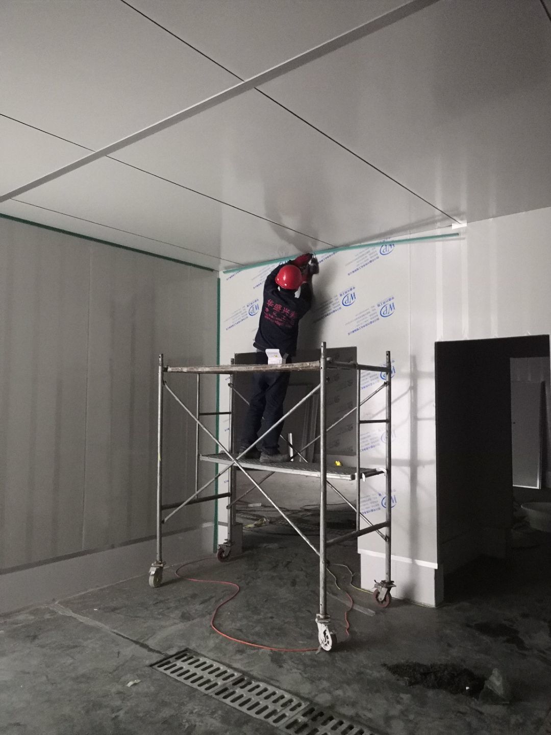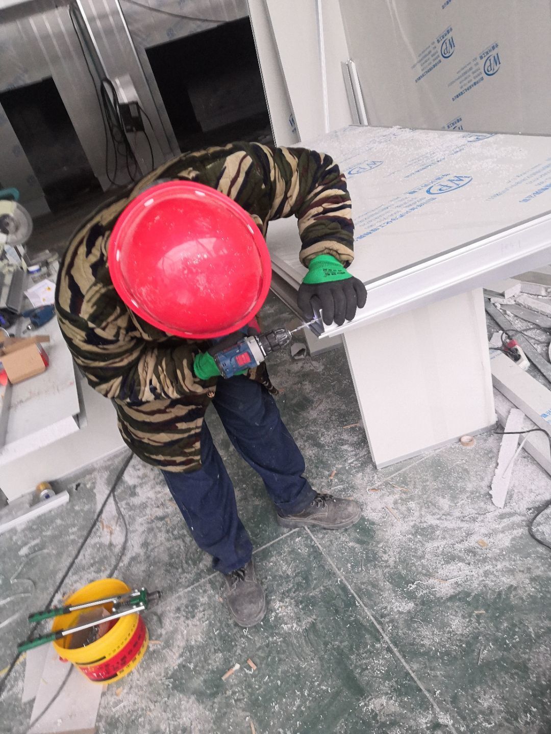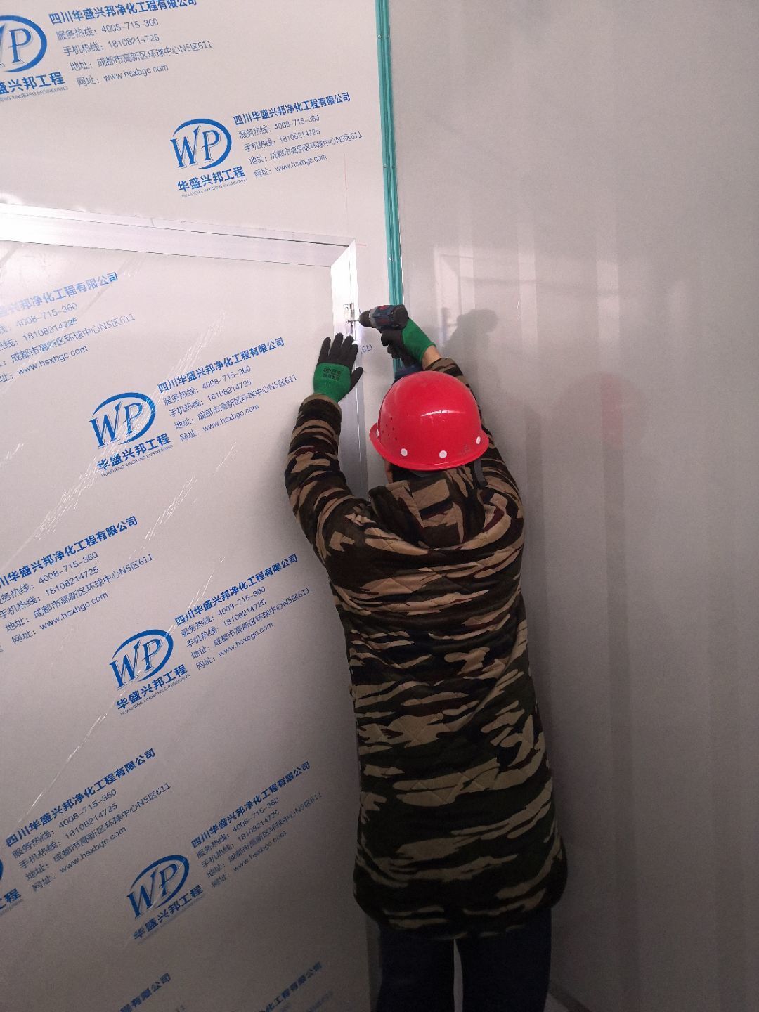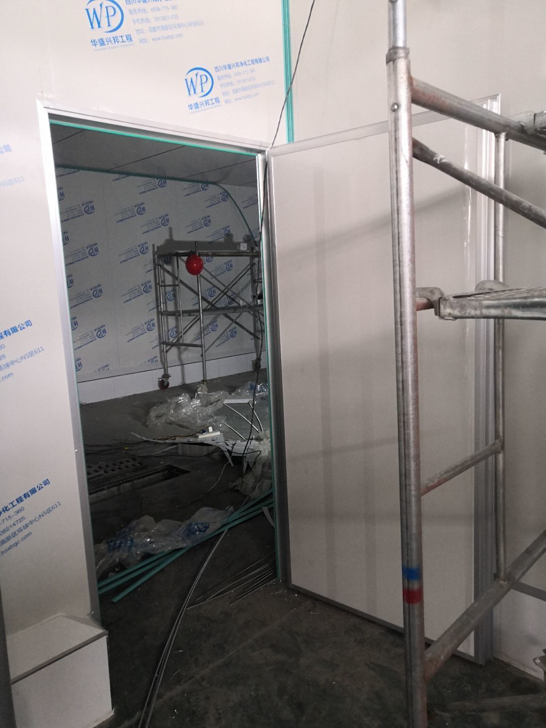 1.打膠,拍圓弧,做風淋室,裝觀察窗 2.吊三防板 3.三防板裝燈,開關,插座