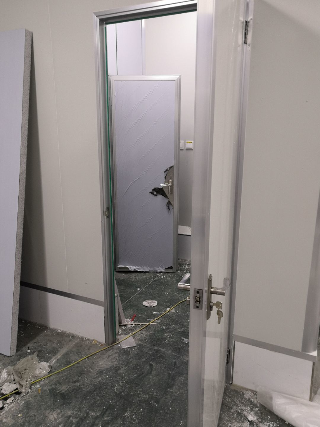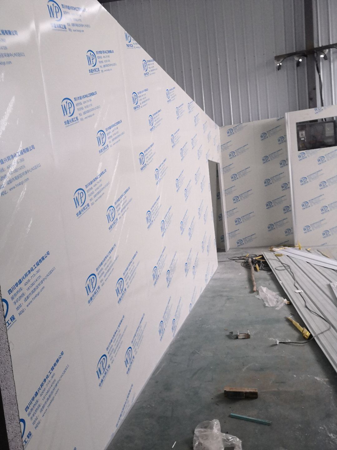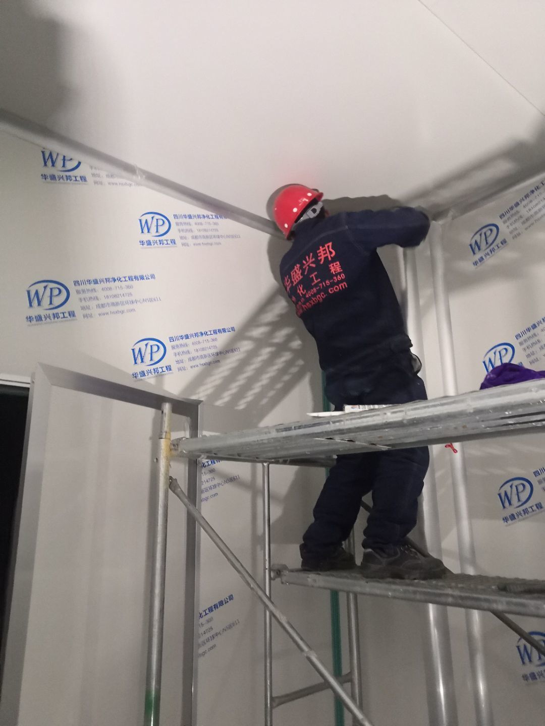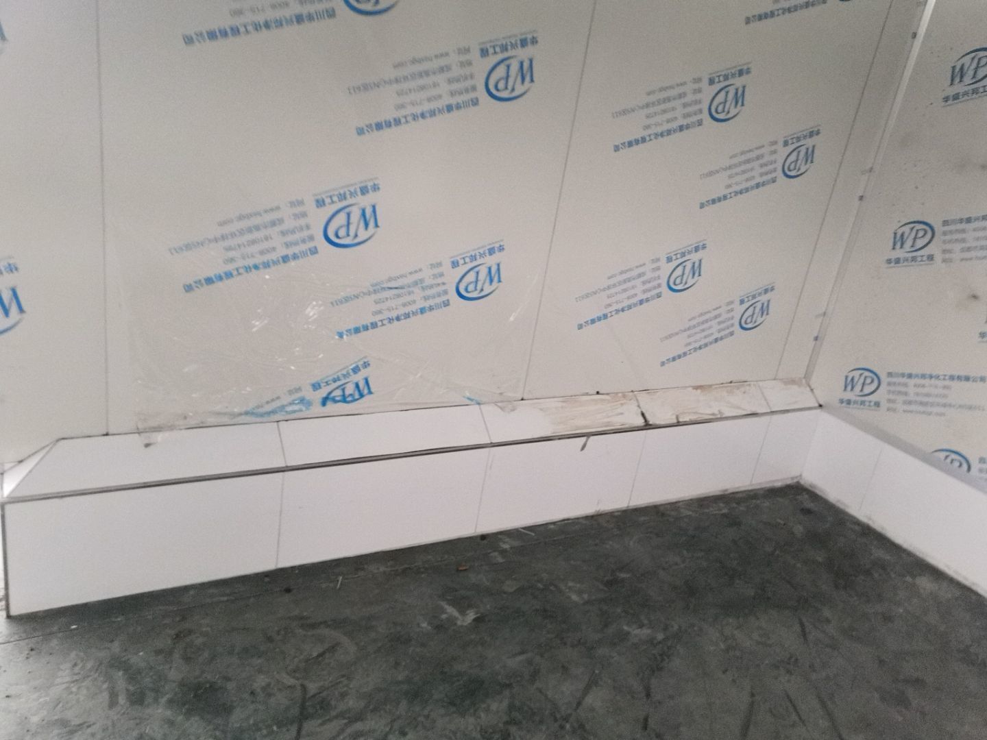 1.打膠,拍圓弧,做風淋室,裝觀察窗 2.吊三防板 3.三防板裝燈,開關,插座
