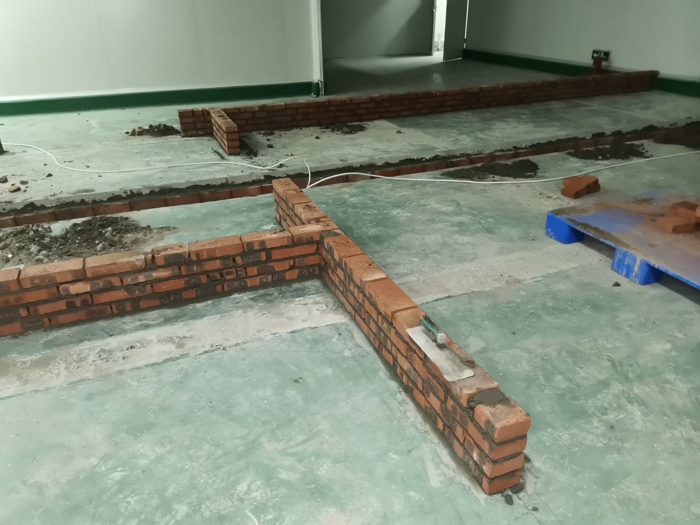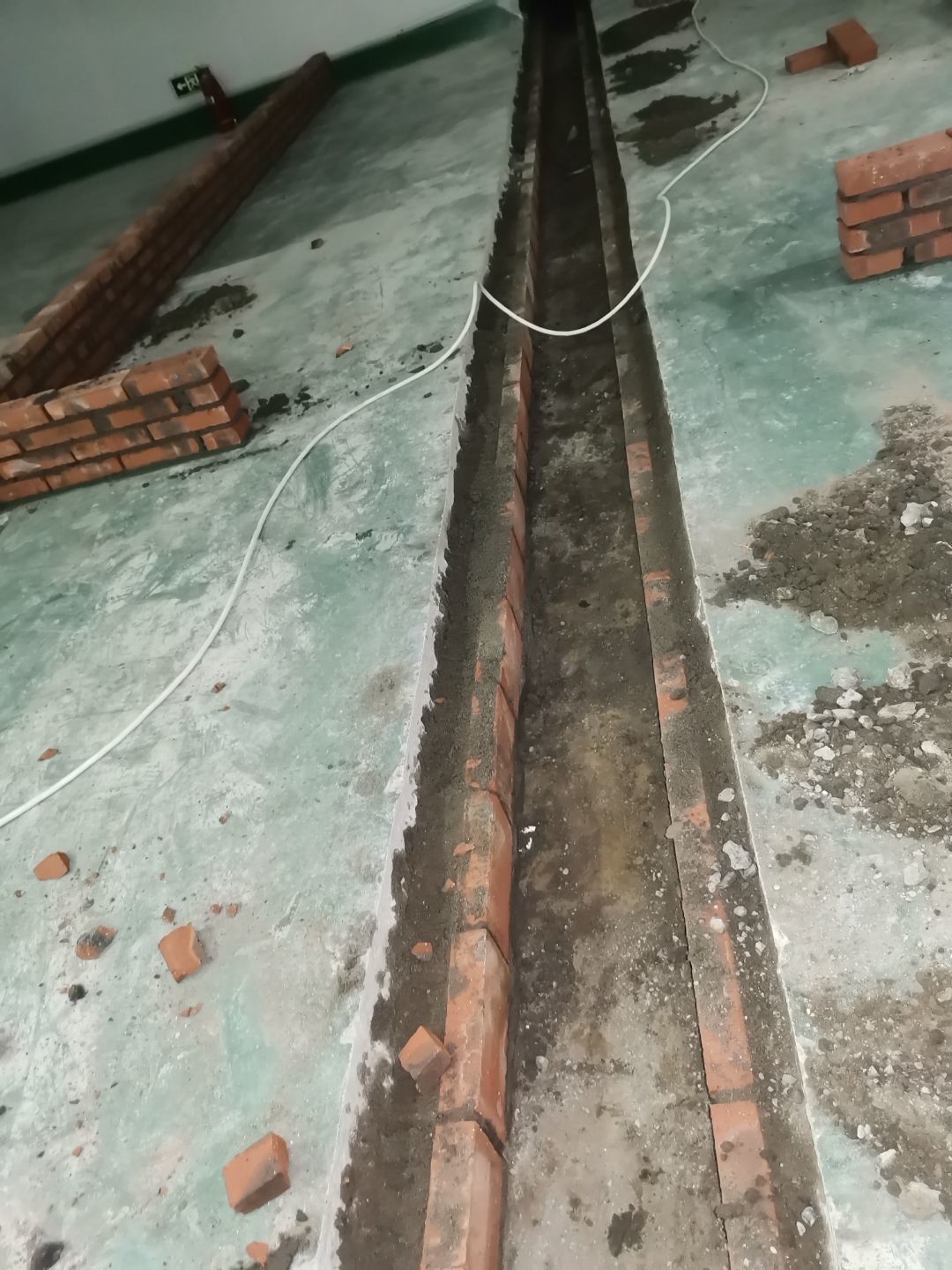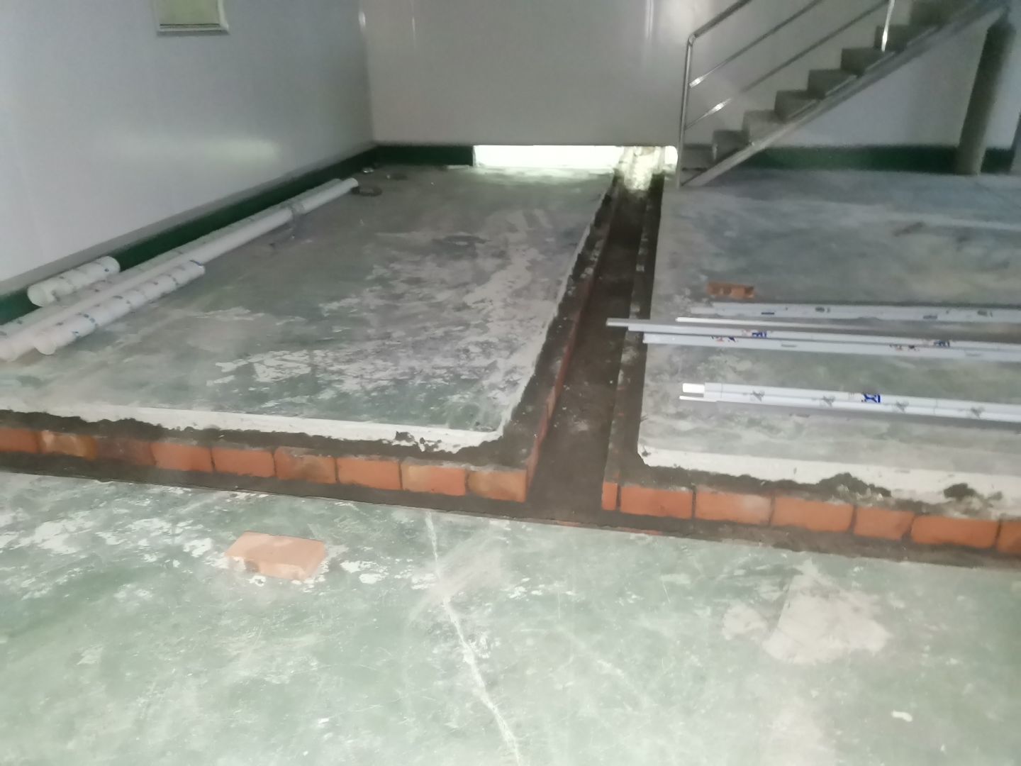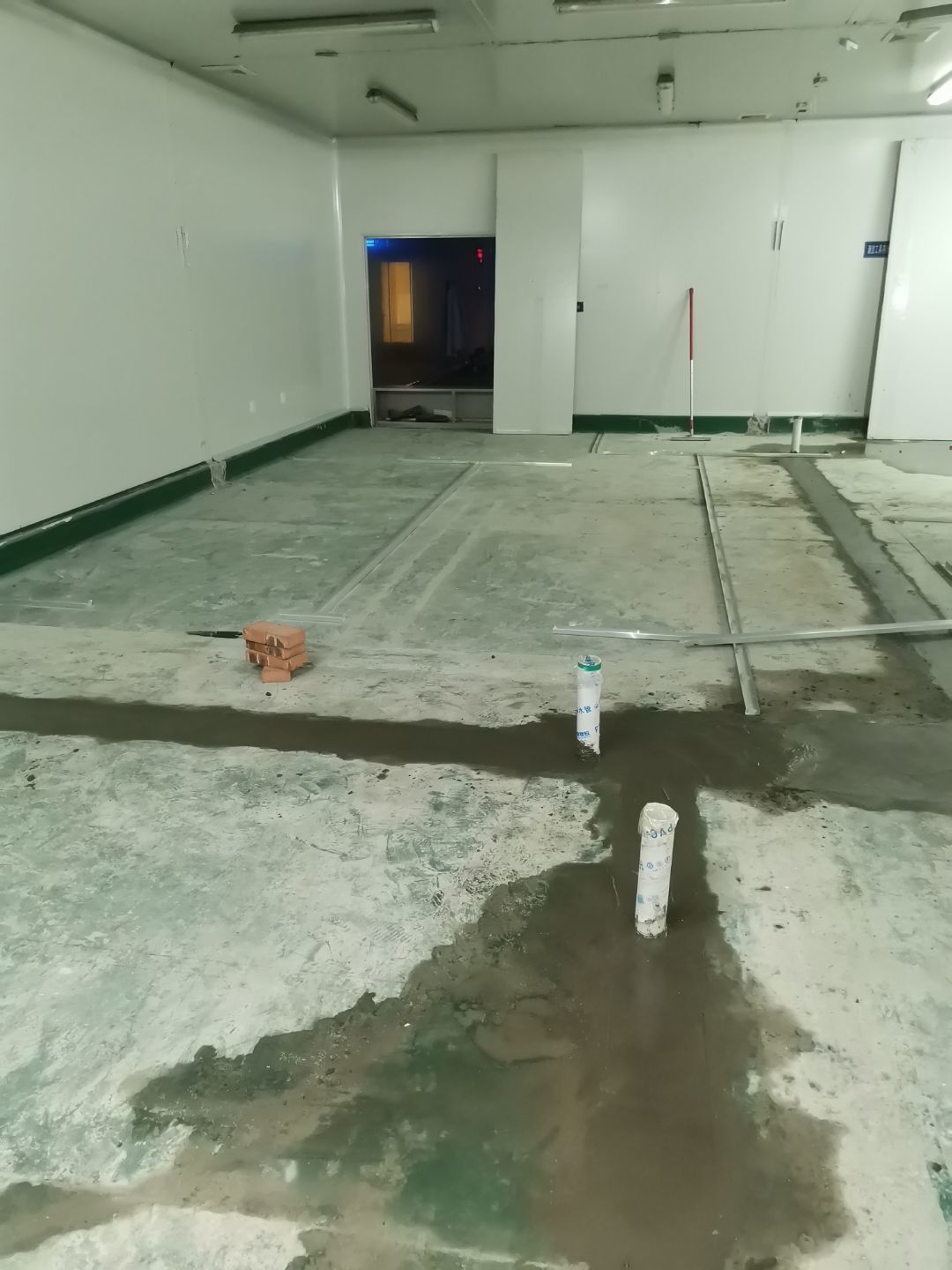 1、排水溝槽破碎100%; 2、調味間墻板拆除完成100%(新增); 3、彩鋼隔墻放線完成100%; 4、排水管道安裝完成100%; 5、排水溝砌筑完成60%,擋水墻砌筑完成100%; 6、場地清理。