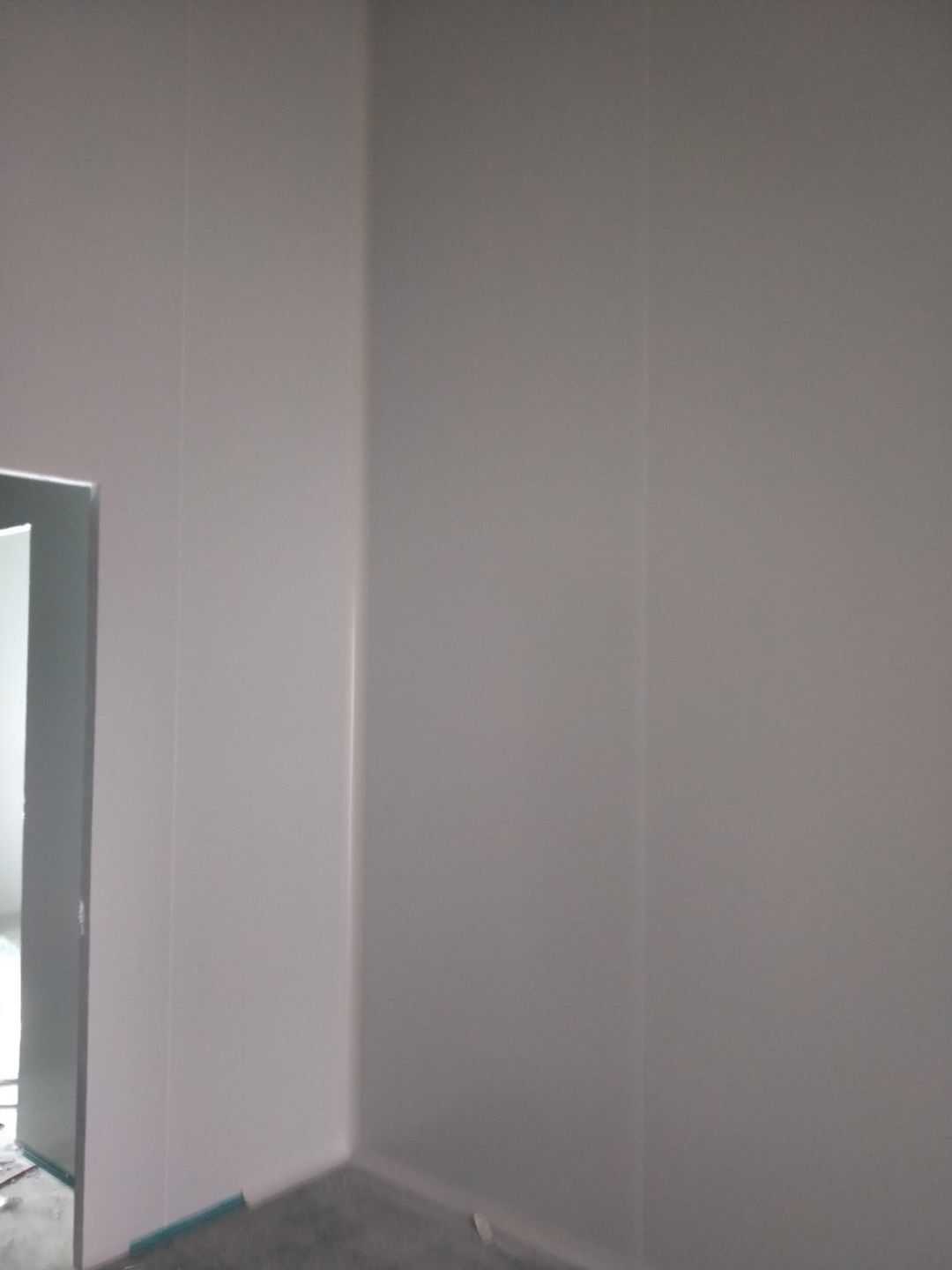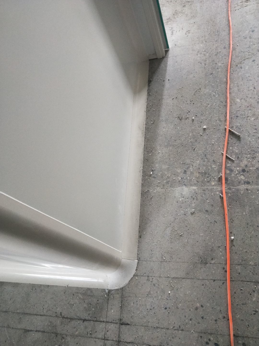 彩鋼立板完成,開始做門,拍圓弧撕膜打膠。 土建邊角處理