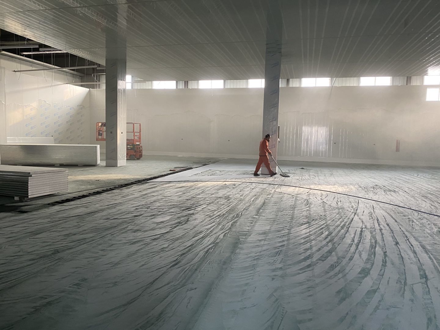 1,排水溝貼磚完成60米。 2,擋水墻砌筑完成80米。抹灰完成40米。 3,鋼平臺隊伍完成柱子材料下料,預埋件安裝澆筑混凝土。 4,凍庫防水完成百分之九十。
