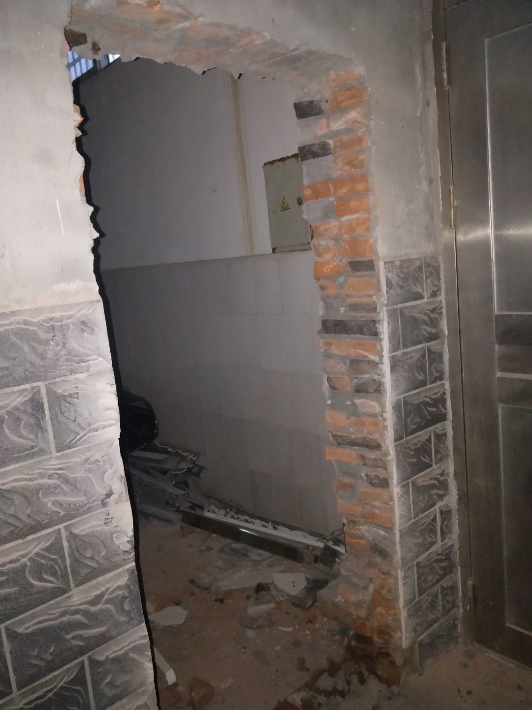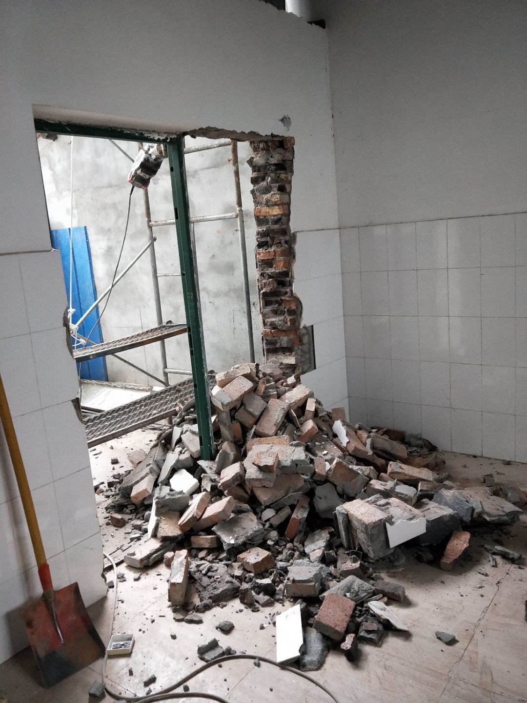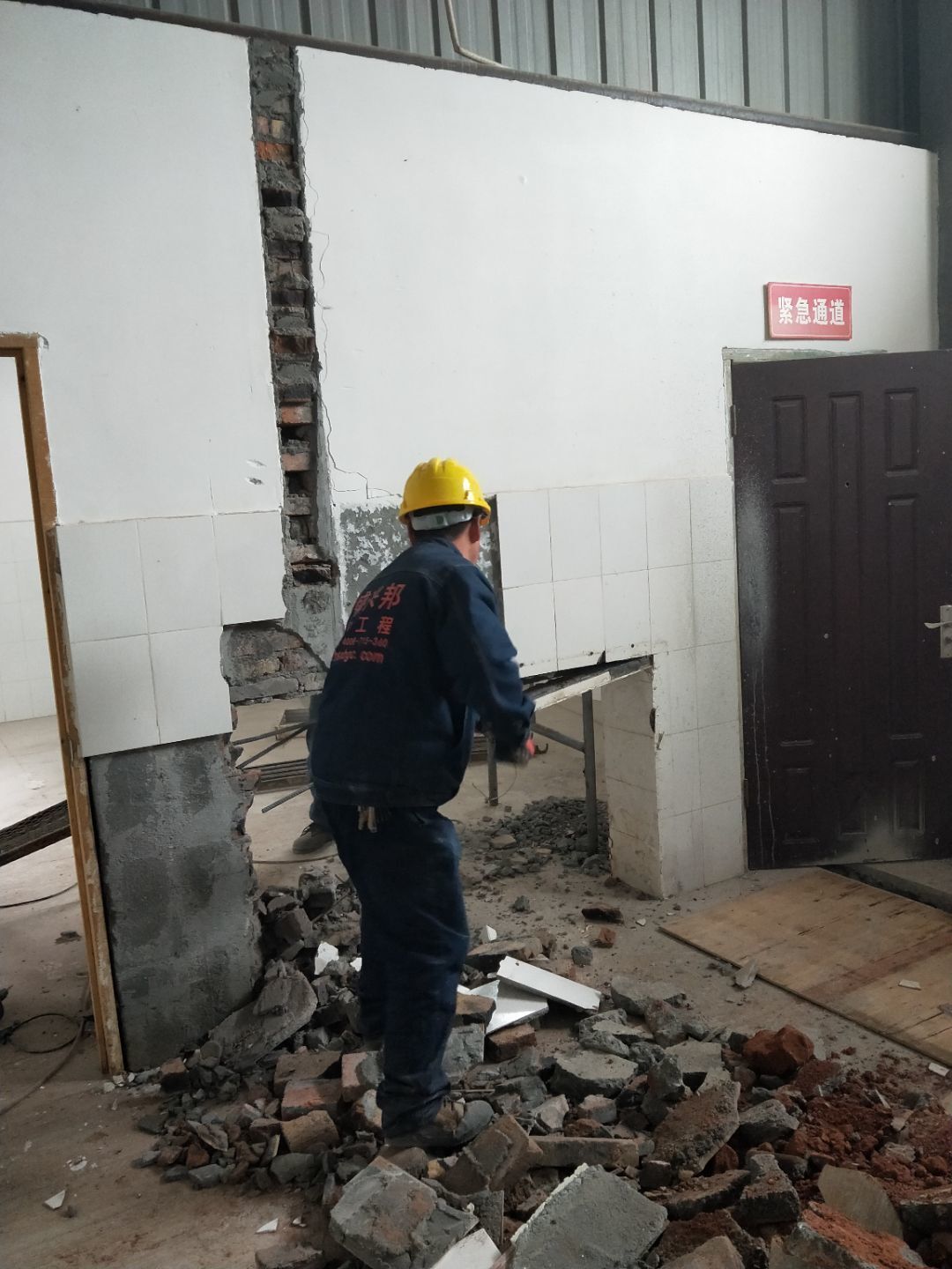 排水溝焊接完成90%,開門洞完成100%,修補門邊完成5%,建渣清理
