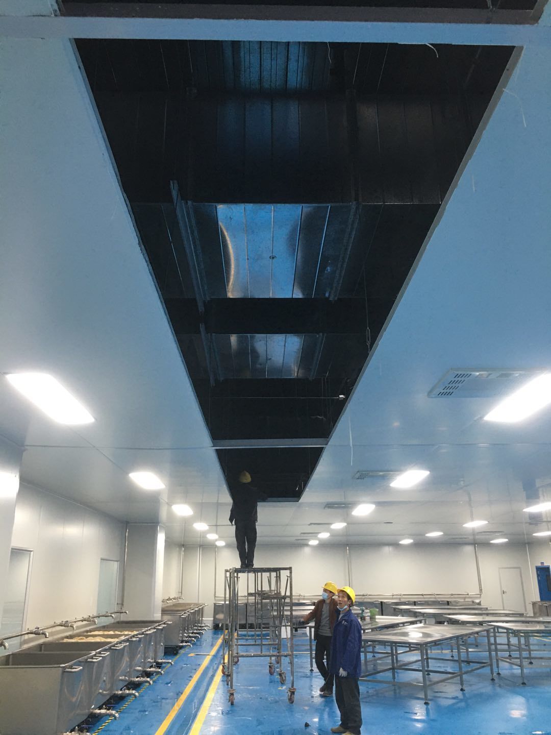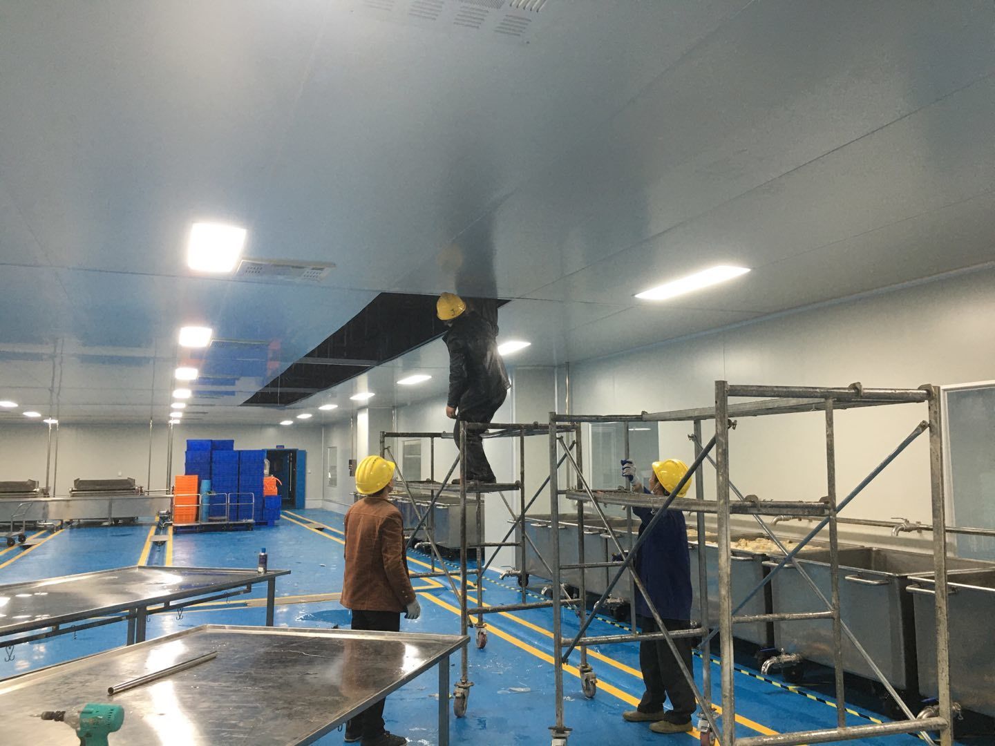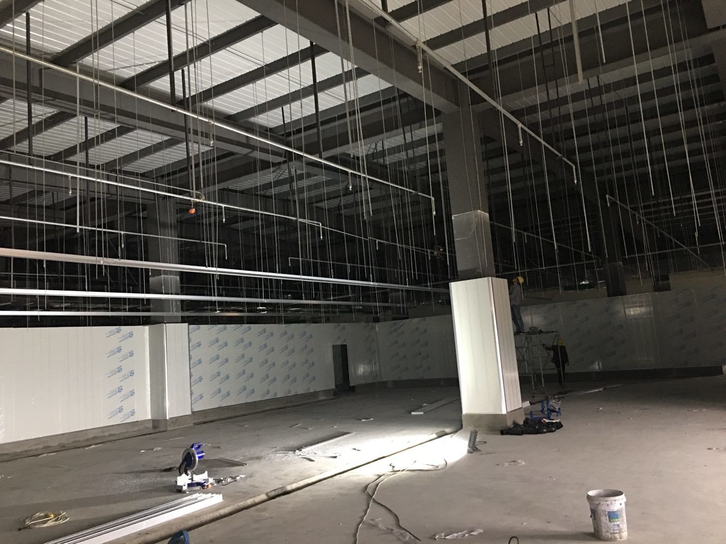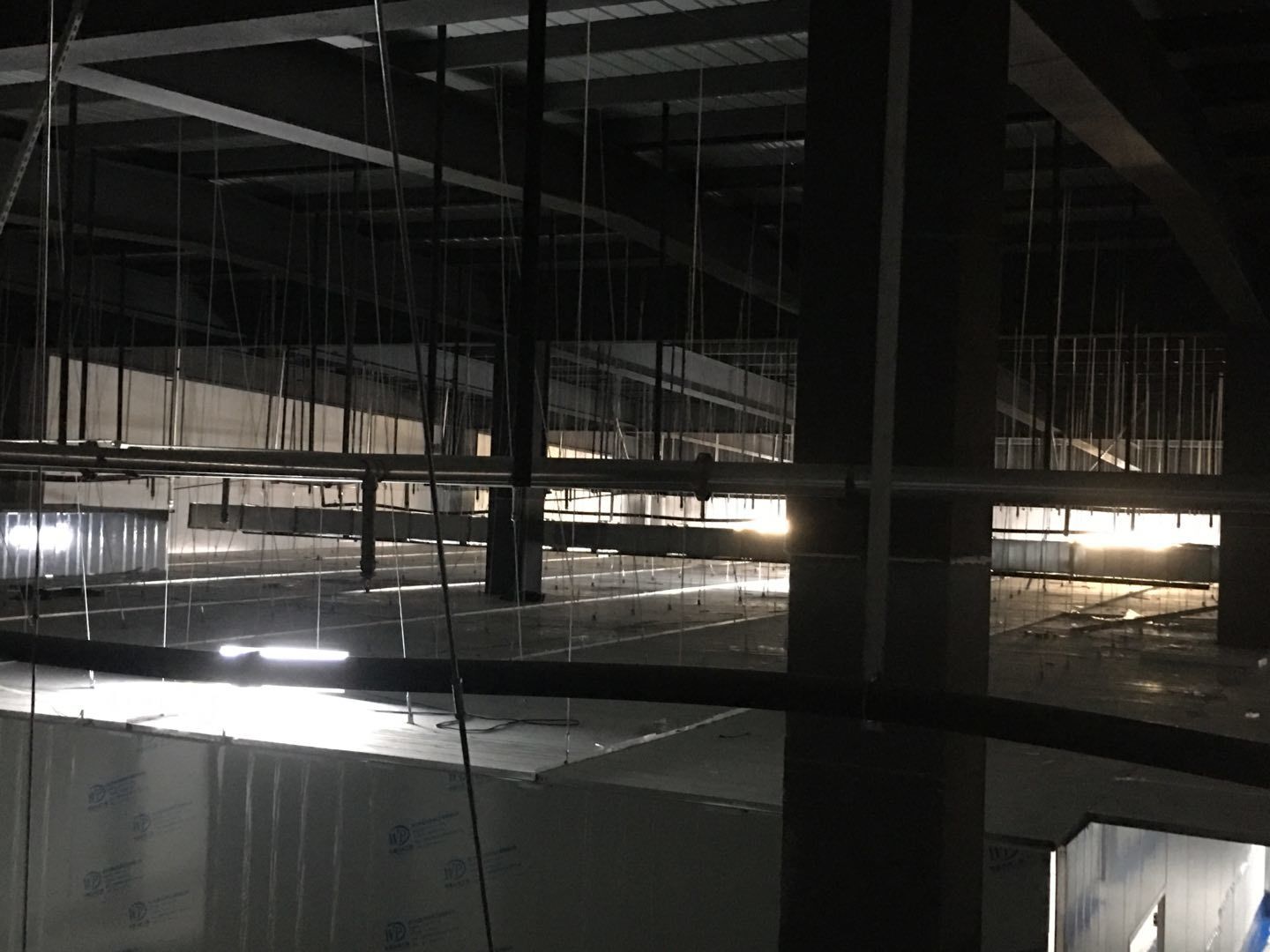 1:彩板班組~收尾工作進(jìn)度50%左右。2:空調(diào)班組~主要設(shè)備及風(fēng)道均已吊裝完成。剩余工作:主機(jī)配管,配線調(diào)試,安裝風(fēng)口。3:水電班組-空調(diào)電源配線完成約35%,剩余工作:動(dòng)力電施工,吊頂?shù)浇o水點(diǎn)位的不銹鋼管施工,配電箱安裝調(diào)試。