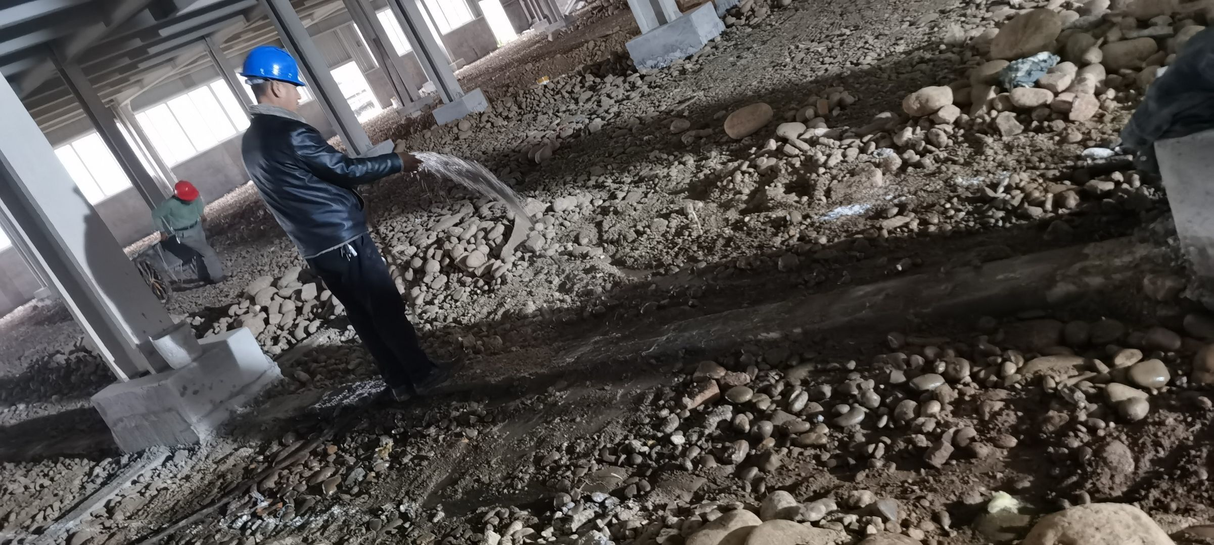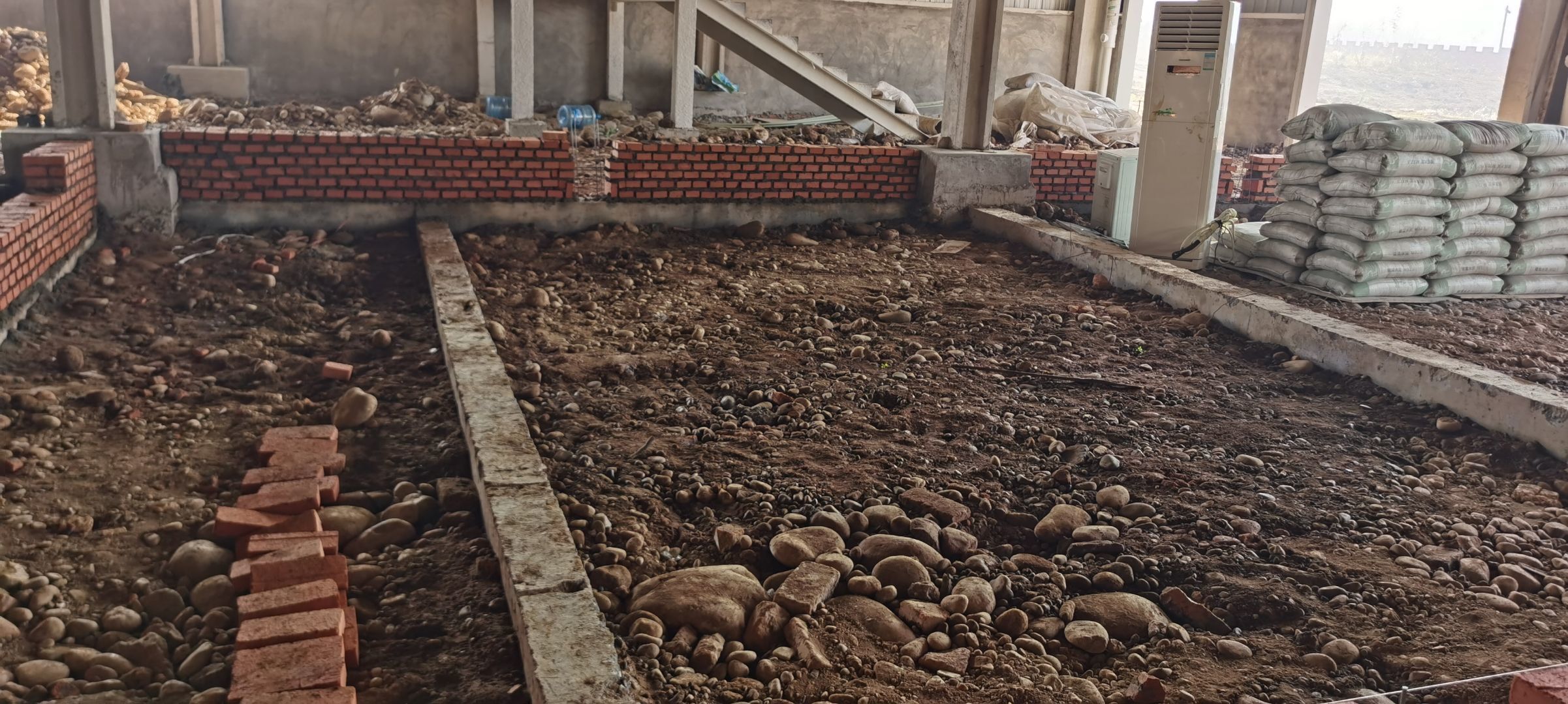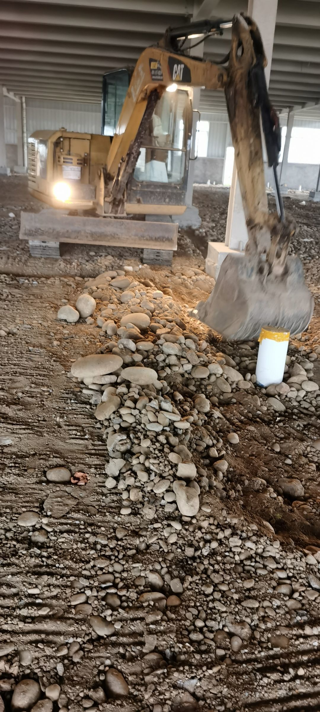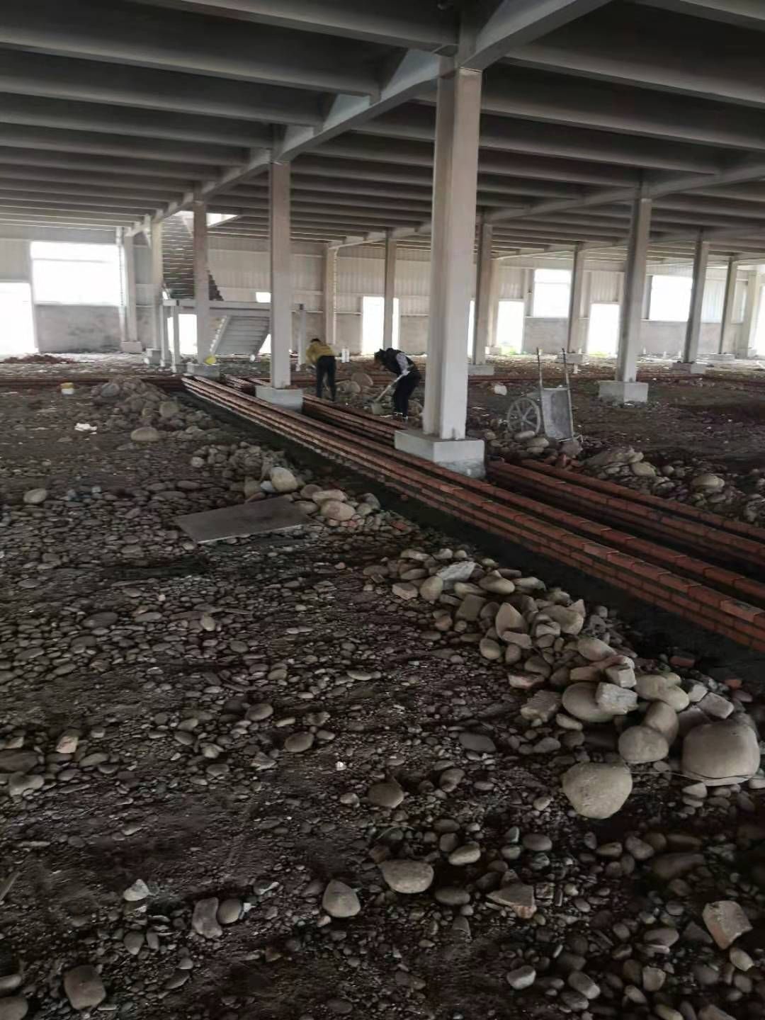 現場挖機壓地面,排水溝開挖