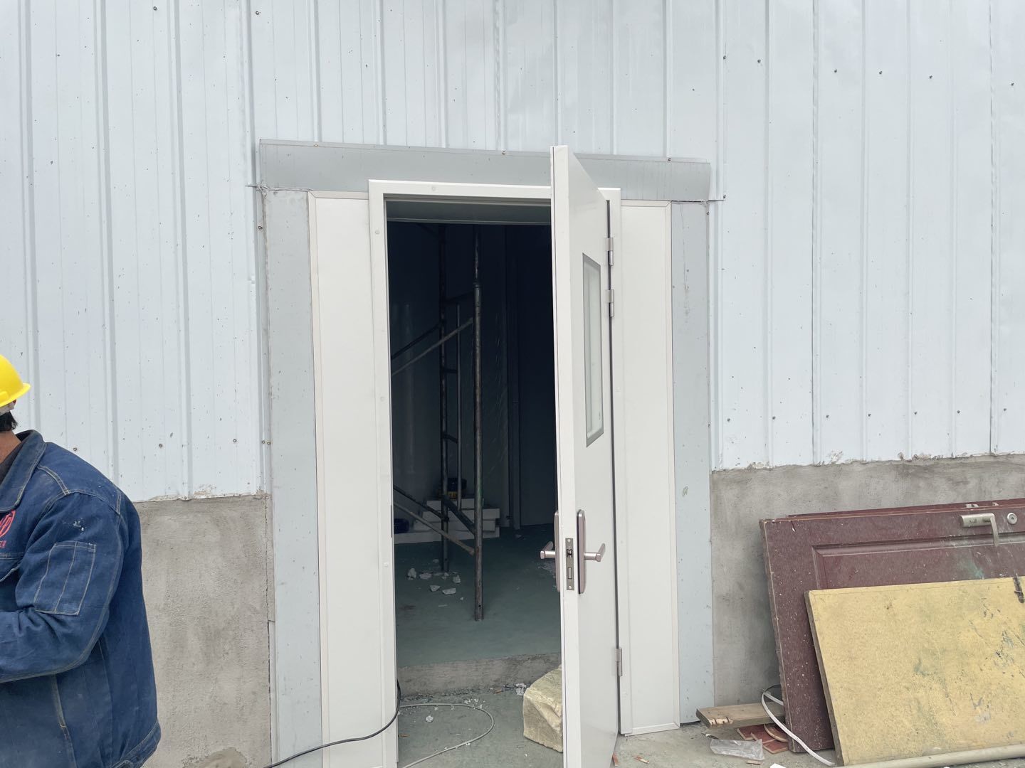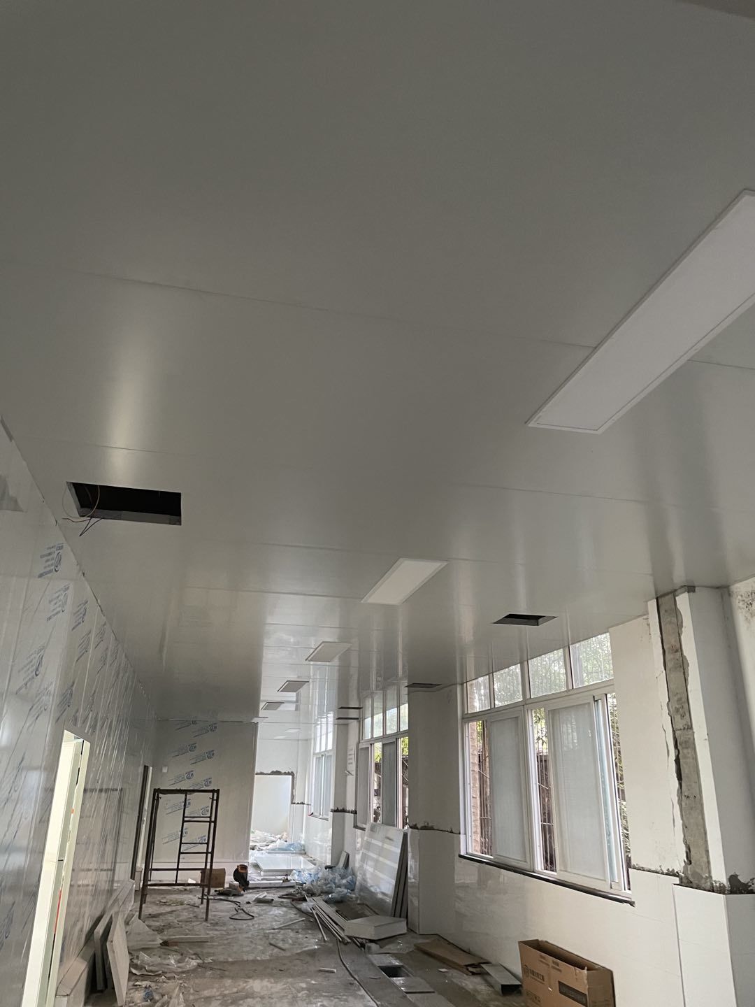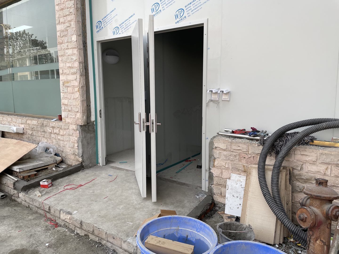 建渣清理完工,燈以及電路完成,鋼制門單門安裝完成。板材進場,鋼絲繩掛完。