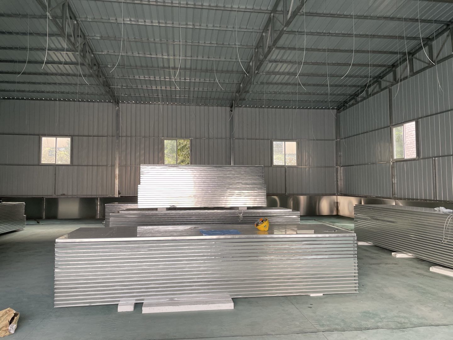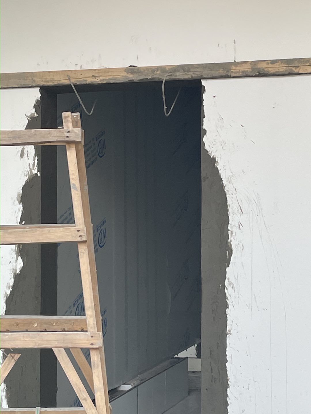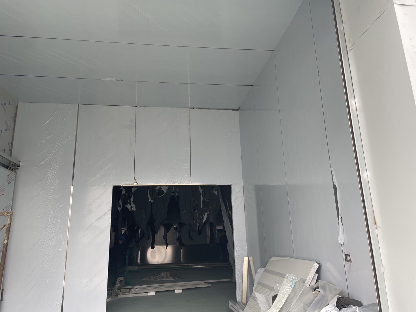 建渣清理完工,燈以及電路完成,鋼制門單門安裝完成。板材進場,鋼絲繩掛完。