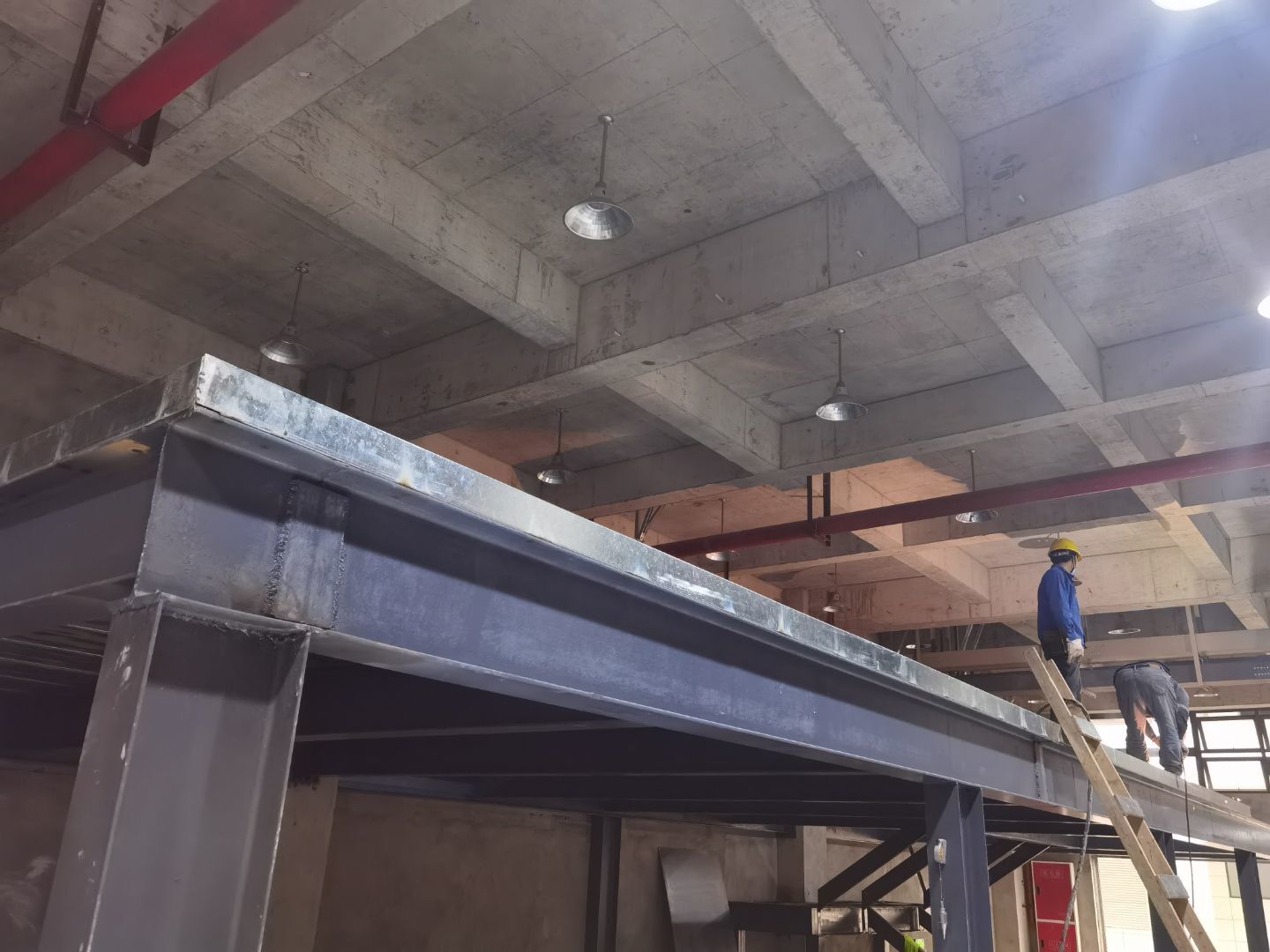 1一層鋼構打商混 2一層鋼構下衛生間砌磚抹灰 3三層衛生間貼瓷磚 4烘房內抹灰 5空調 風管 材料 人員到場