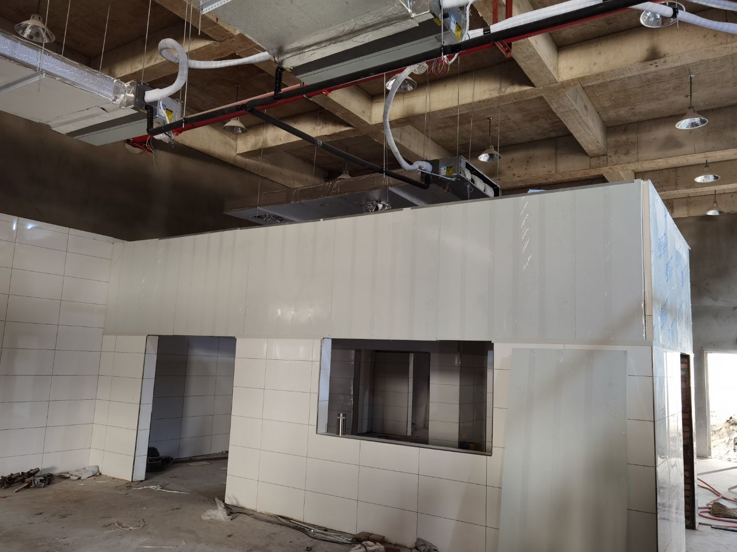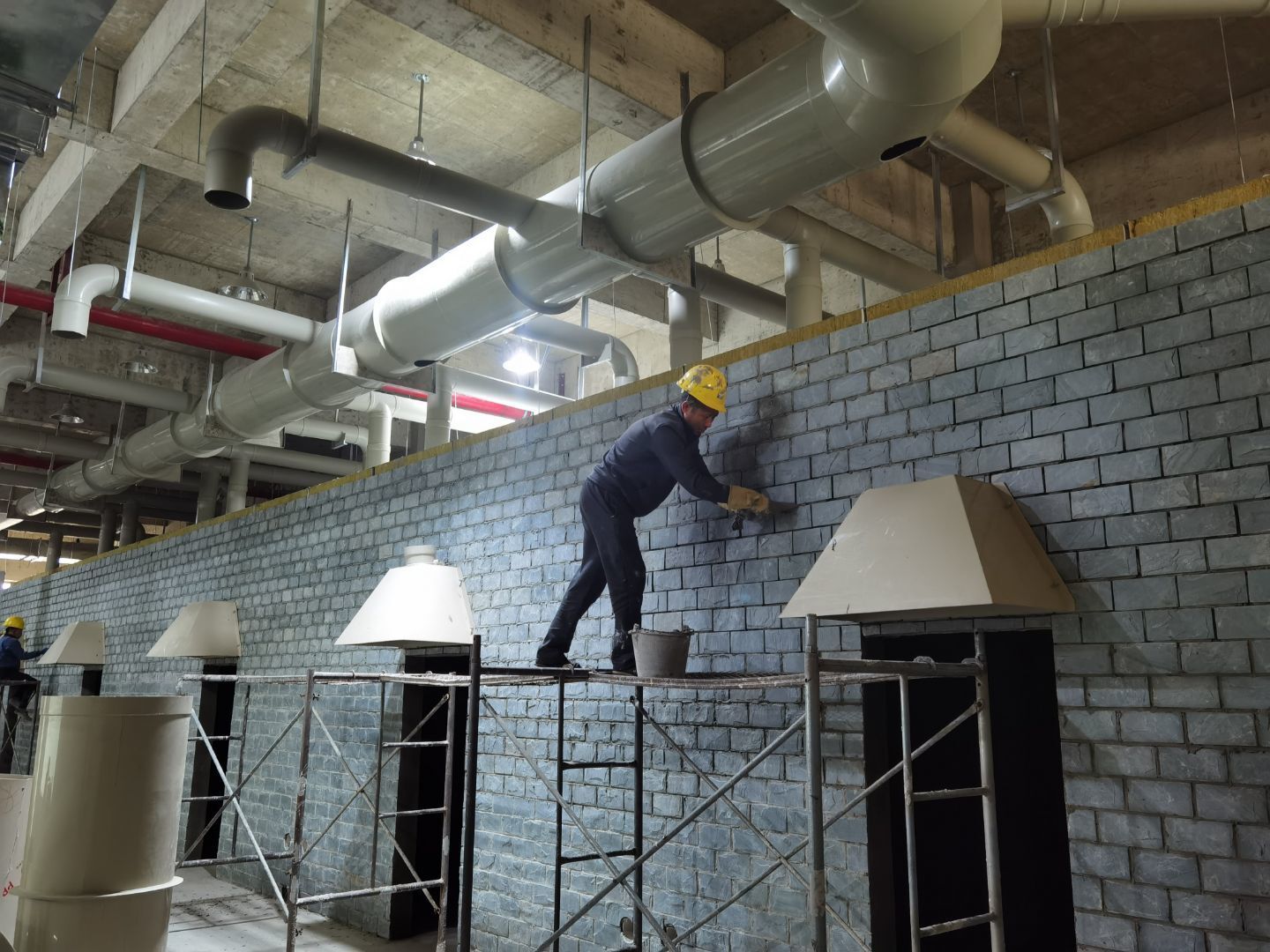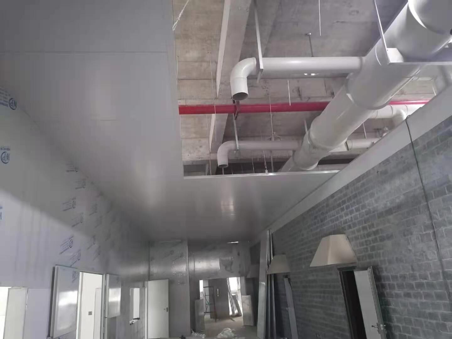 1.磚墻貼磚 2.風機吊裝