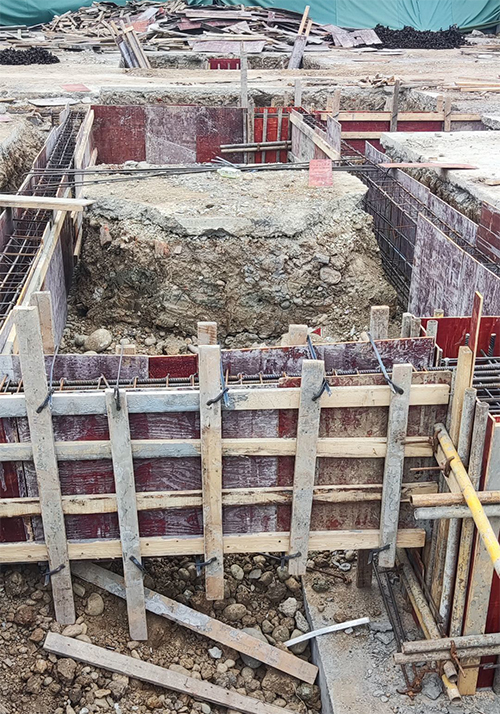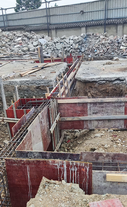 土建砌筑配電室外墻和打樓梯混凝土立柱。