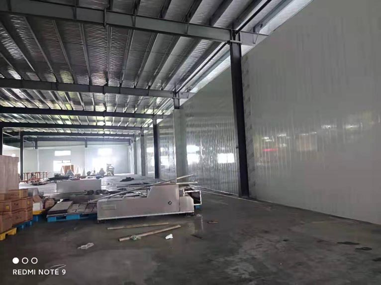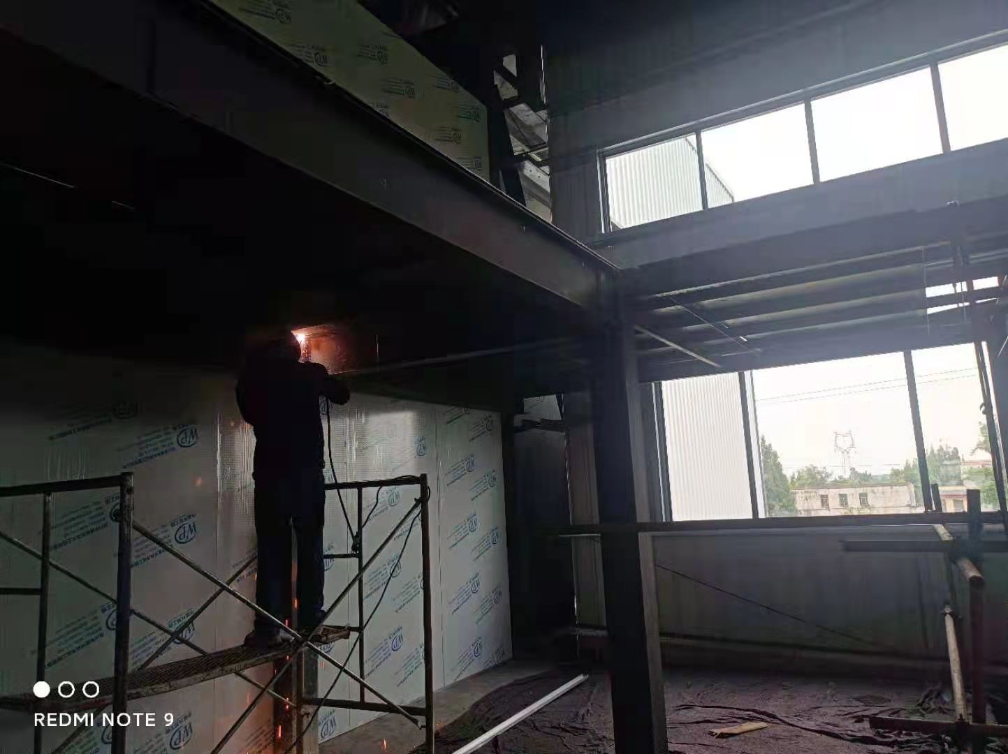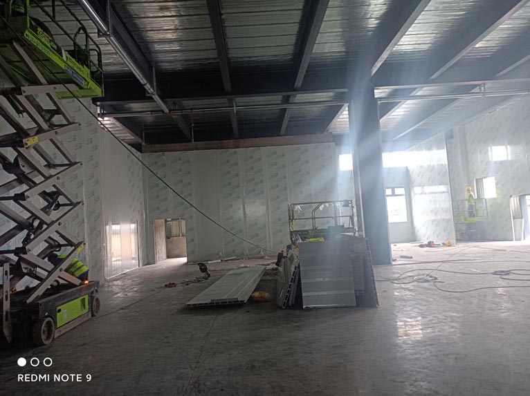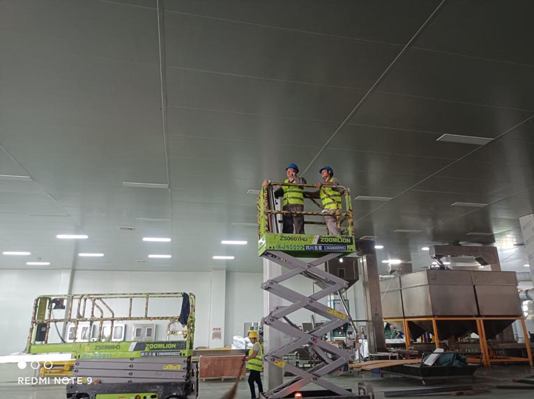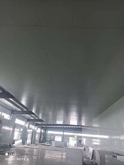 彩鋼板施工,兩個廠房連接部分頂板施工