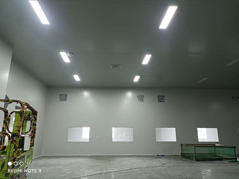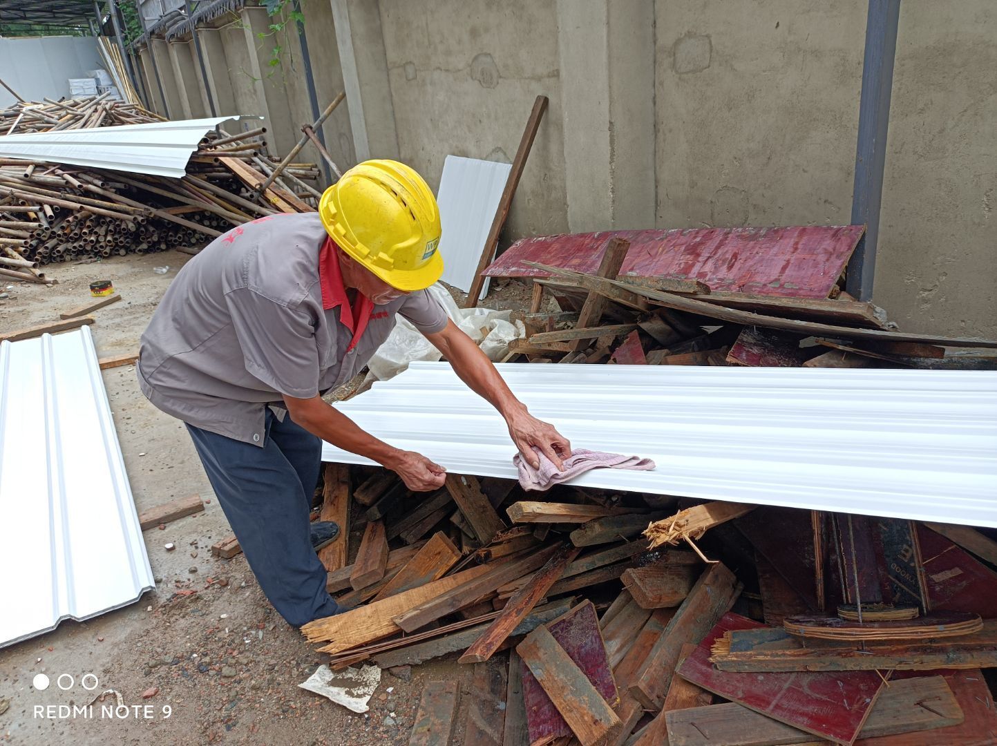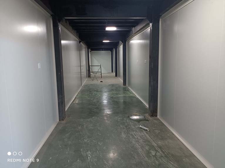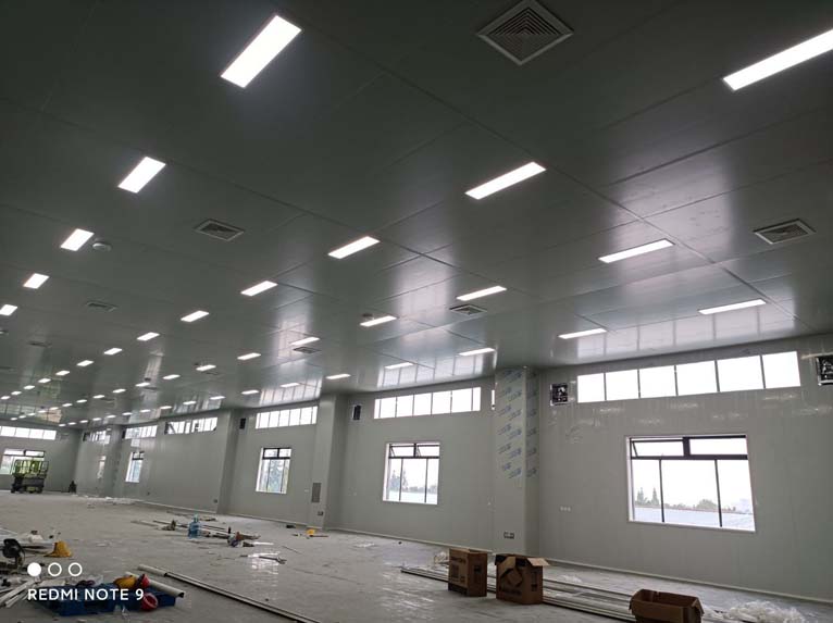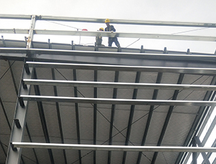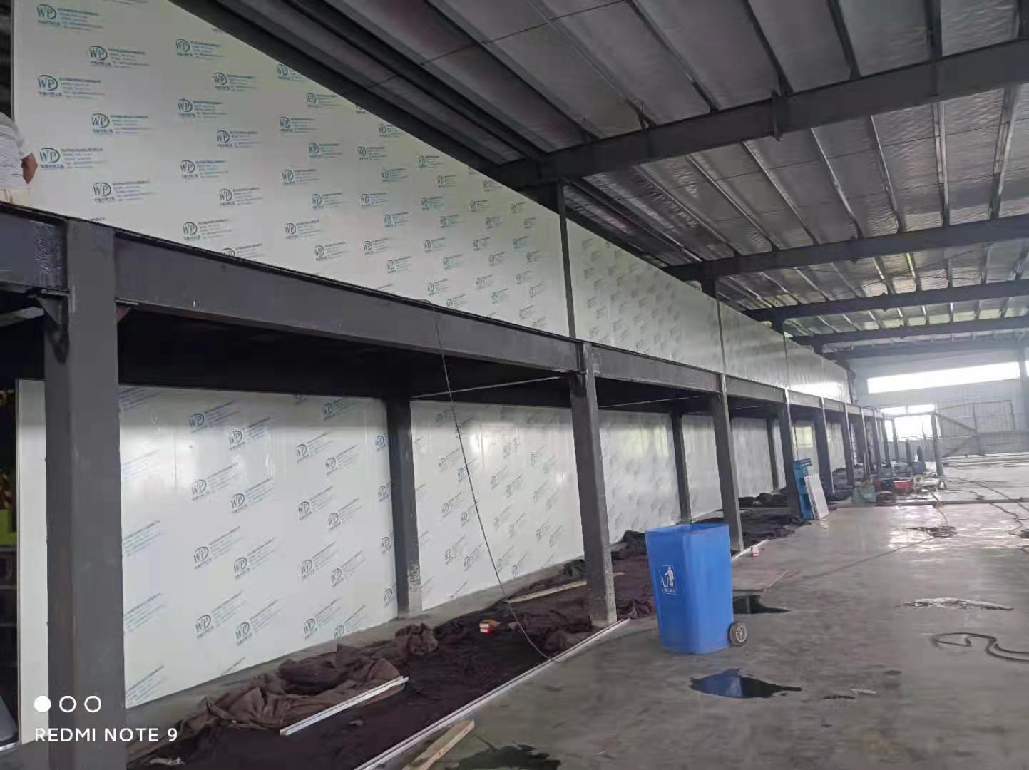 彩鋼板施工,兩個廠房連接部分頂板施工