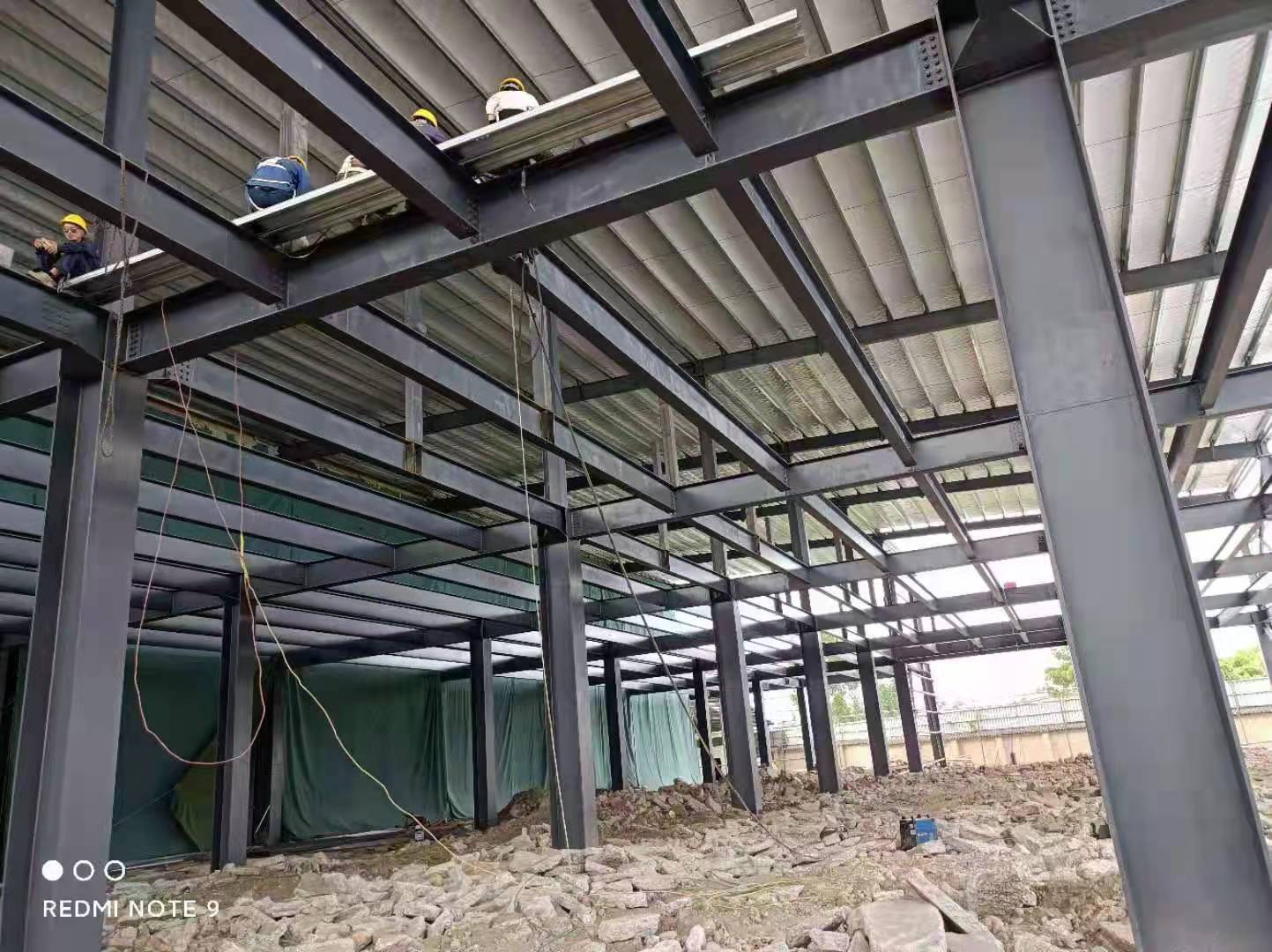 鋼構(gòu)室外雨棚地板矩管完成95%