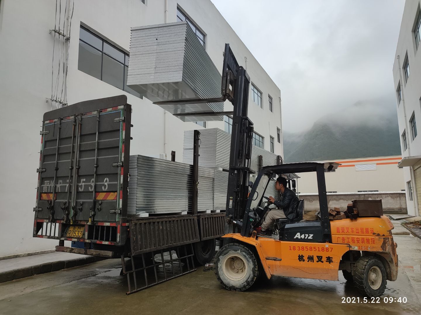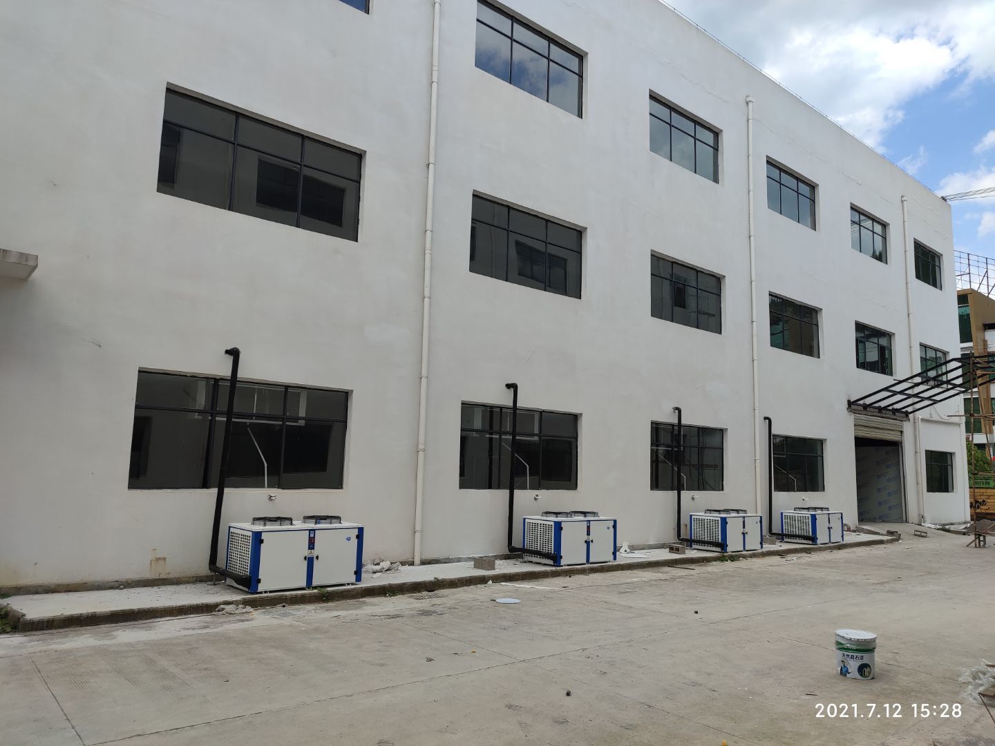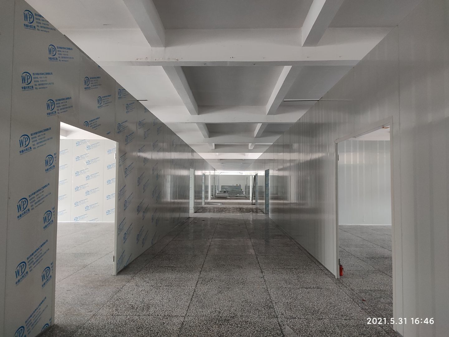 1,擋水墻完成; 2,固化地坪打磨完成近一半; 3,隔斷彩板到貨三分之一。