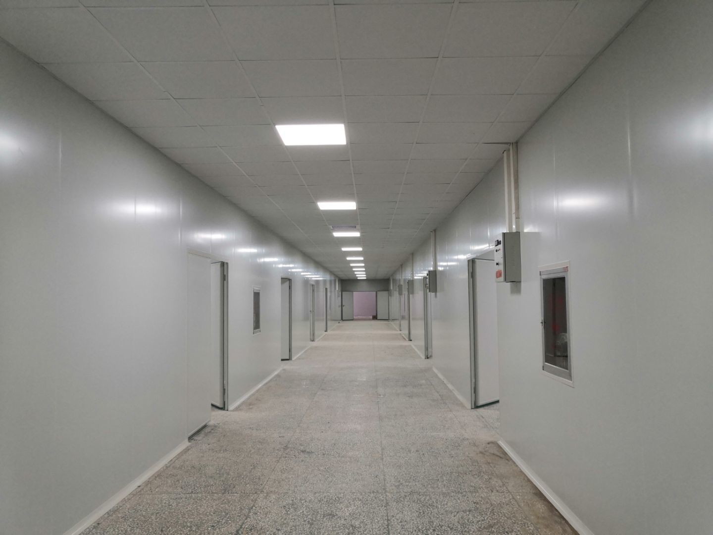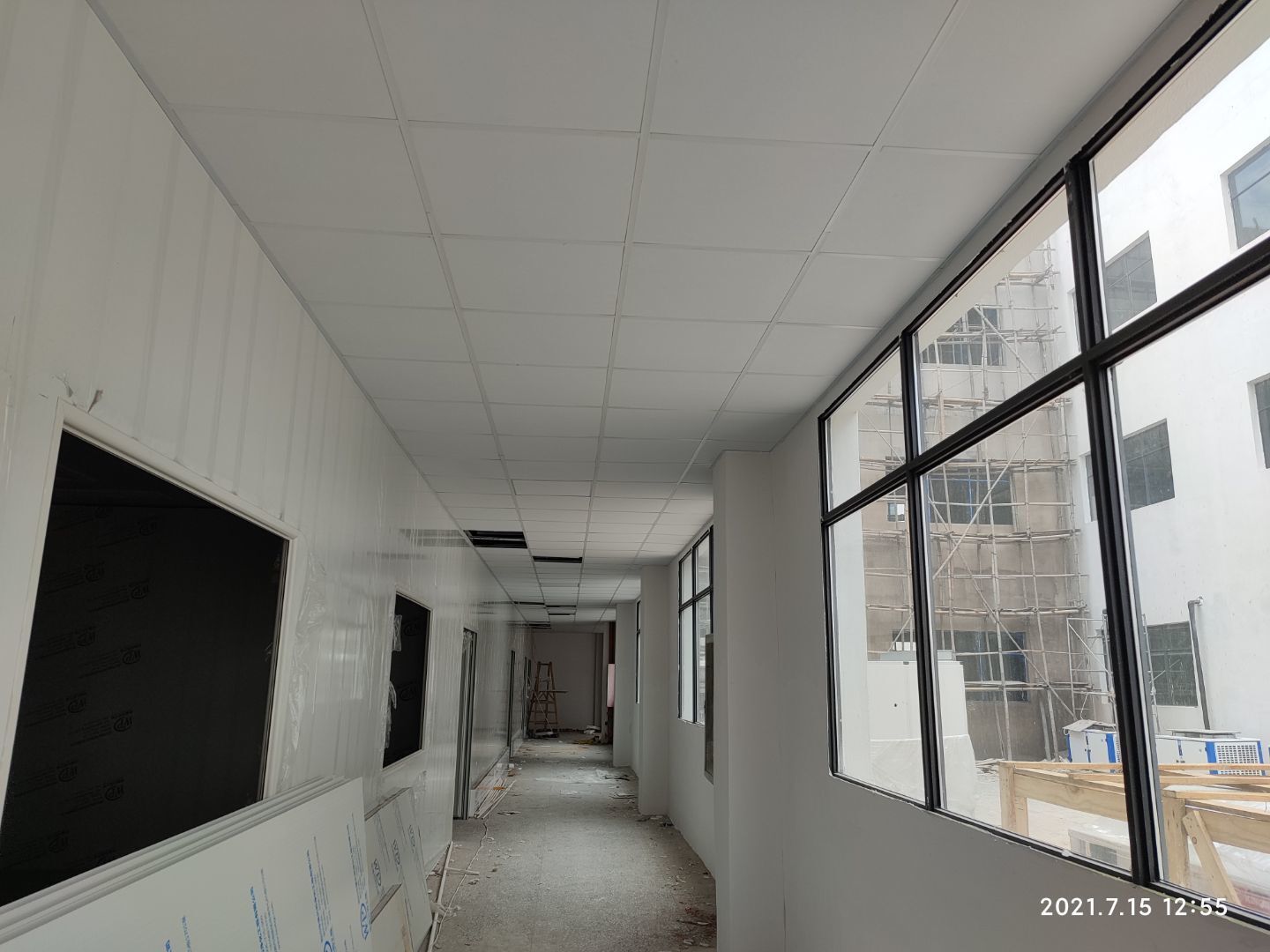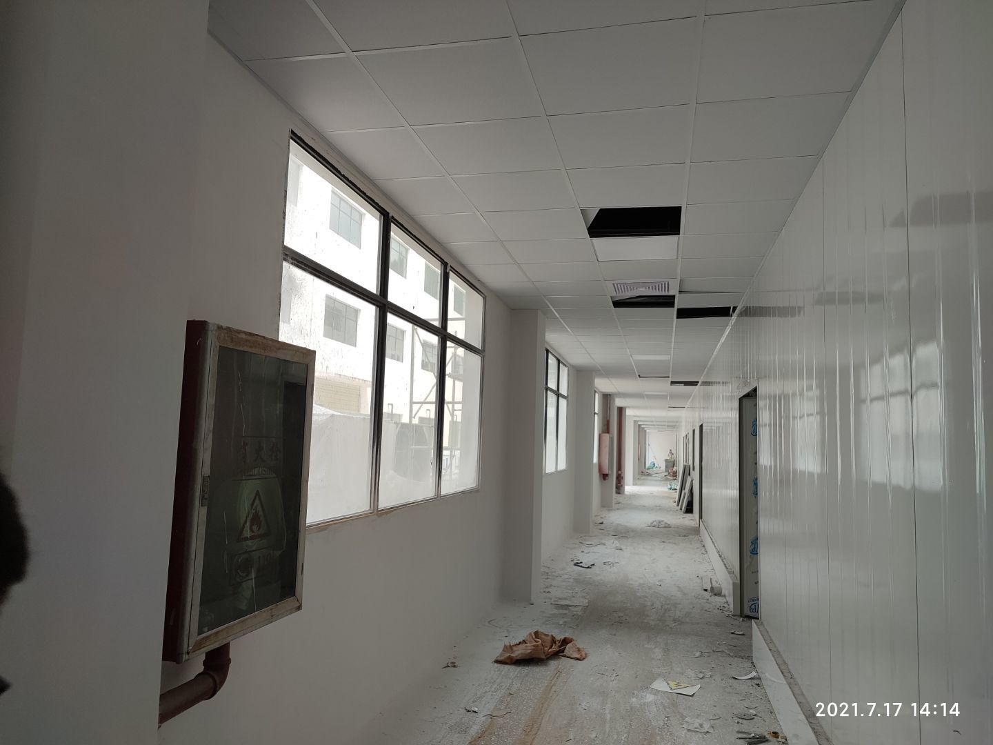 1,乳膠漆施工完成90% 2,布管穿線,燈具,插座安裝完成90% 3,風淋室制作安裝完成90%