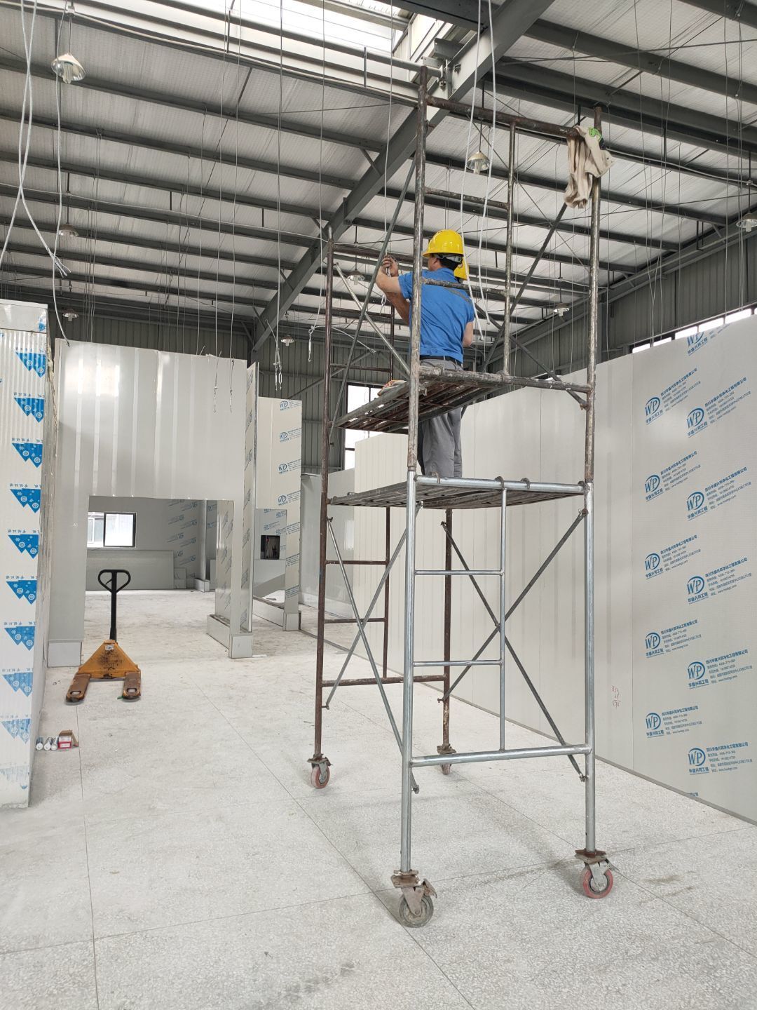 彩鋼板完成至75%,水電開始安裝