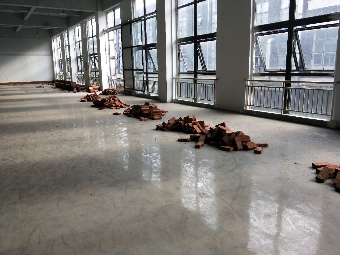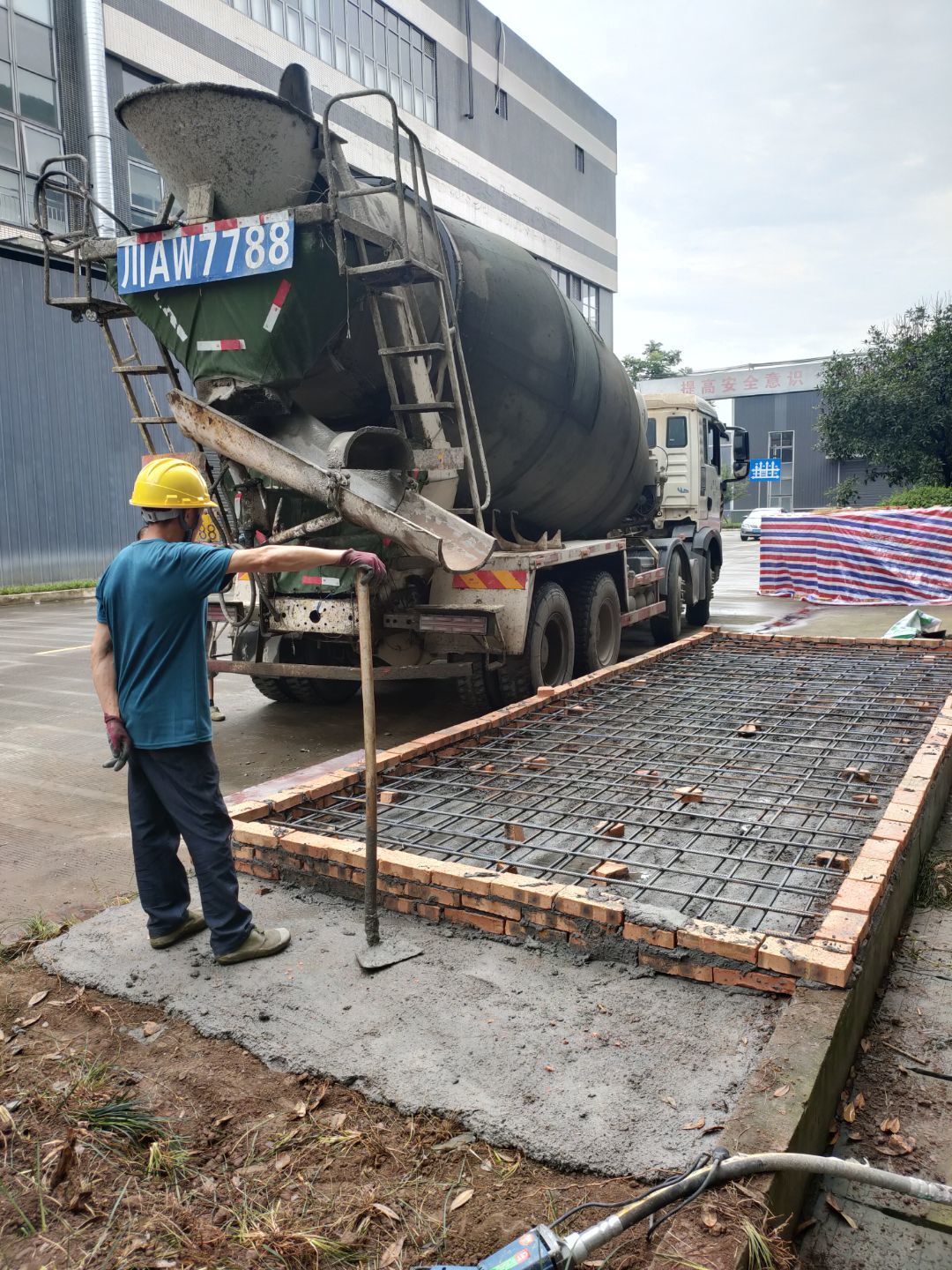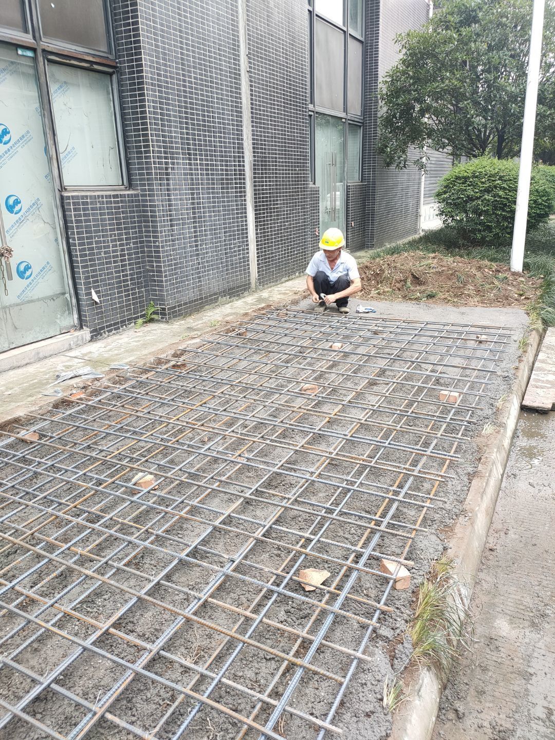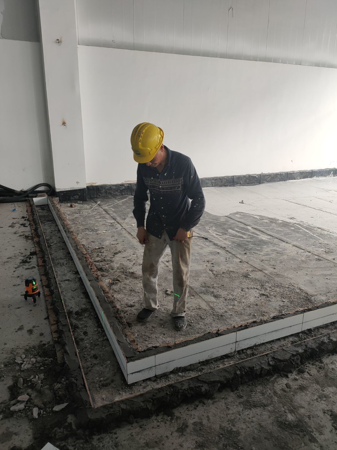 材料上樓,擋水墻砌筑