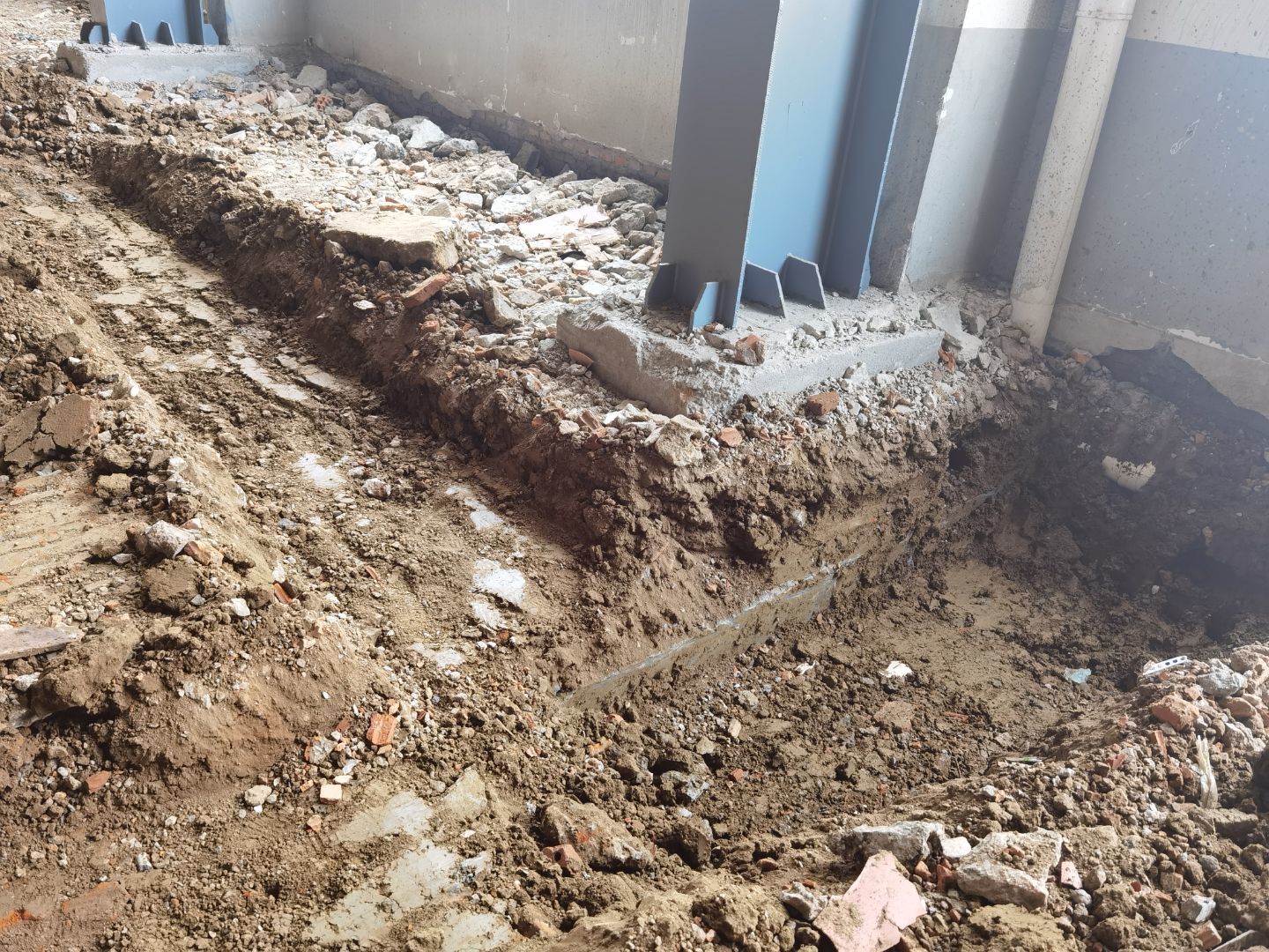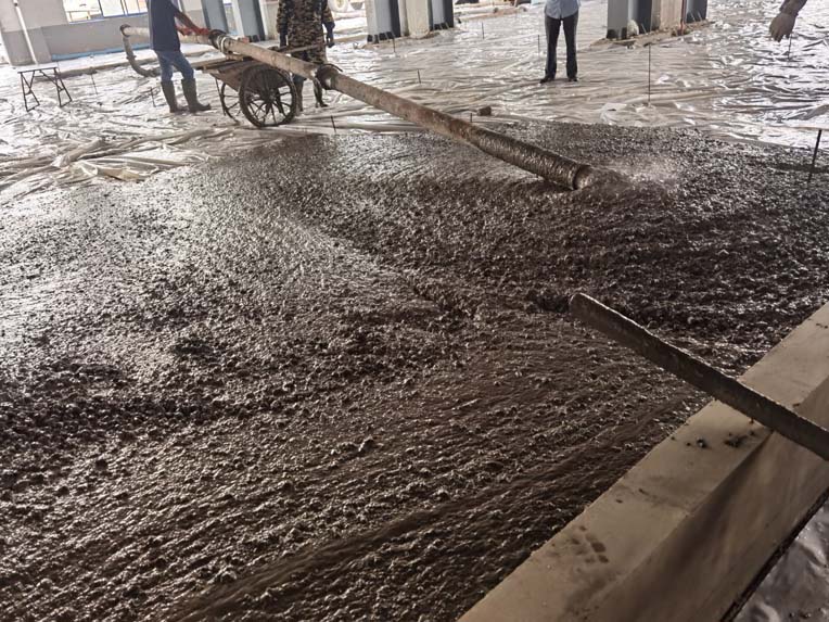 今日施工內容 1,室外混凝土澆筑 2, 二層監控安裝布線 3,室內工藝水開始施工 4,工藝設備布線放線 5,樓梯彩板圓弧收尾 6,電纜敷設 配電箱壓頭 7,一二樓煙感安裝 8,二樓鋁扣板邊角鋁施工 9,一層彩板收尾 打膠 10,室外地面污水管清挖