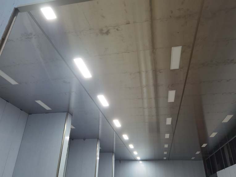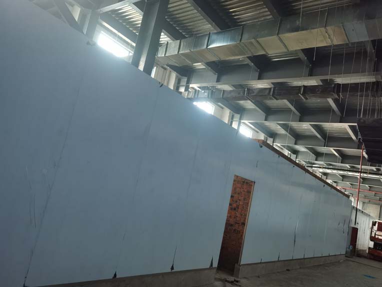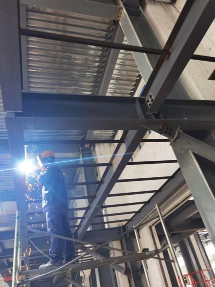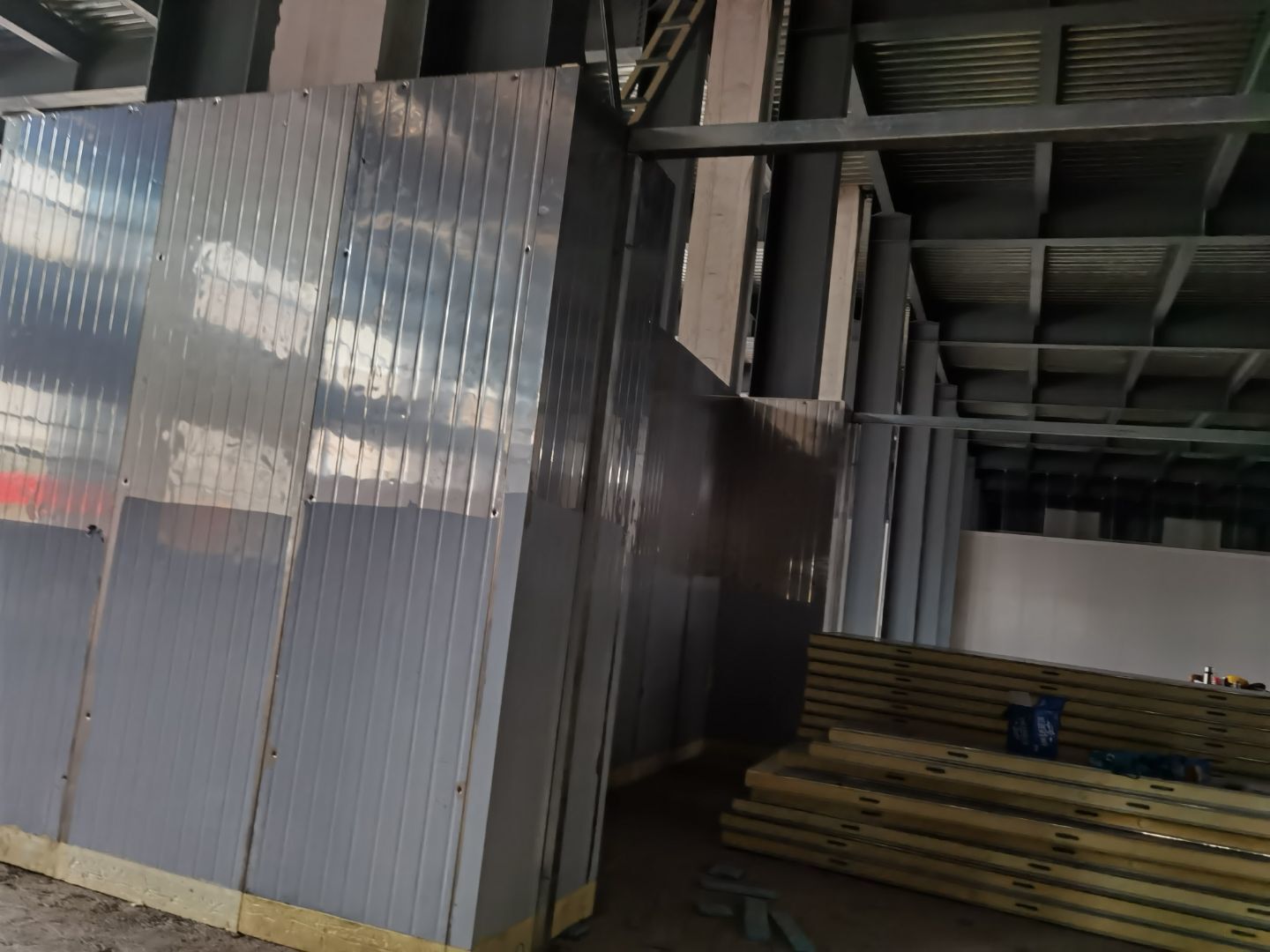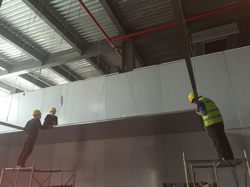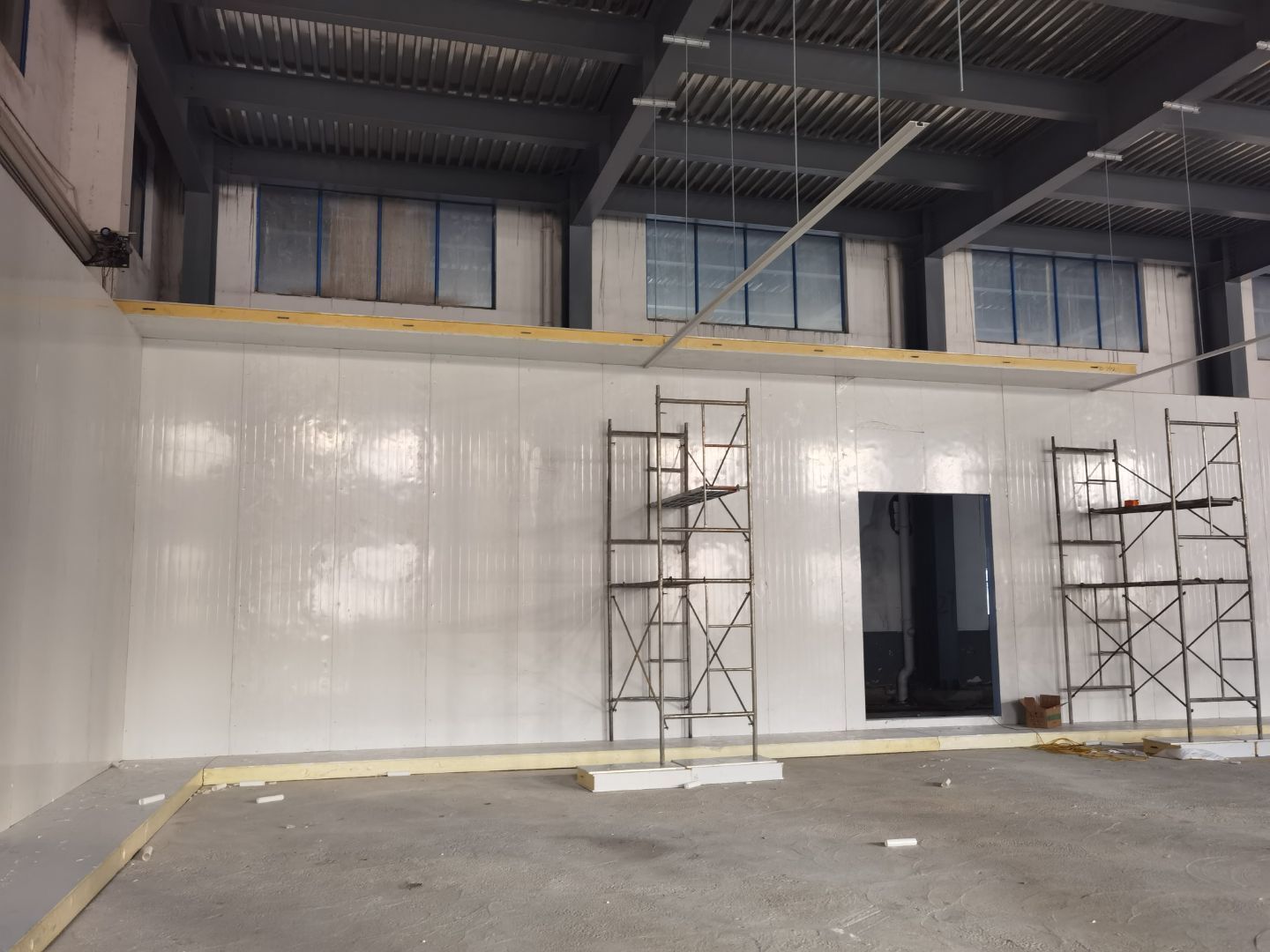1,一樓彩板吊筋安裝 2,一樓鋼構頂刷漆 3,一層鋼構平臺焊接施工 4,一樓凍庫門體安裝 5,一樓空調新風管吊裝 6,門衛室墻體砌筑 7,電梯施工